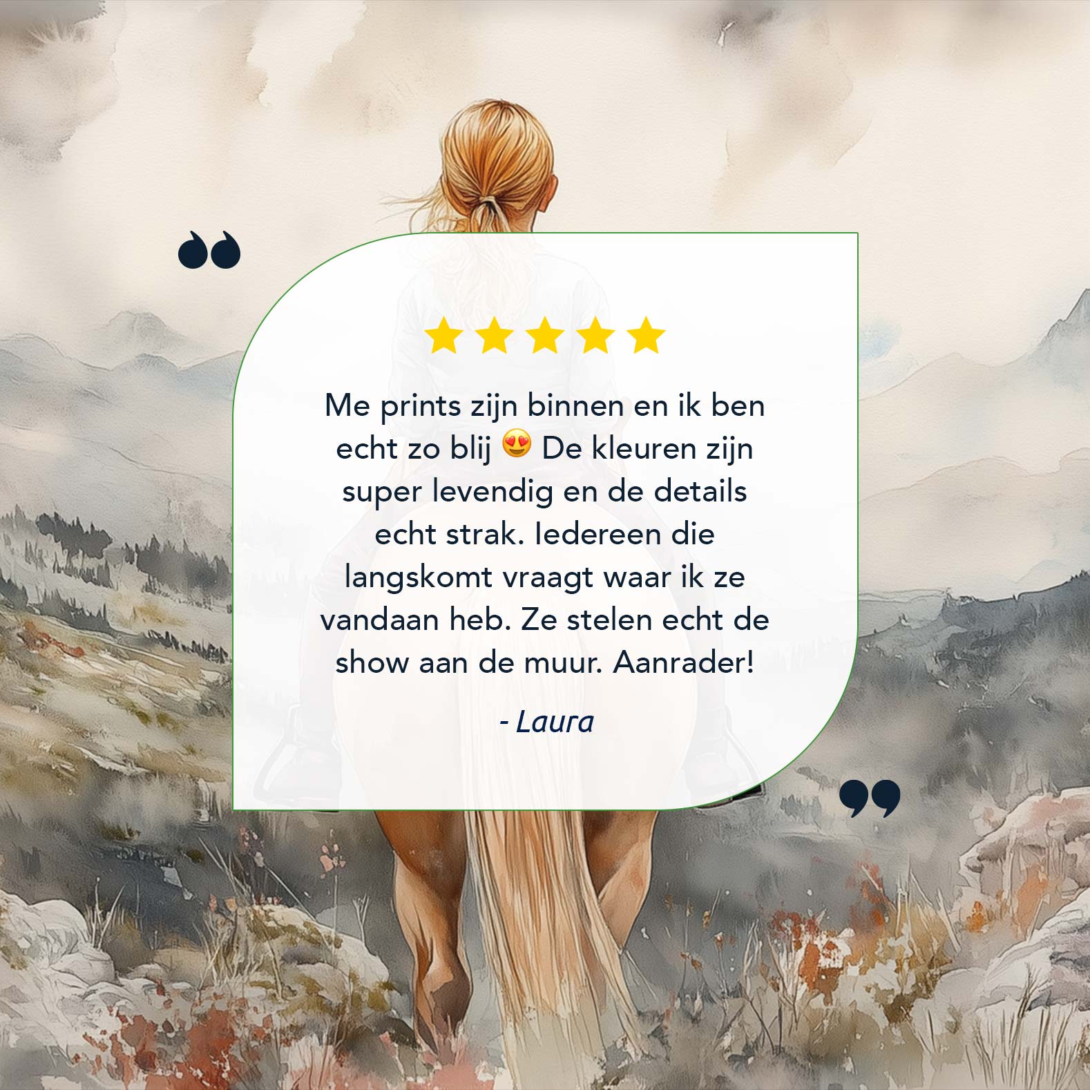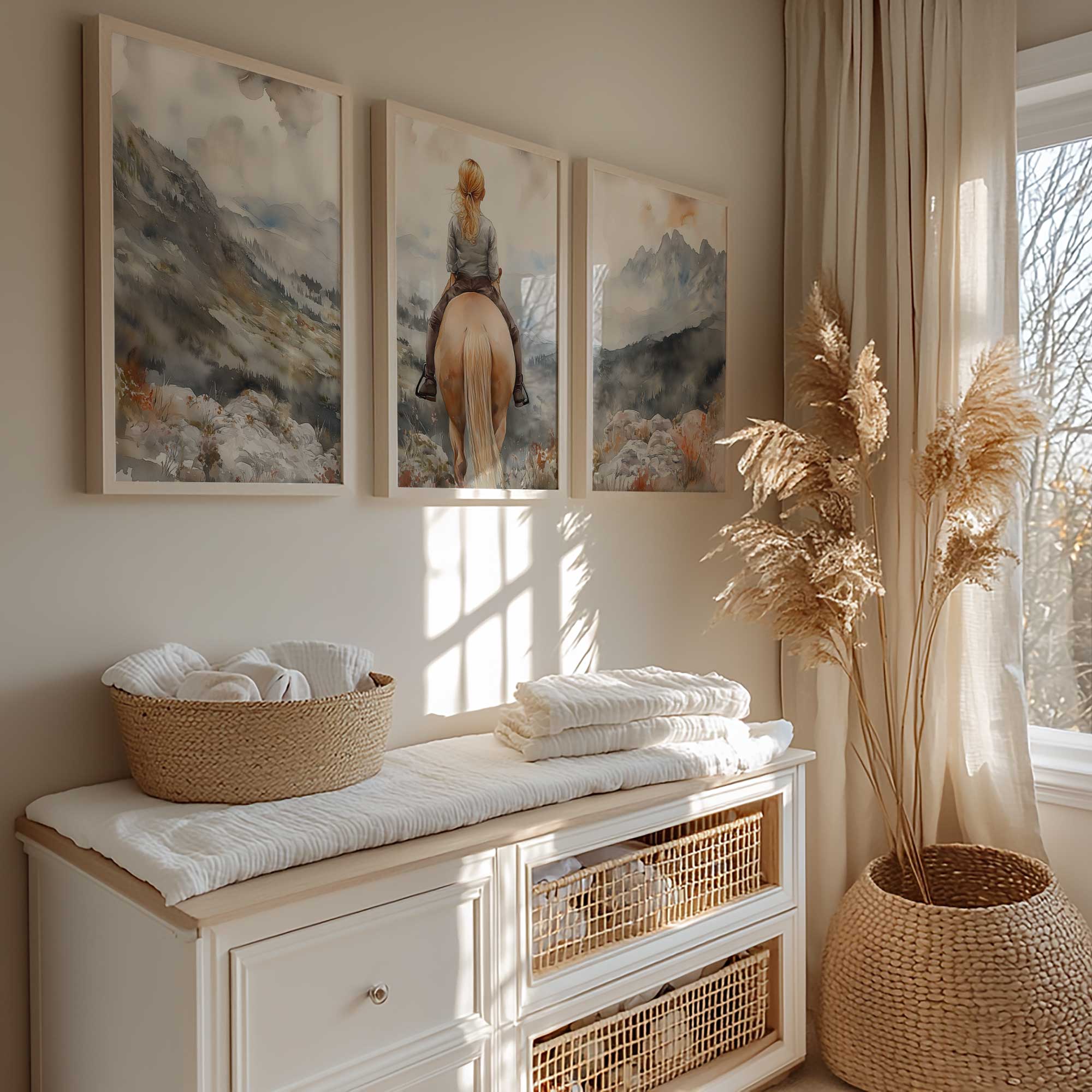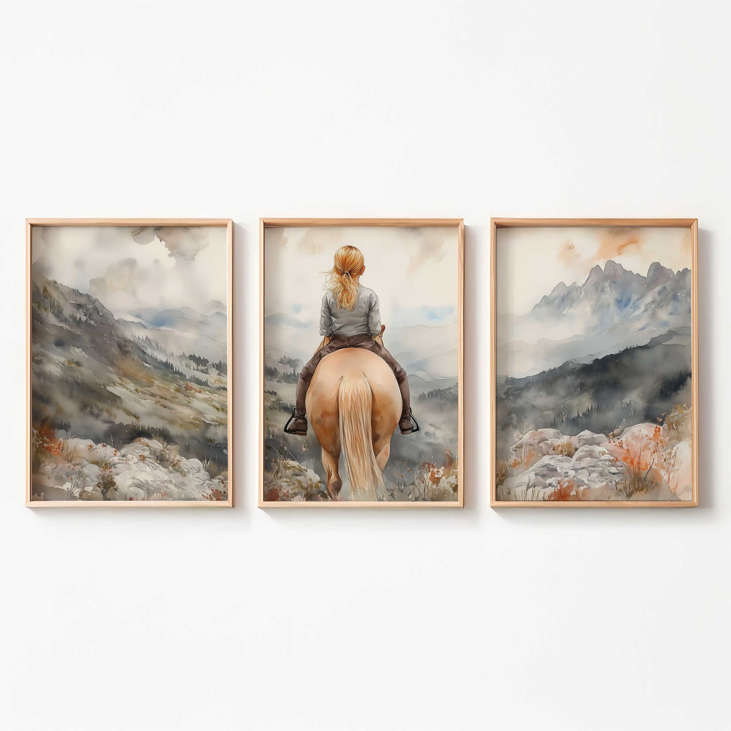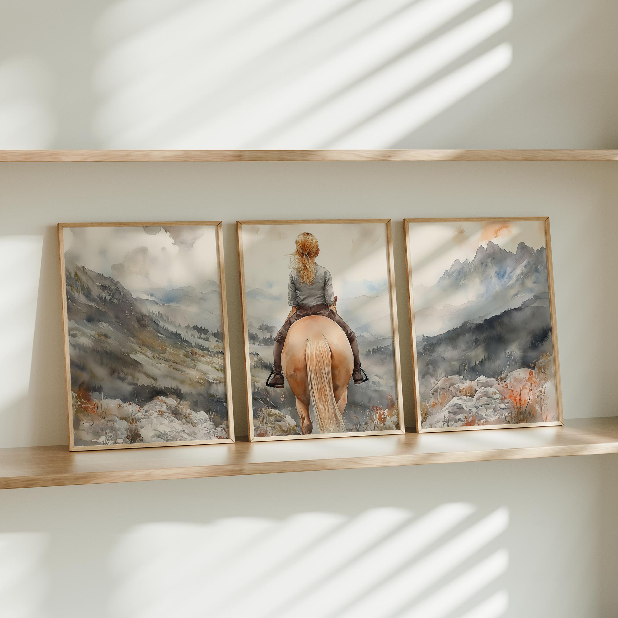 Terug naar collectie / Kinderkamer posters / Avontuurlijk posters / Dromerig Paardrijavontuur in Berglandschap