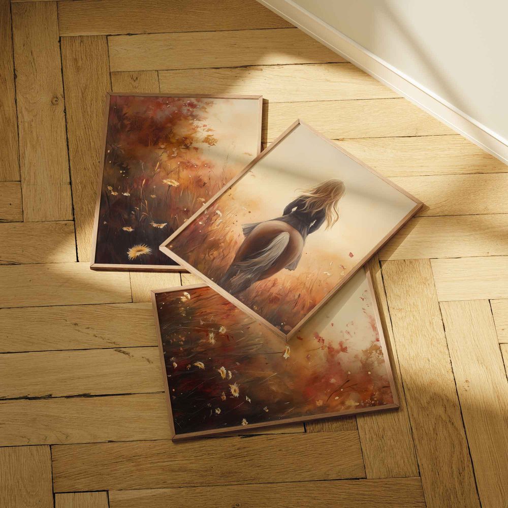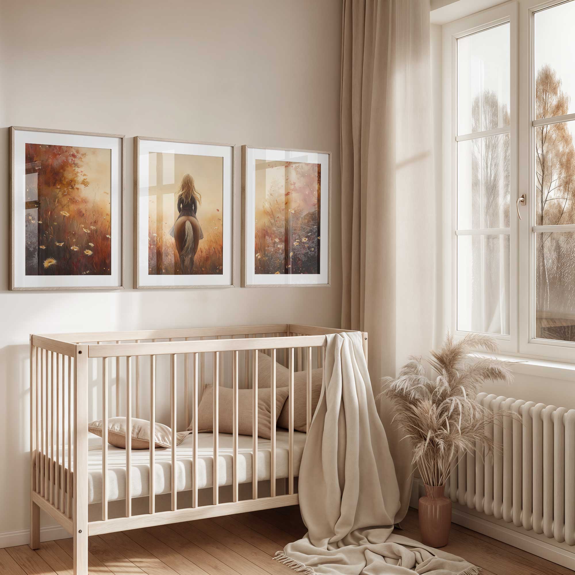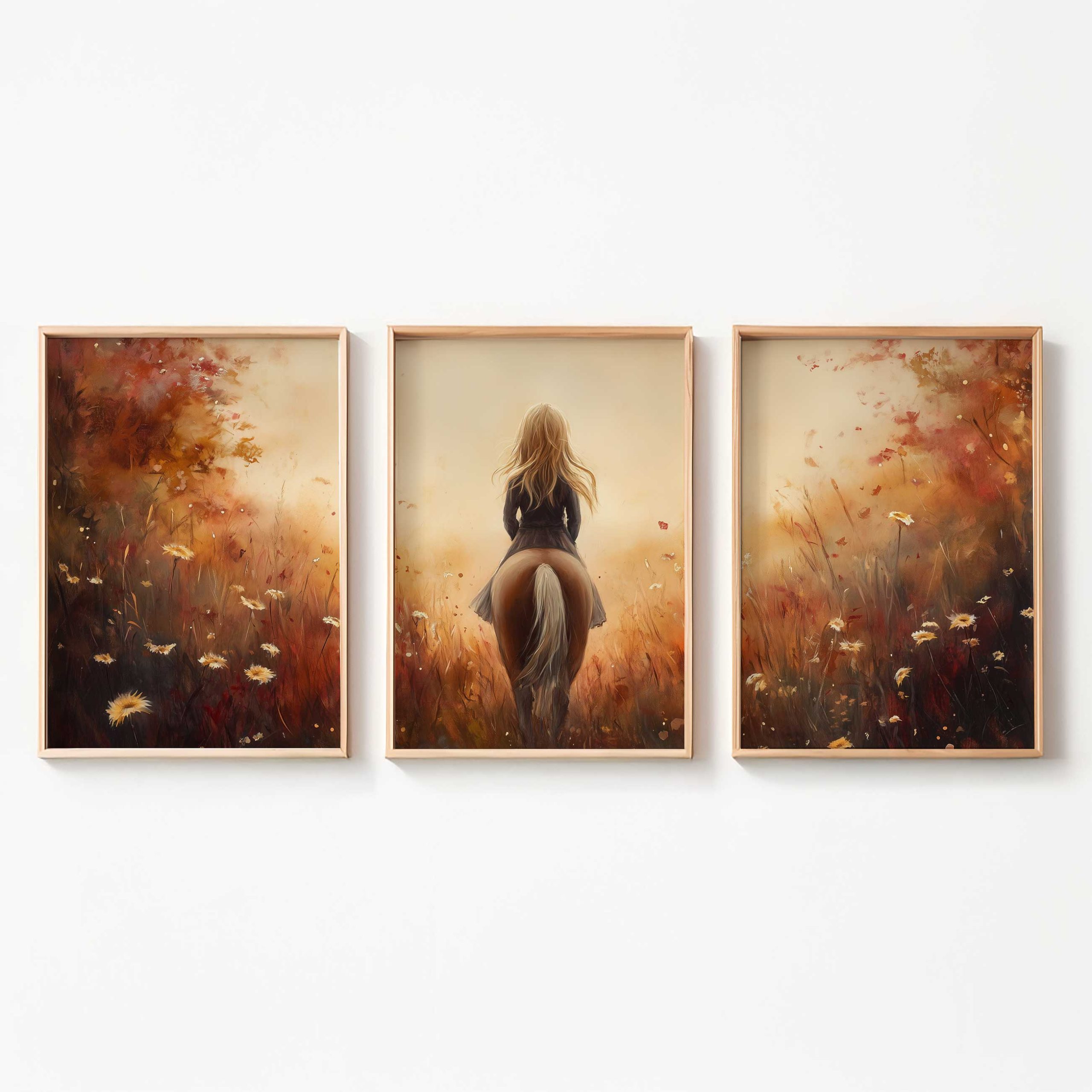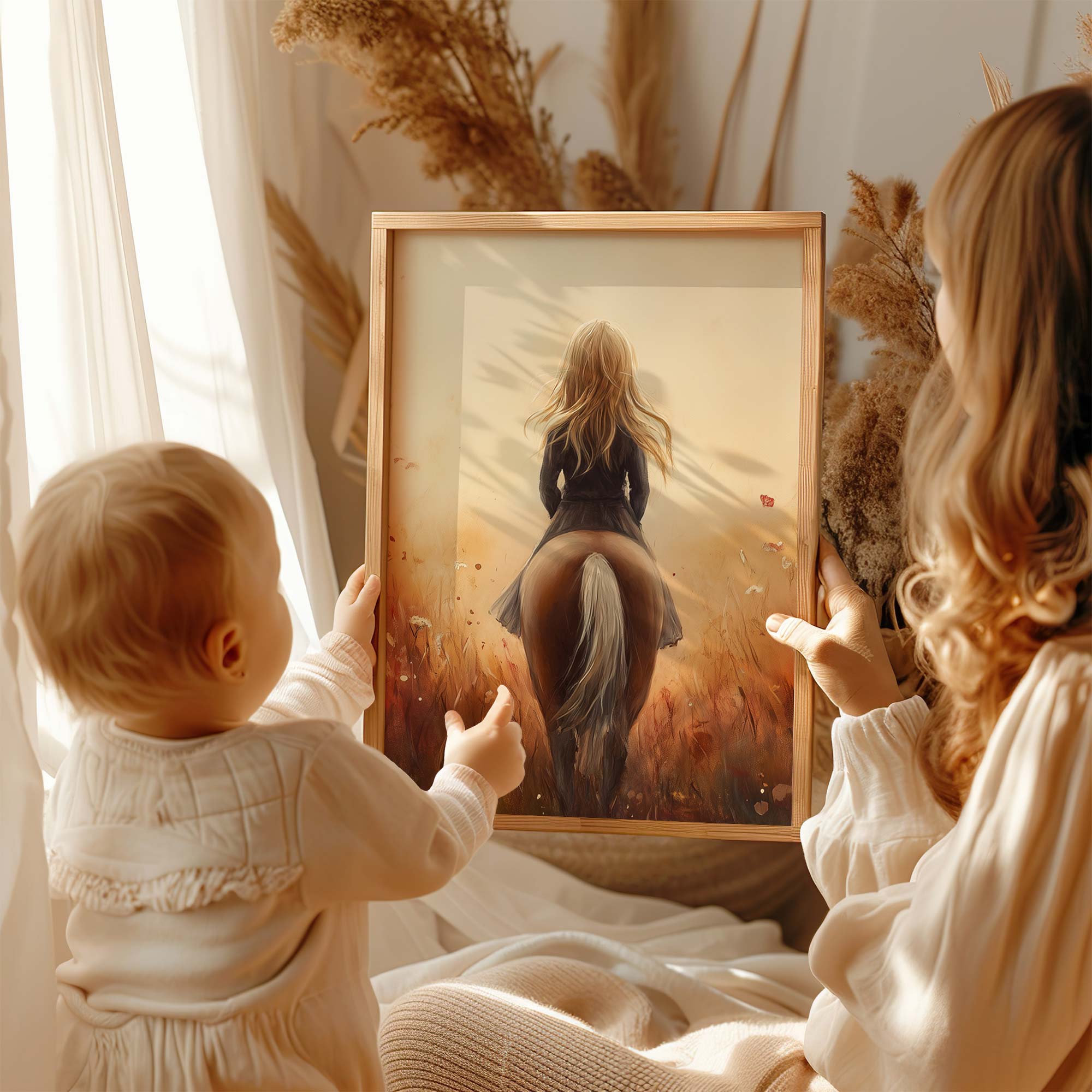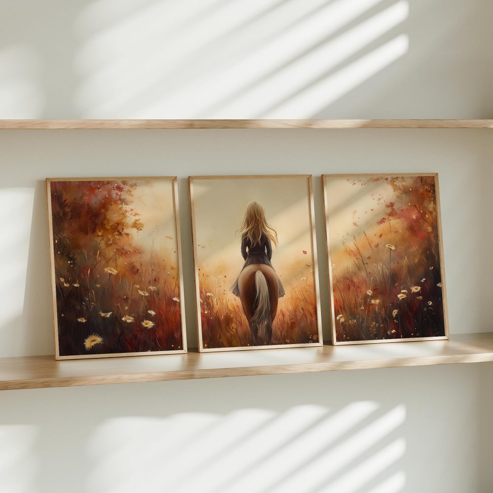 Terug naar collectie / Kinderkamer posters / Avontuurlijk posters / Dromerig Paardrijden in een Bloemenveld