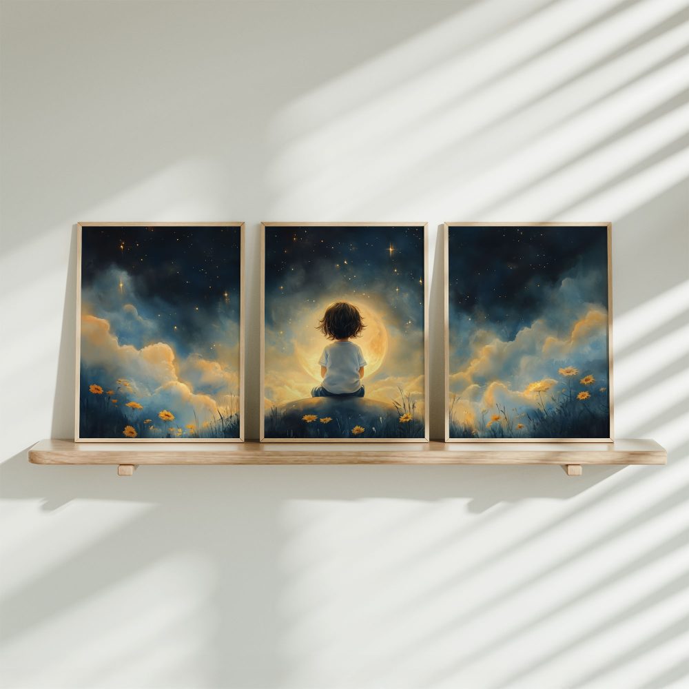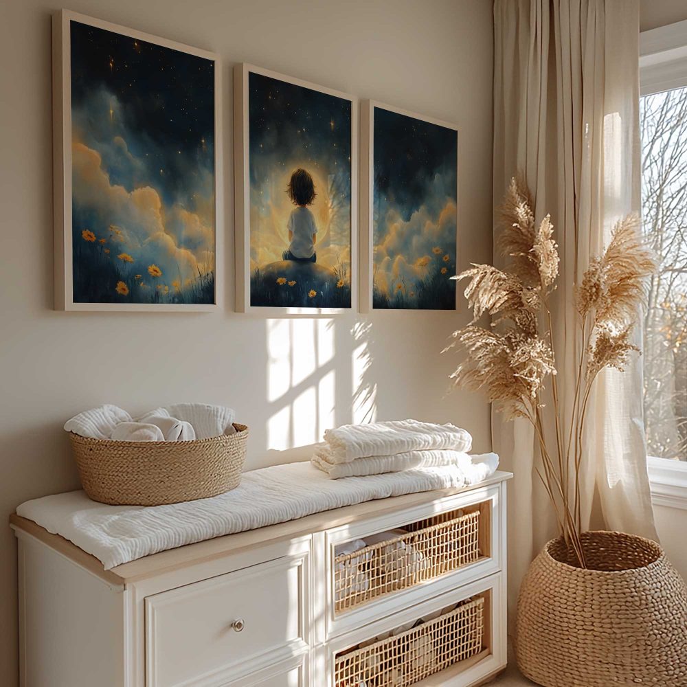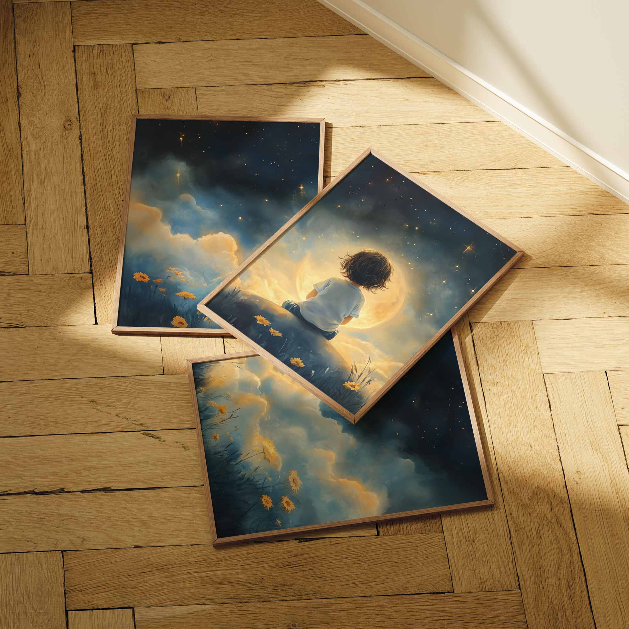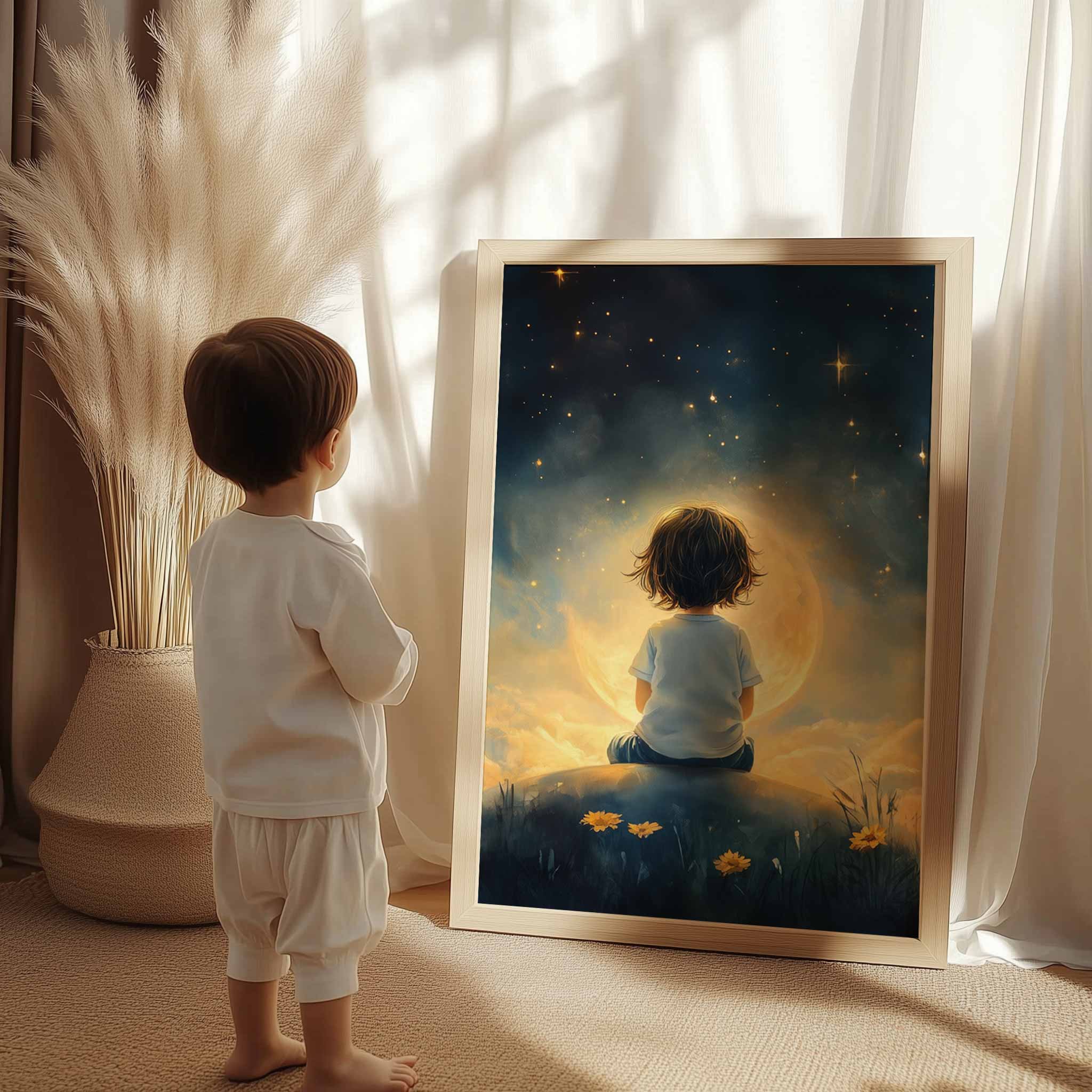 Terug naar collectie / Kinderkamer posters / Bloemen posters / Dromerig Sterrenkind in Bloeiende Nacht