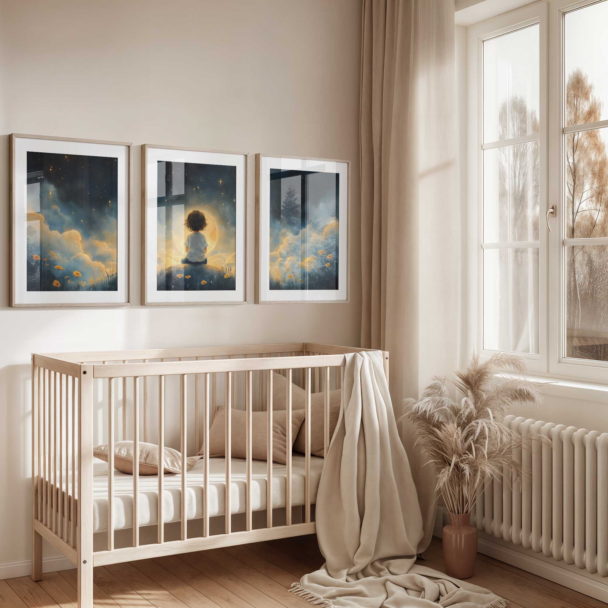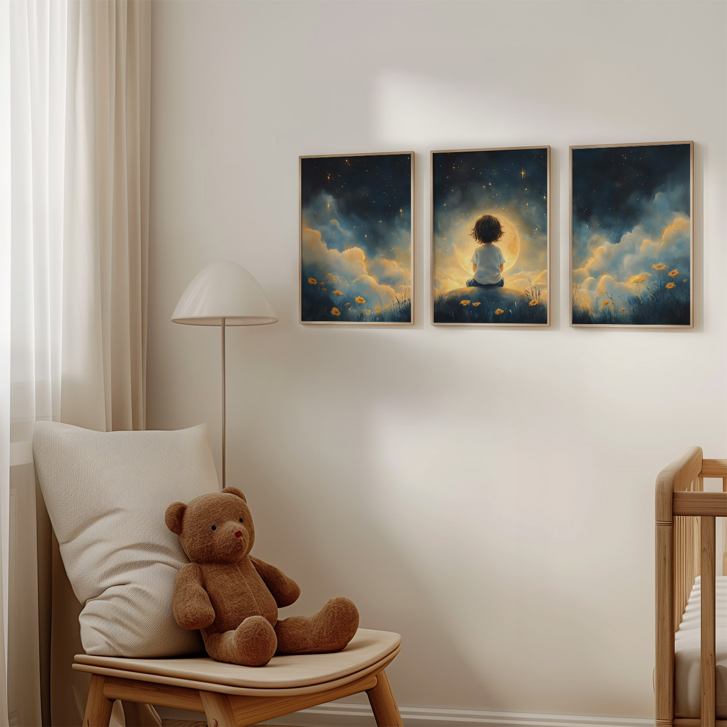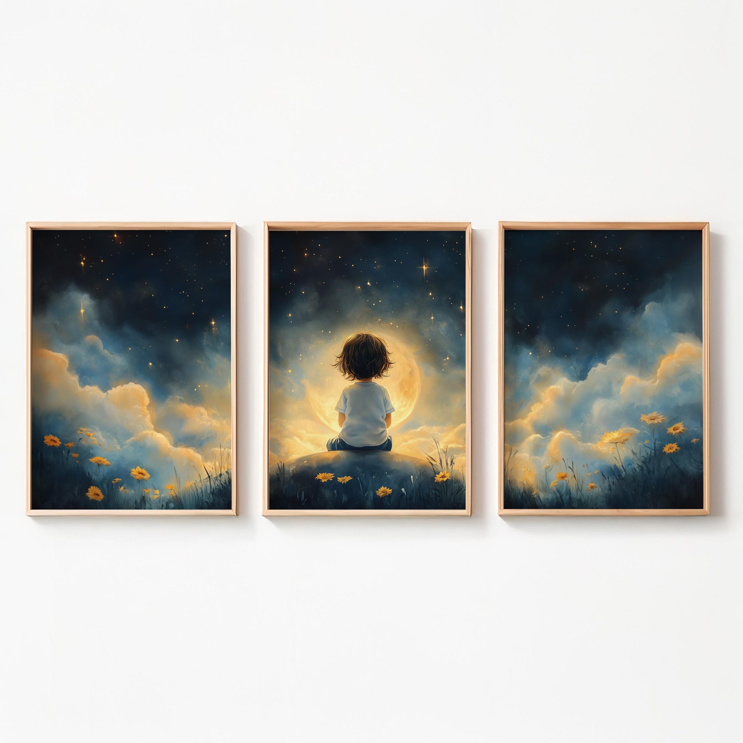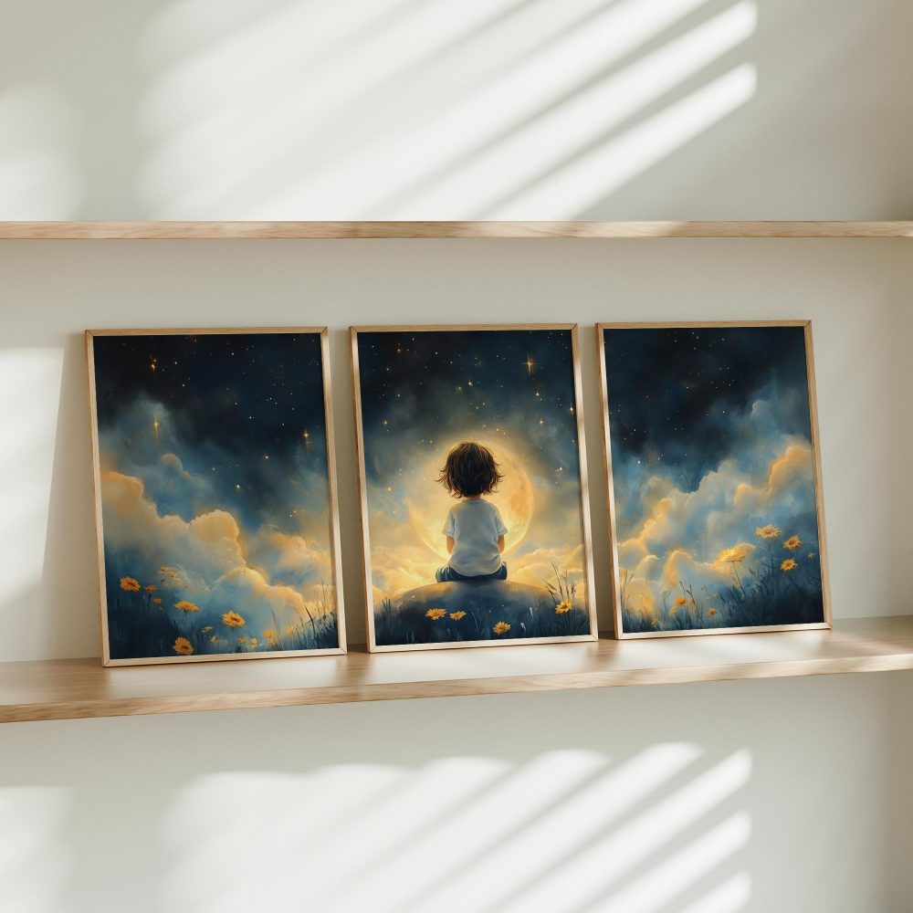 Terug naar collectie / Kinderkamer posters / Bloemen posters / Dromerig Sterrenkind in Bloeiende Nacht