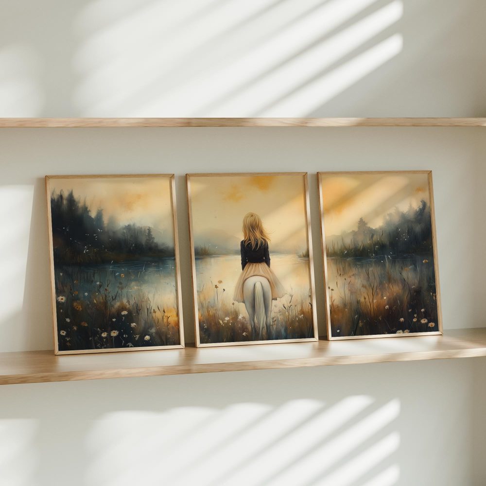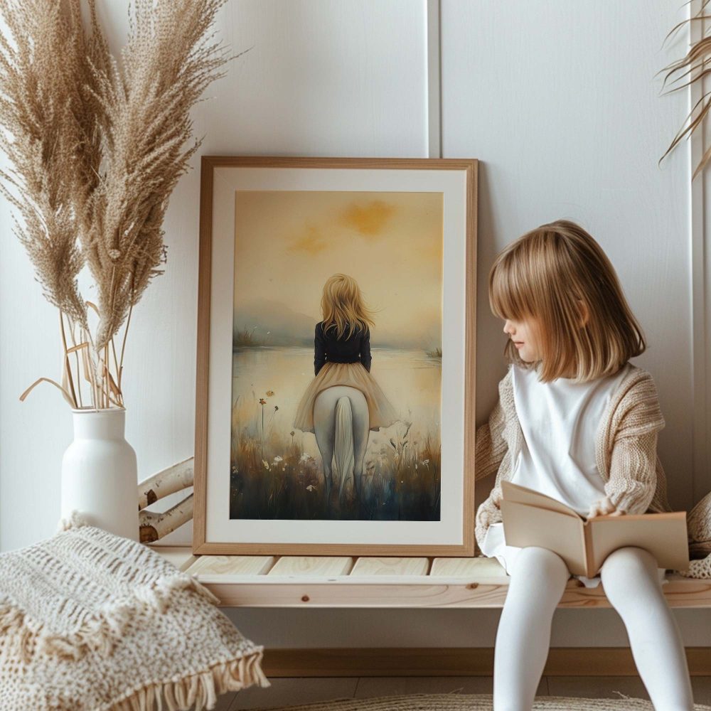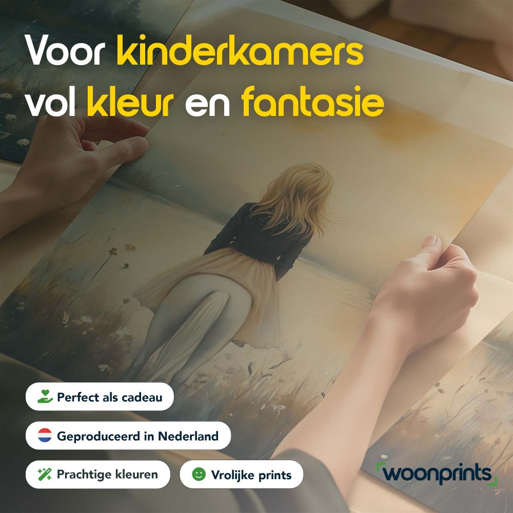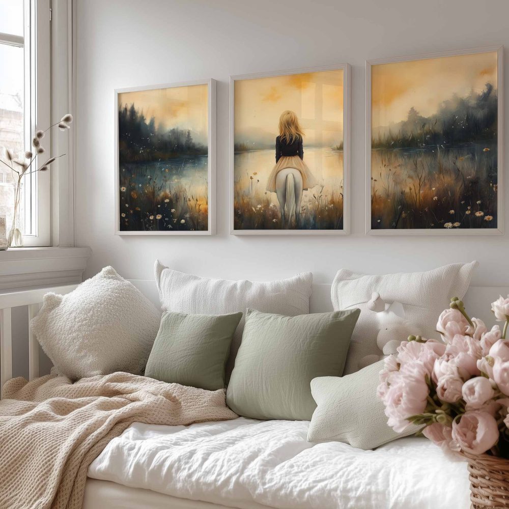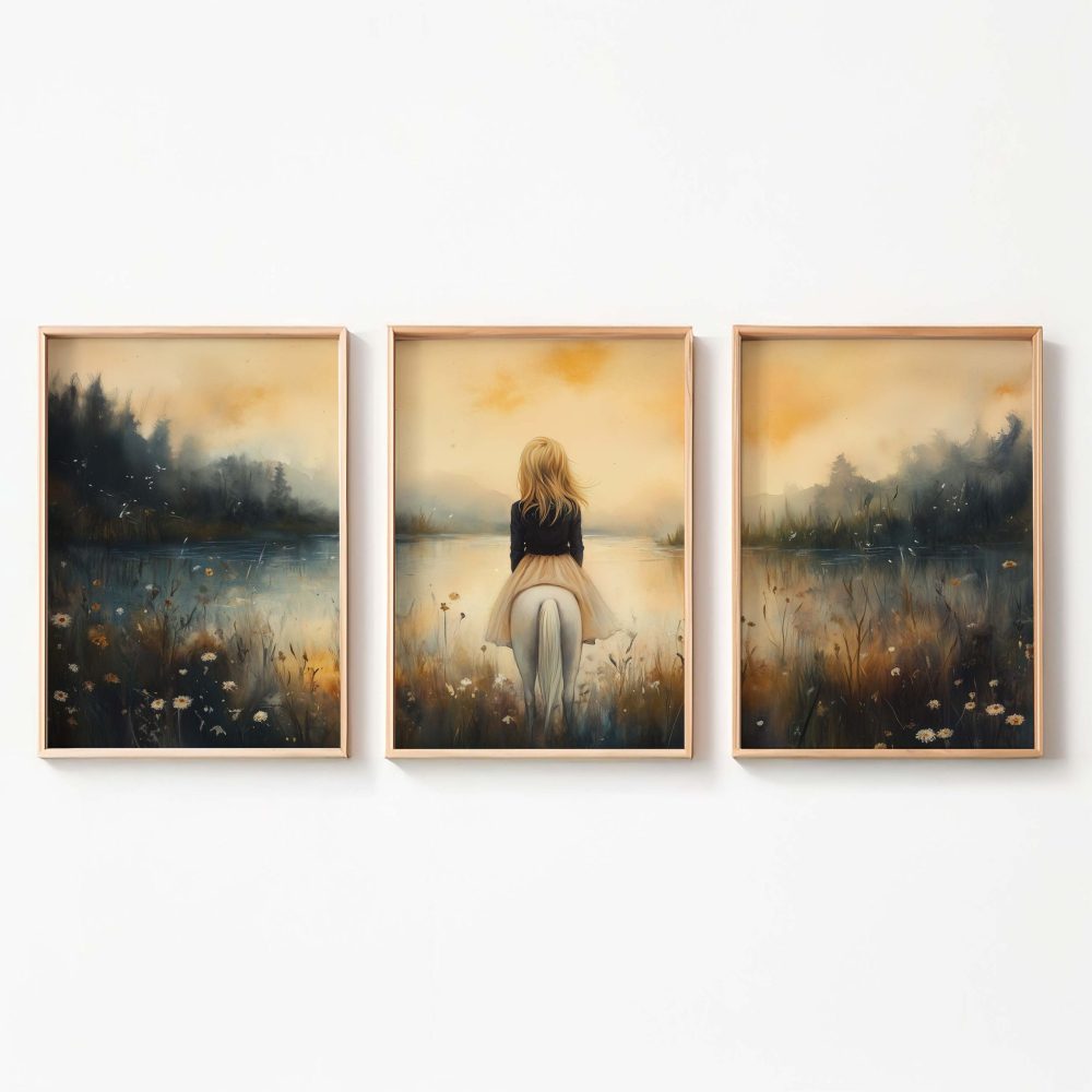 Terug naar collectie / Kinderkamer posters / Dieren posters / Dromerig Tafereel: Vrouw en Paard bij het Water