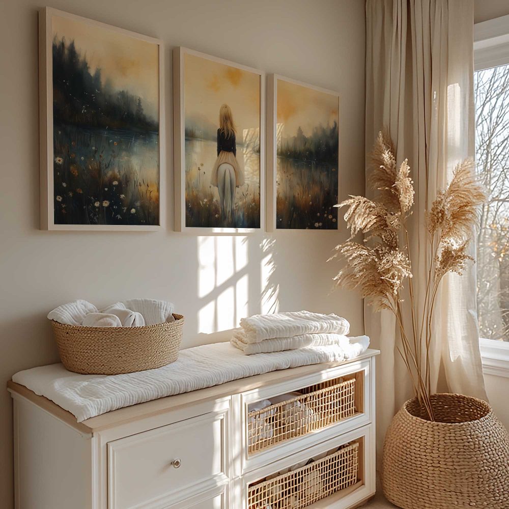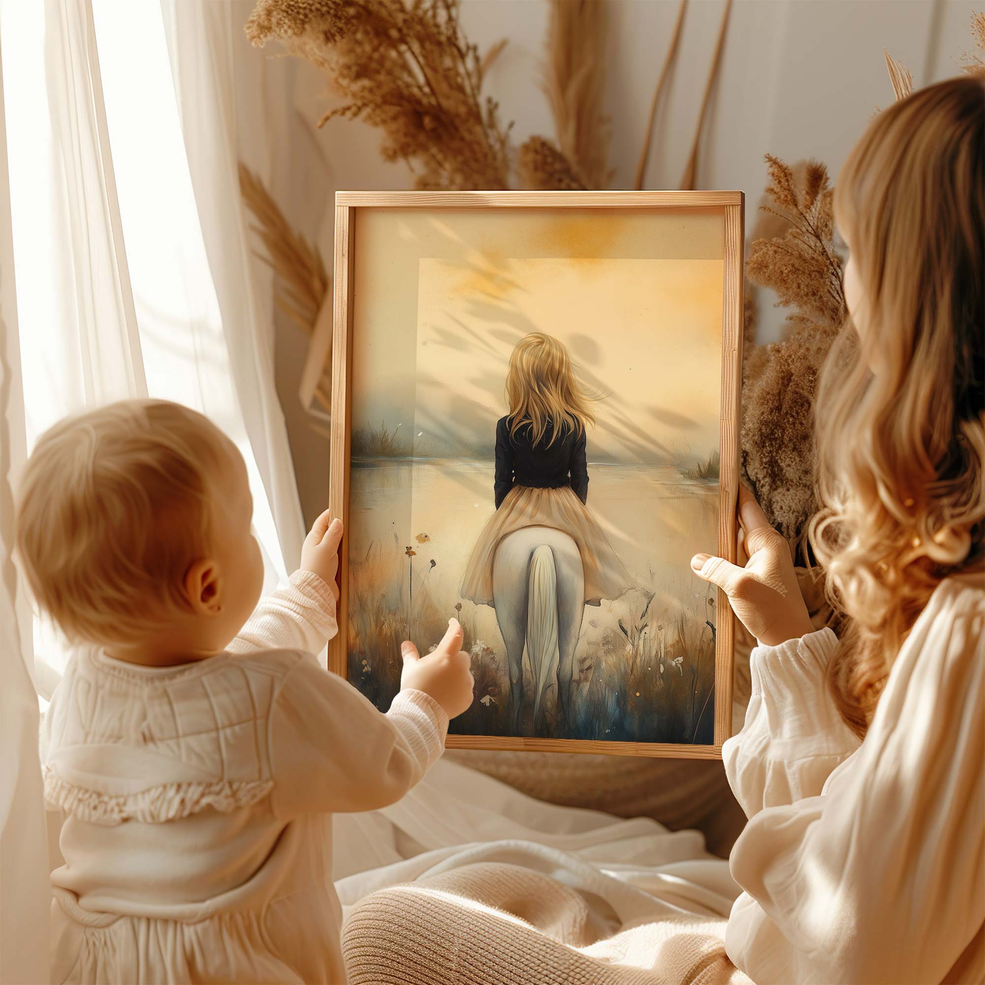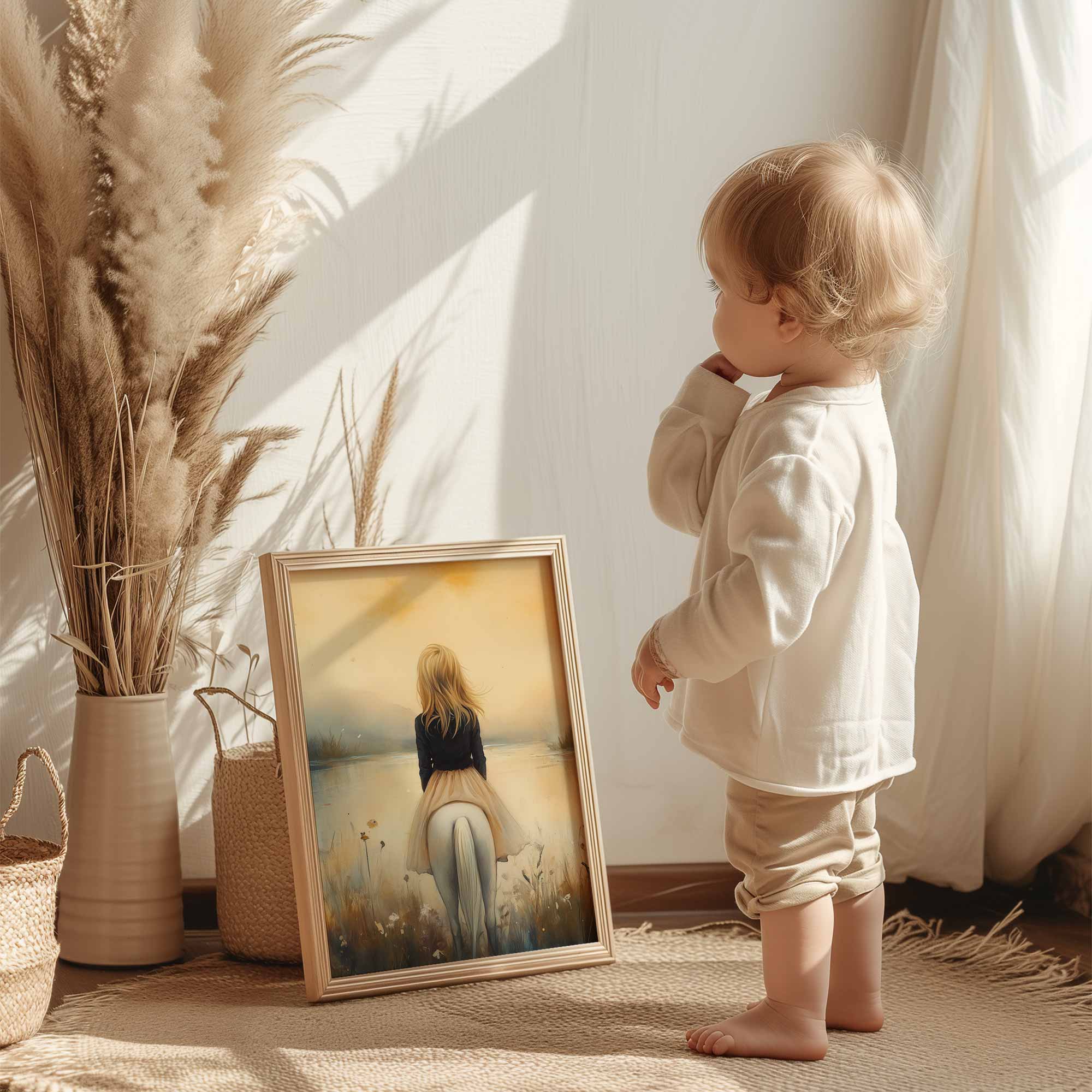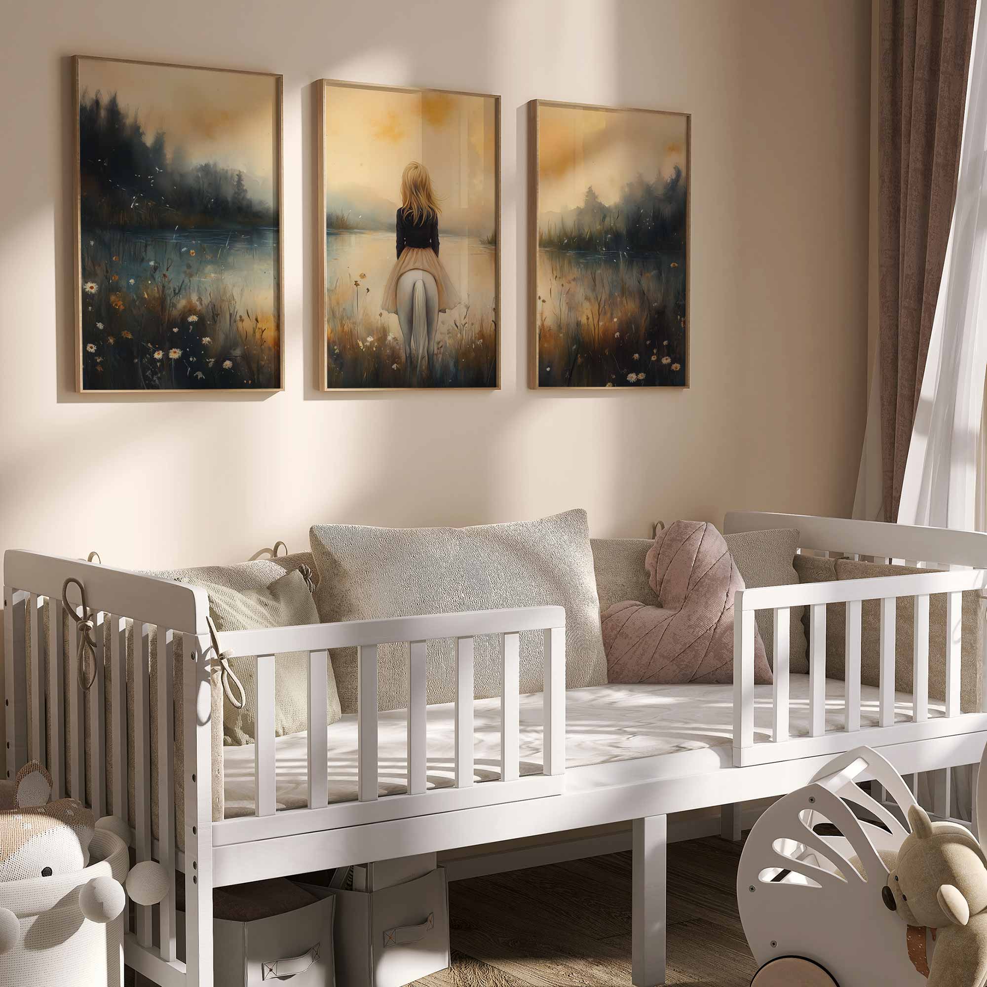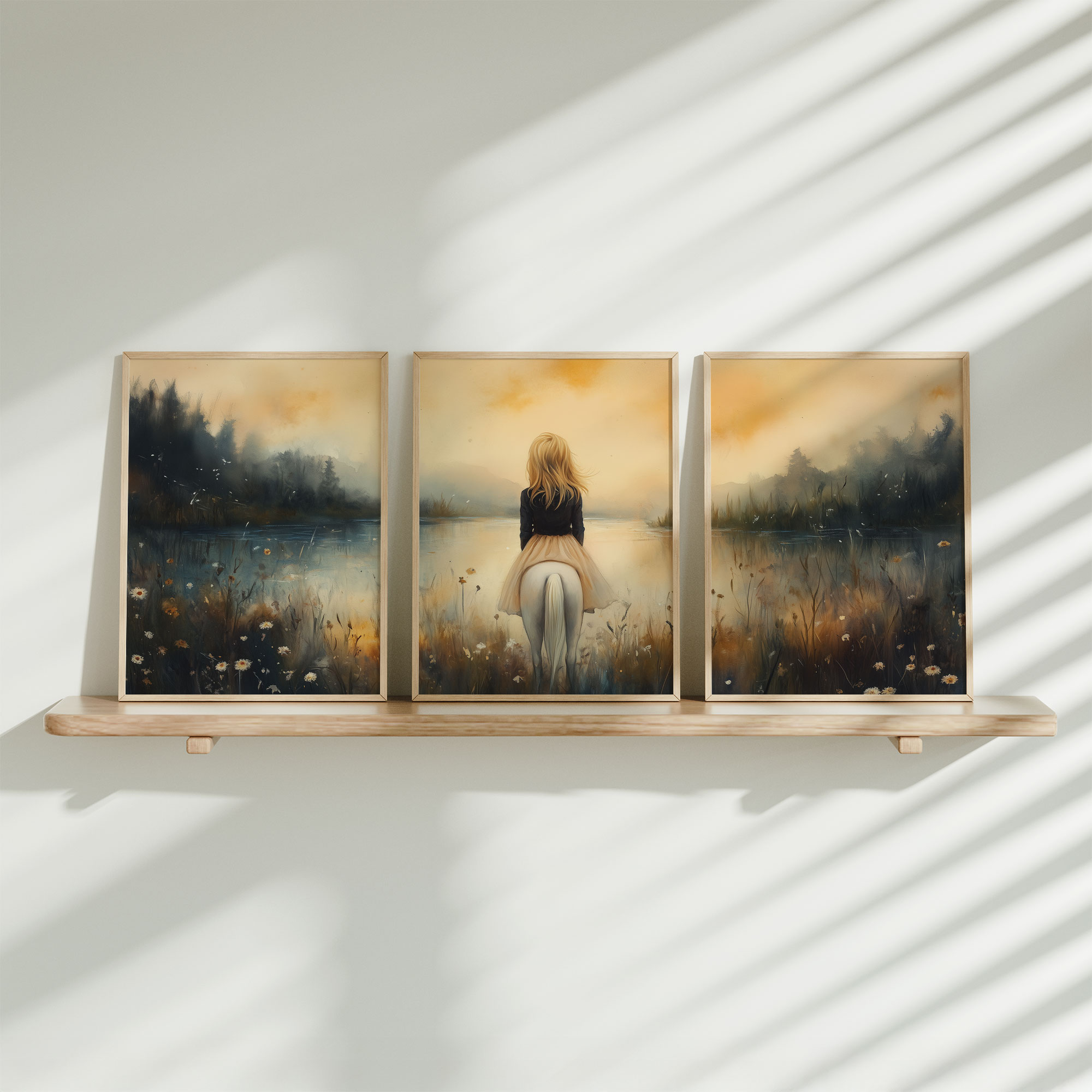 Terug naar collectie / Kinderkamer posters / Dieren posters / Dromerig Tafereel: Vrouw en Paard bij het Water
