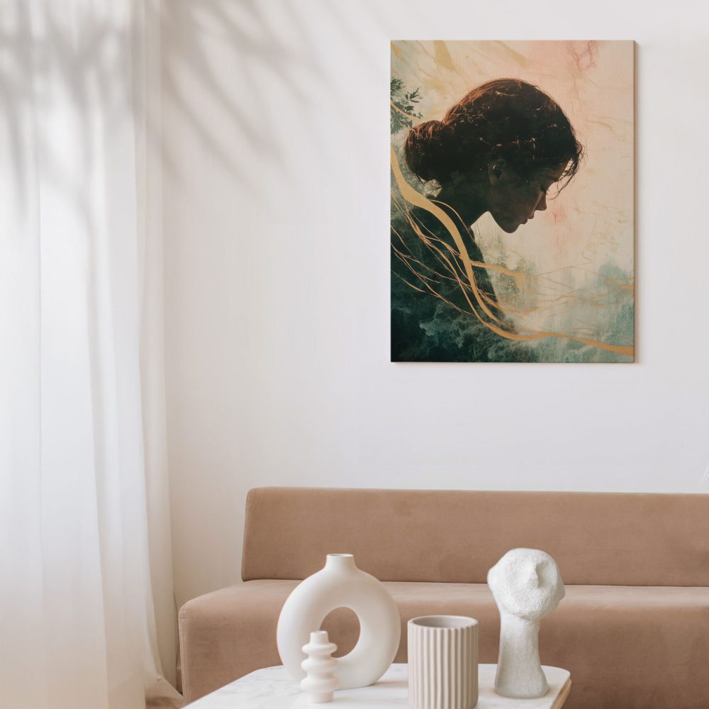 Terug naar collectie / Schilderijen / Abstract Schilderij / Dromerig vrouwenportret in pastel