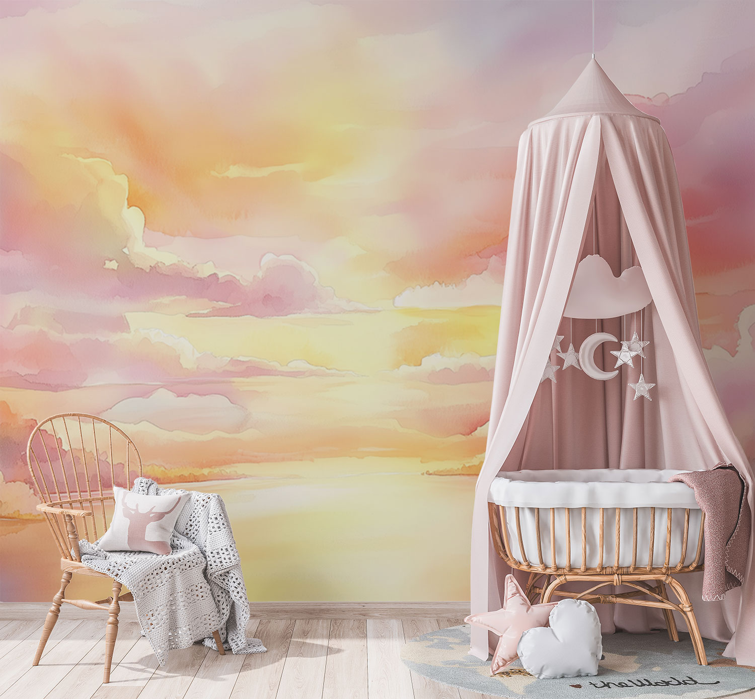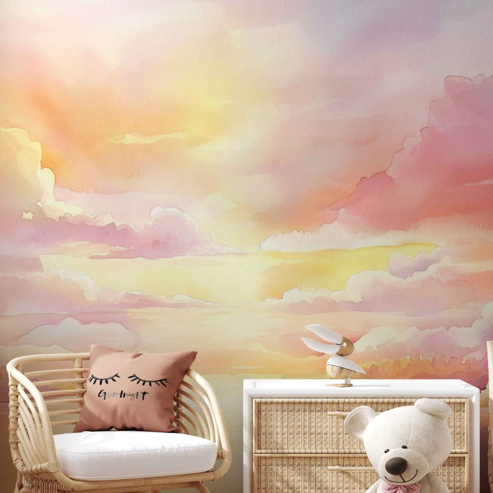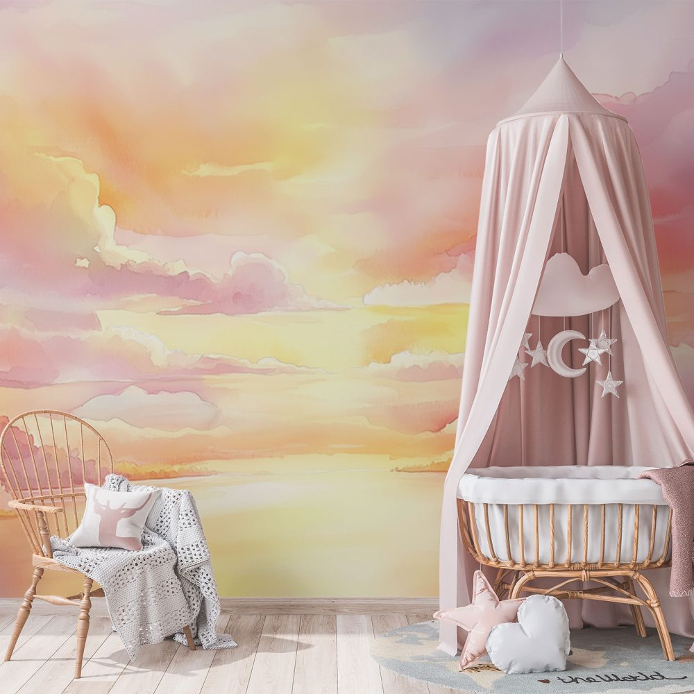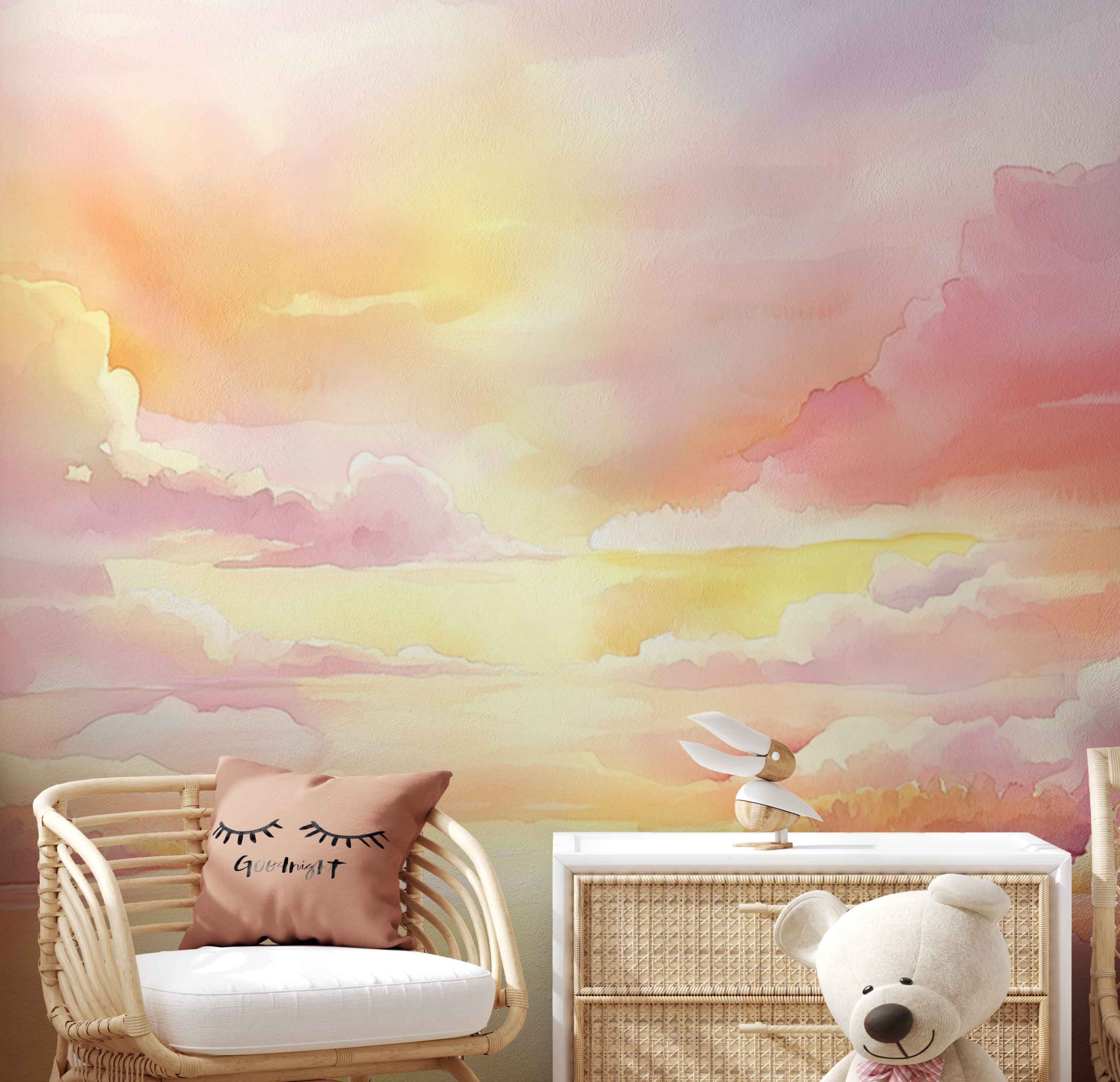 Terug naar collectie / Behang / Kinderkamer behang / Babykamer behang / Dromerig watercolor landschapsschilderij behang