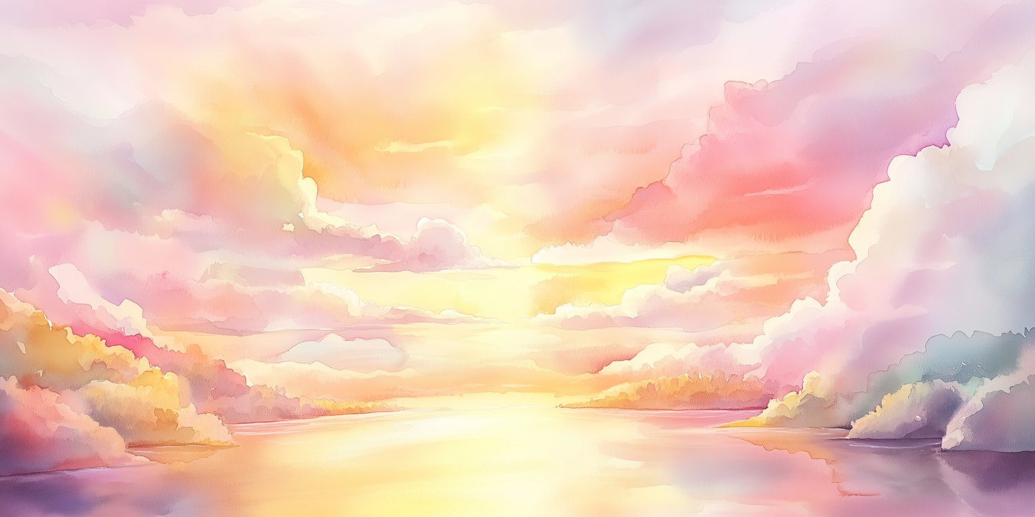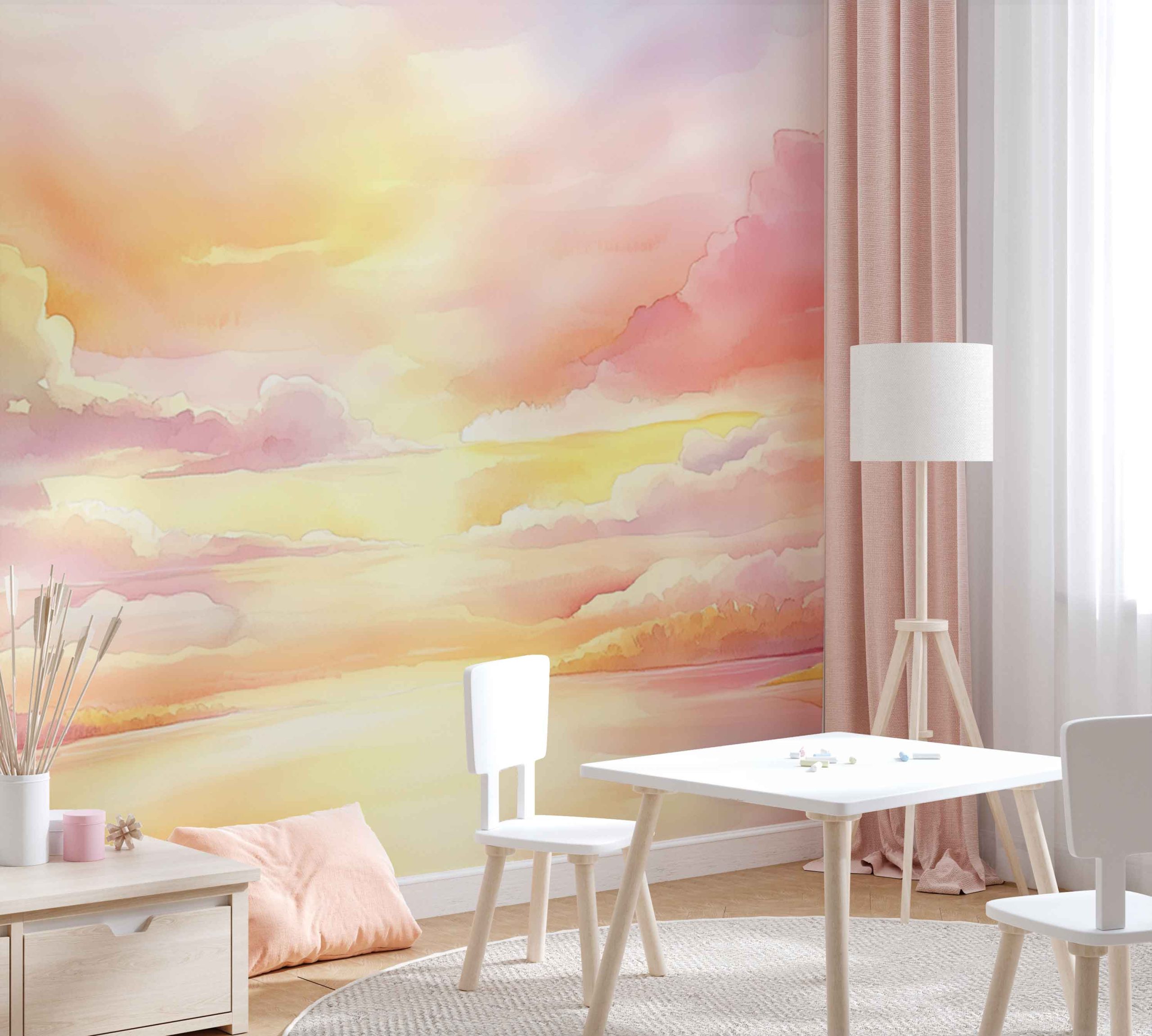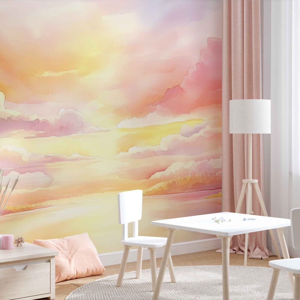 Terug naar collectie / Behang / Kinderkamer behang / Babykamer behang / Dromerig watercolor landschapsschilderij behang