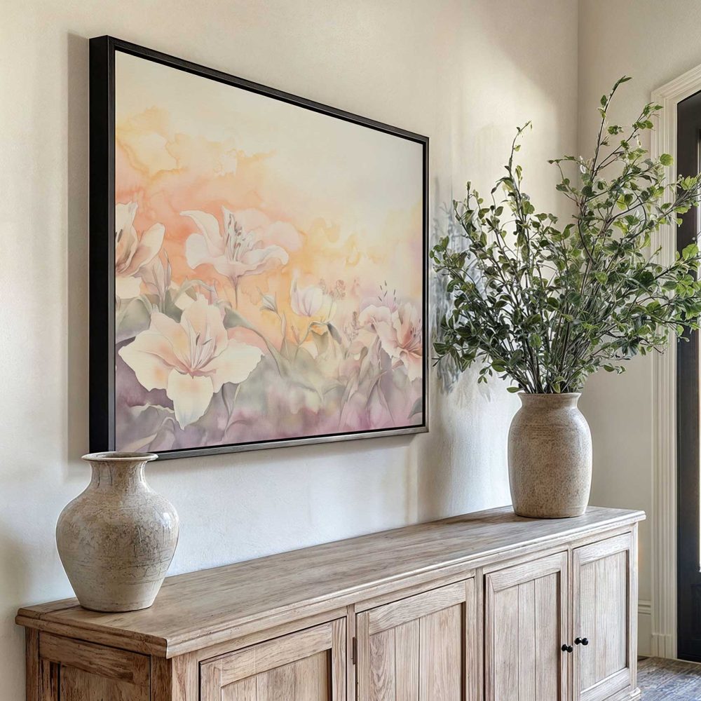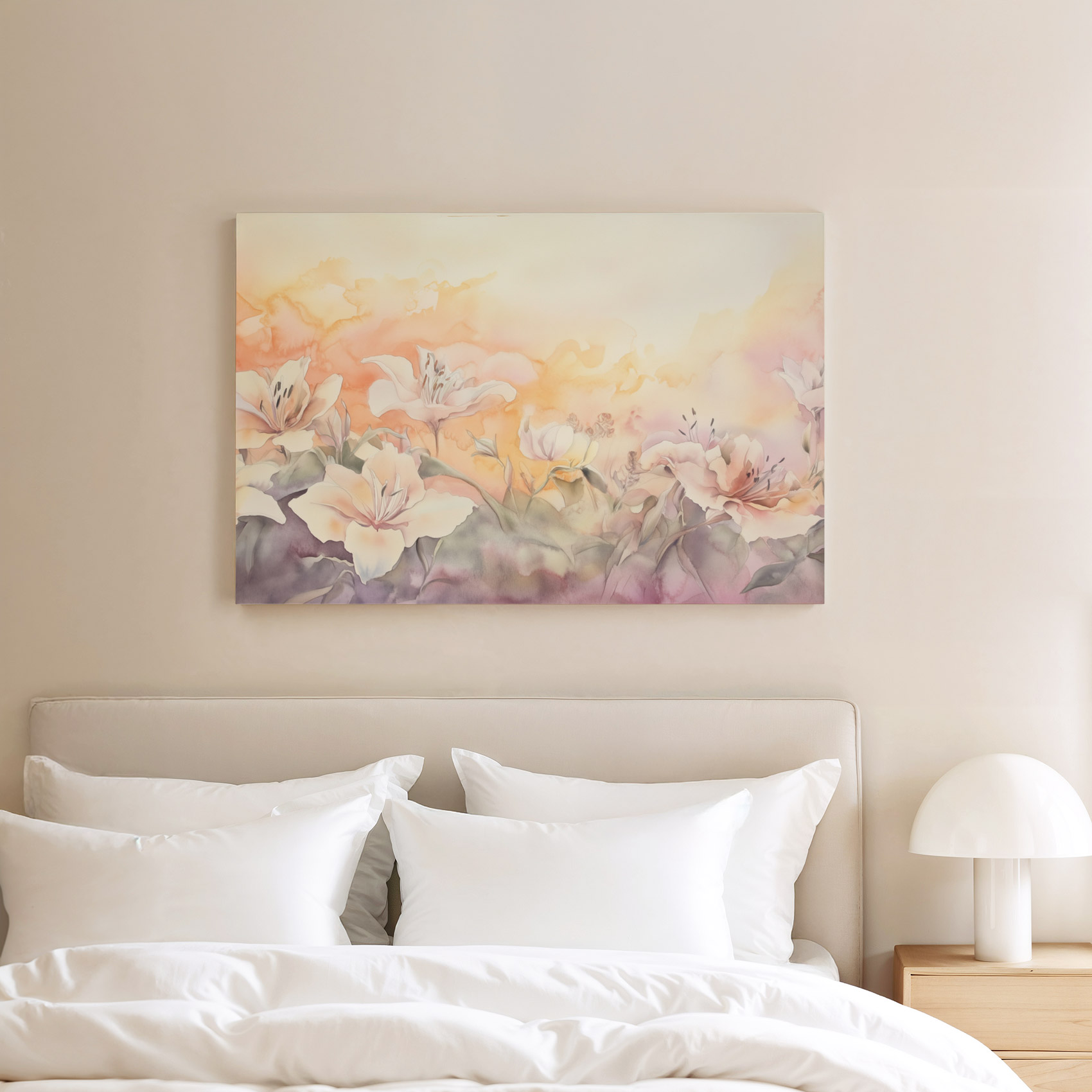 Terug naar collectie / Schilderijen / Bloemen Schilderij / Dromerig watercolor lelieveld