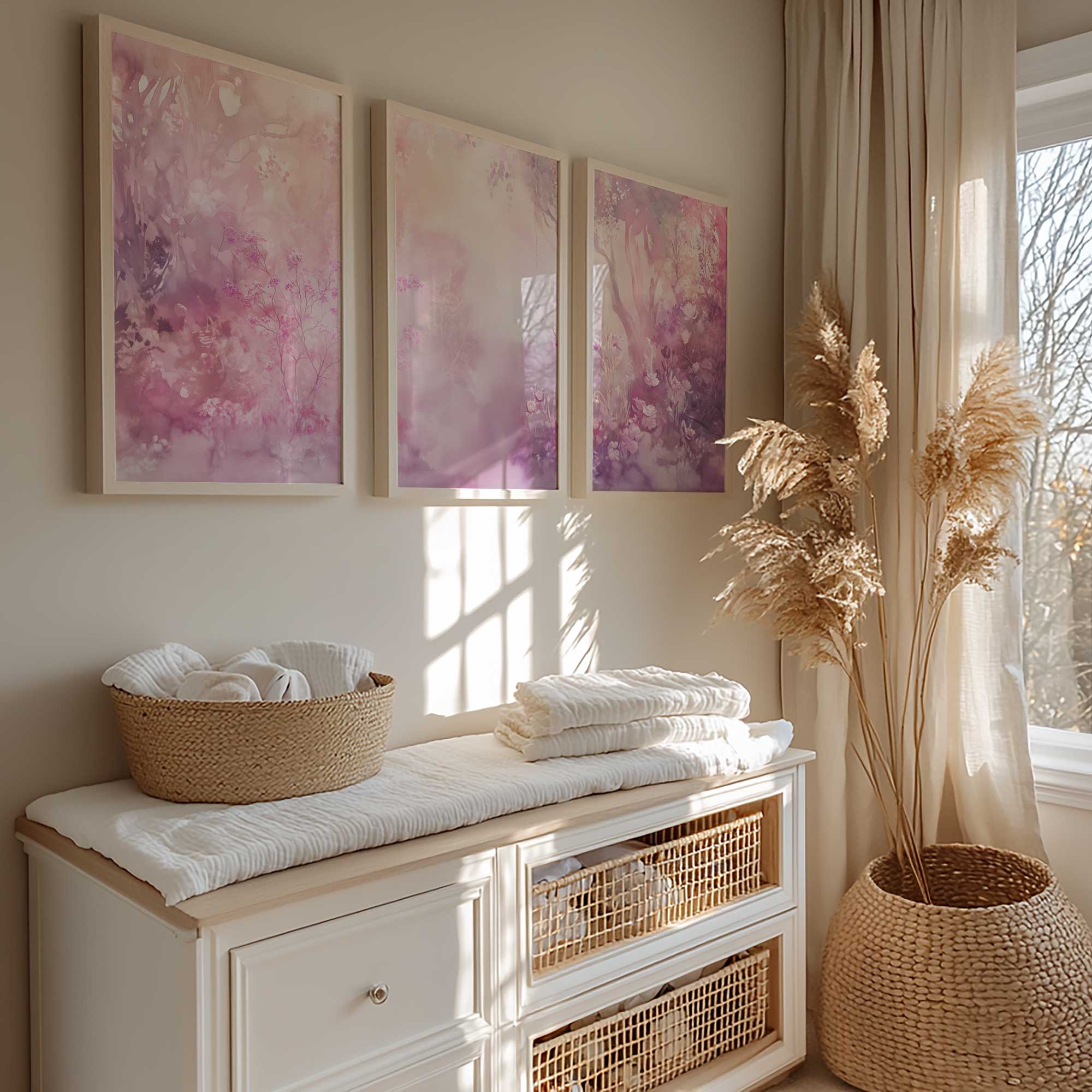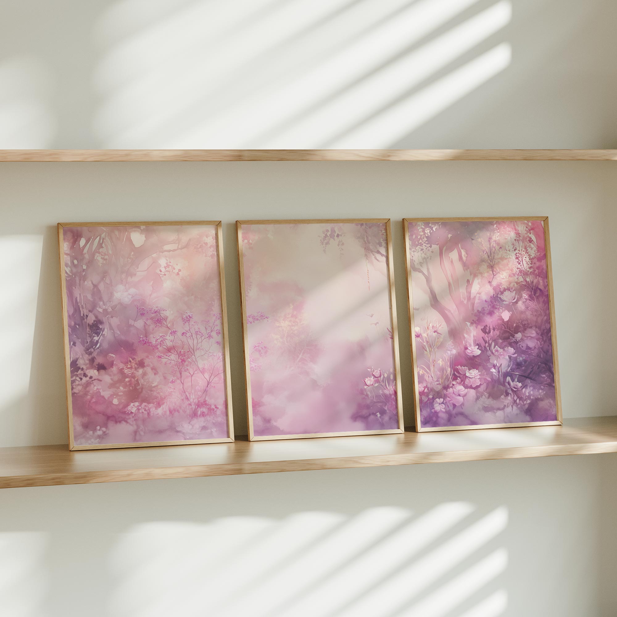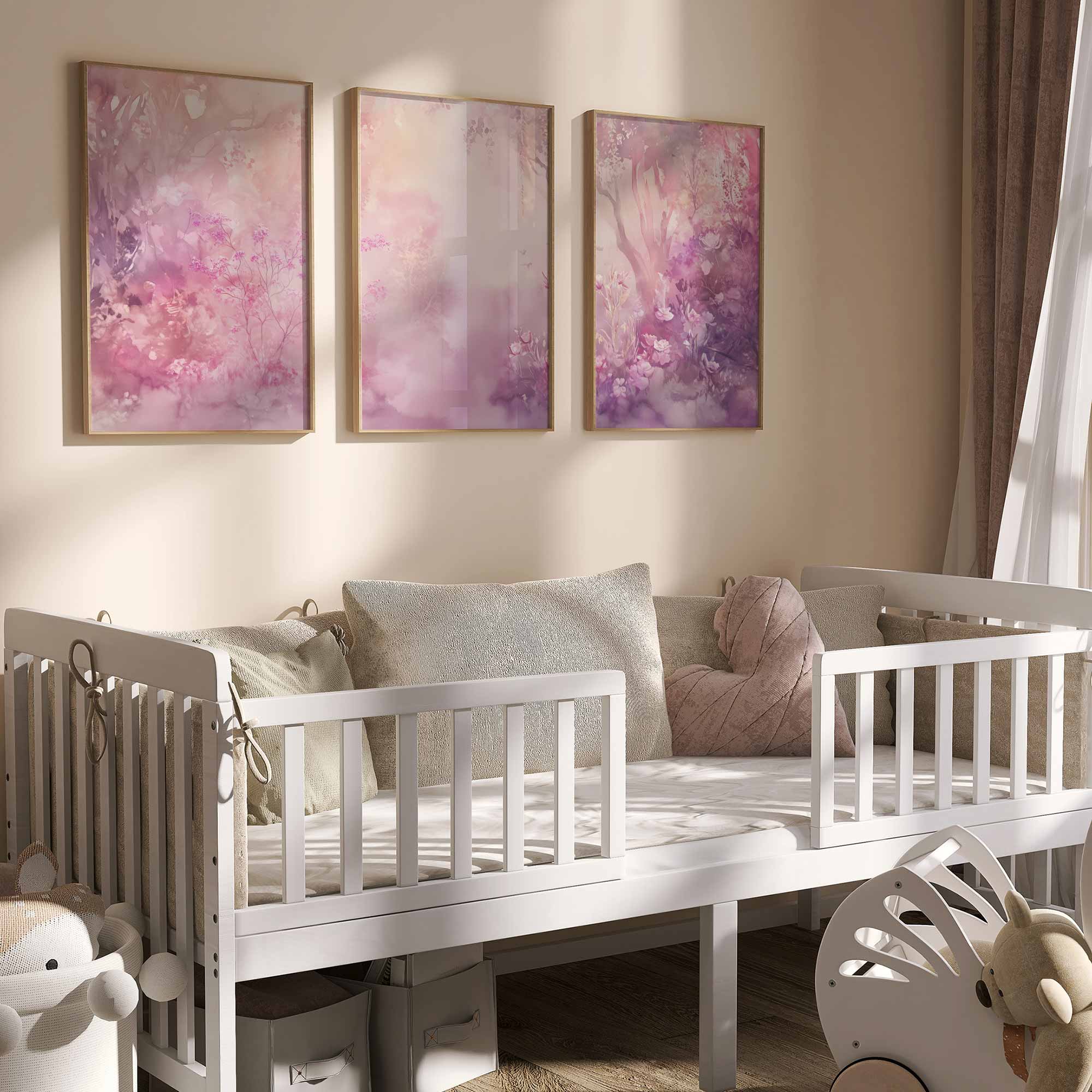 Terug naar collectie / Kinderkamer posters / Bloemen posters / Dromerig Watercolor: Roze en Paarse Bloemenpracht