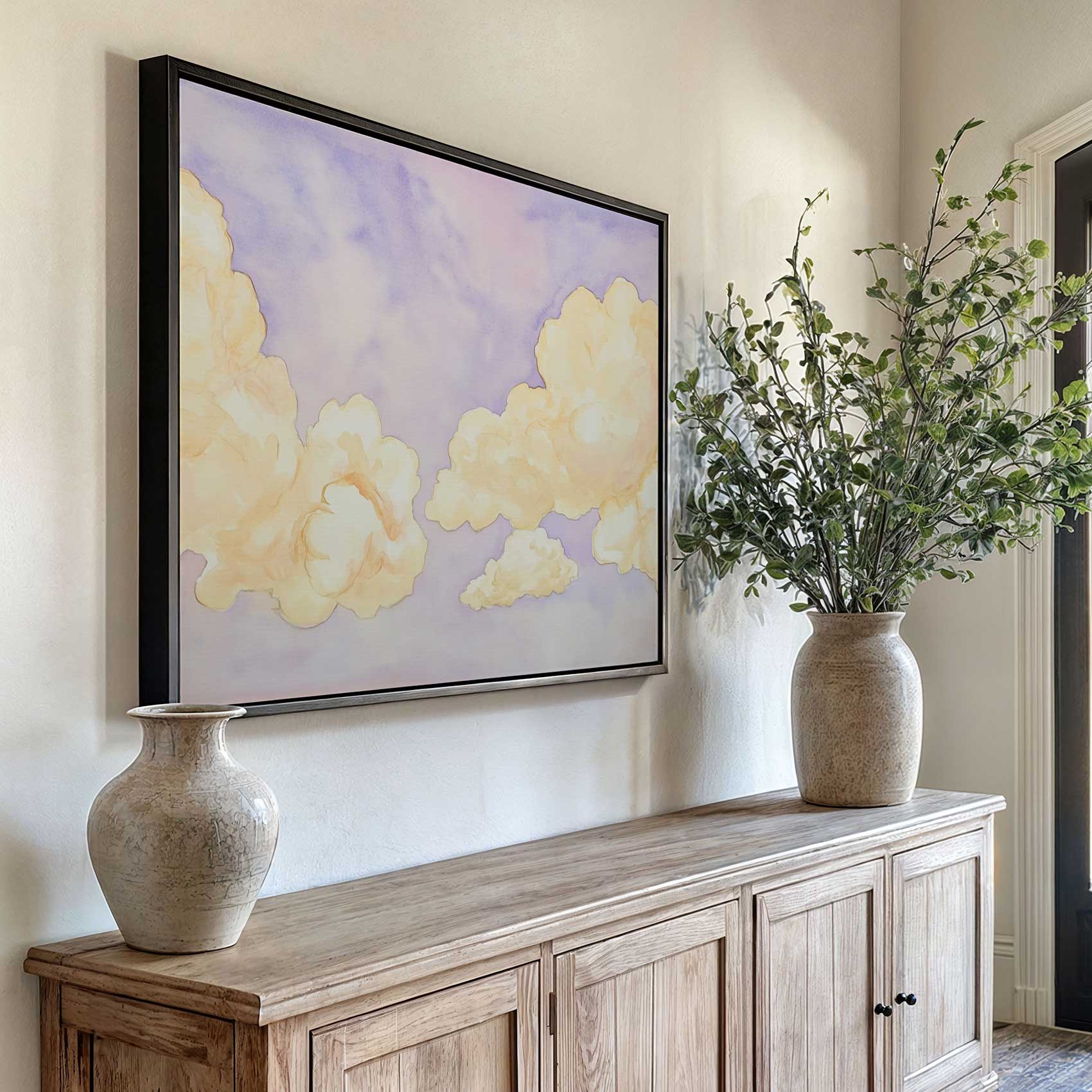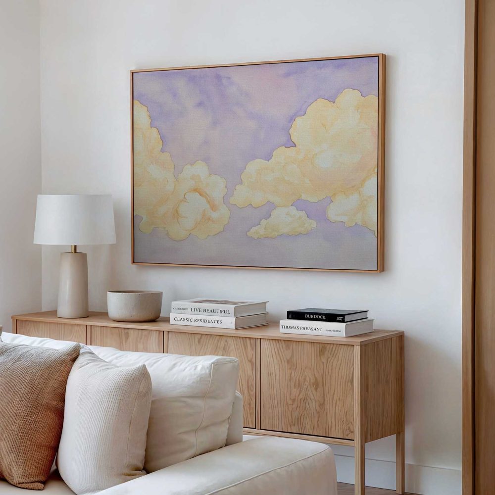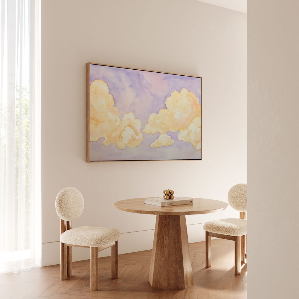 Terug naar collectie / Schilderijen / Abstract Schilderij / Dromerig watercolor wolkenlucht