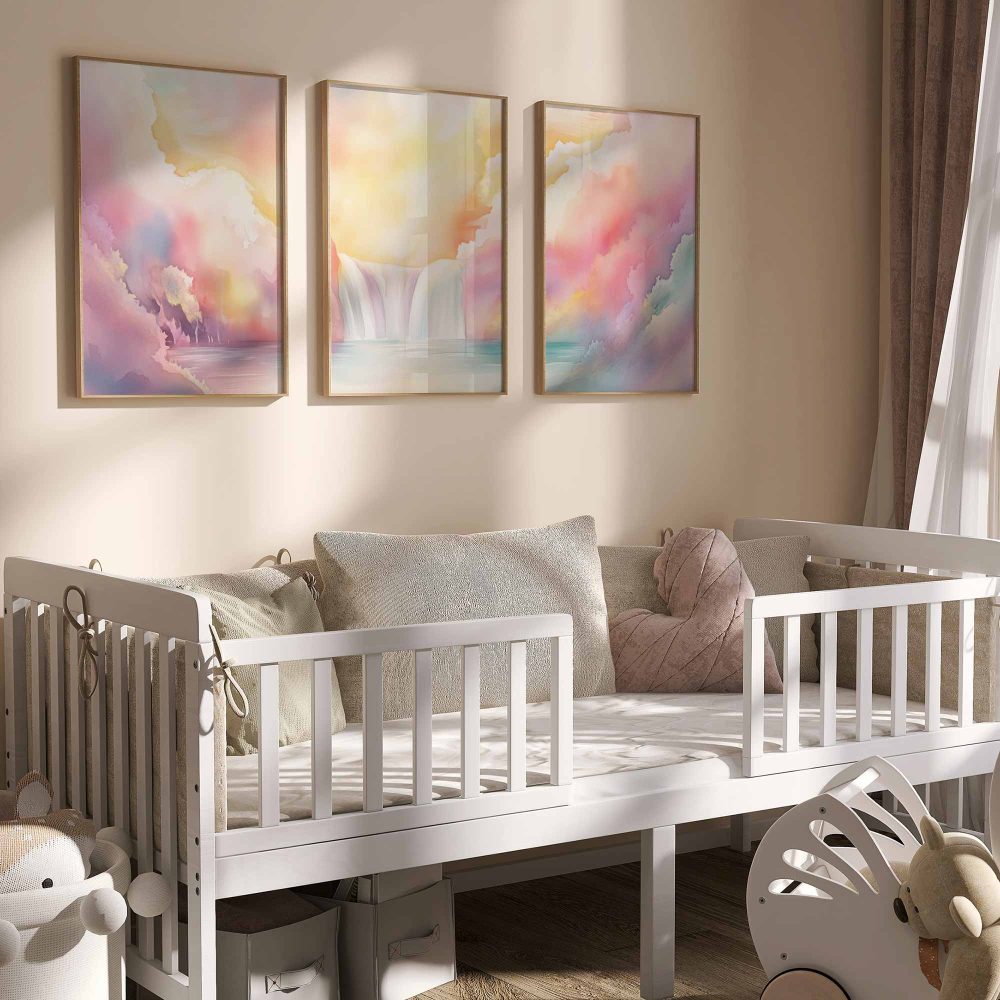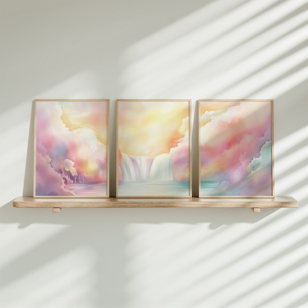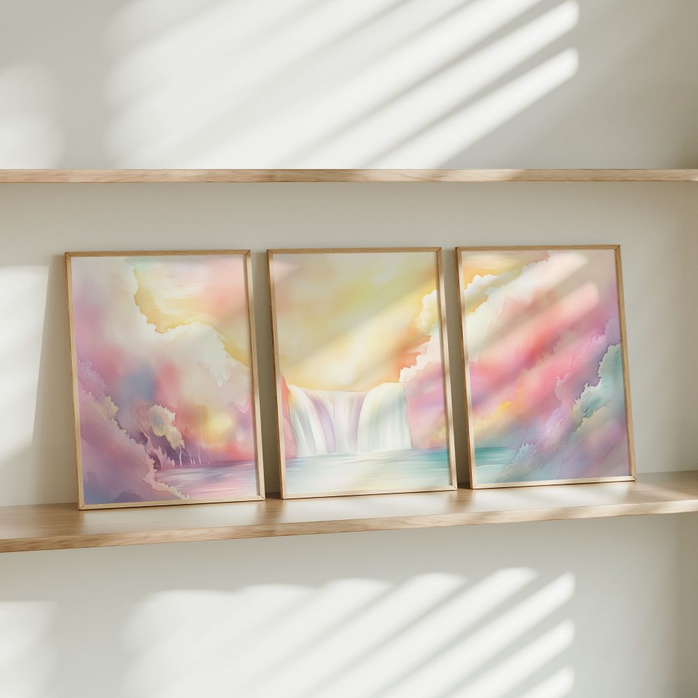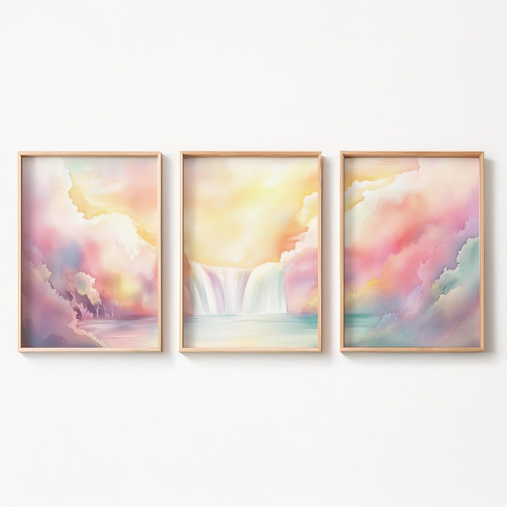 Terug naar collectie / Kinderkamer posters / Dromerig Waterval Tafereel in Pastel Waterverf