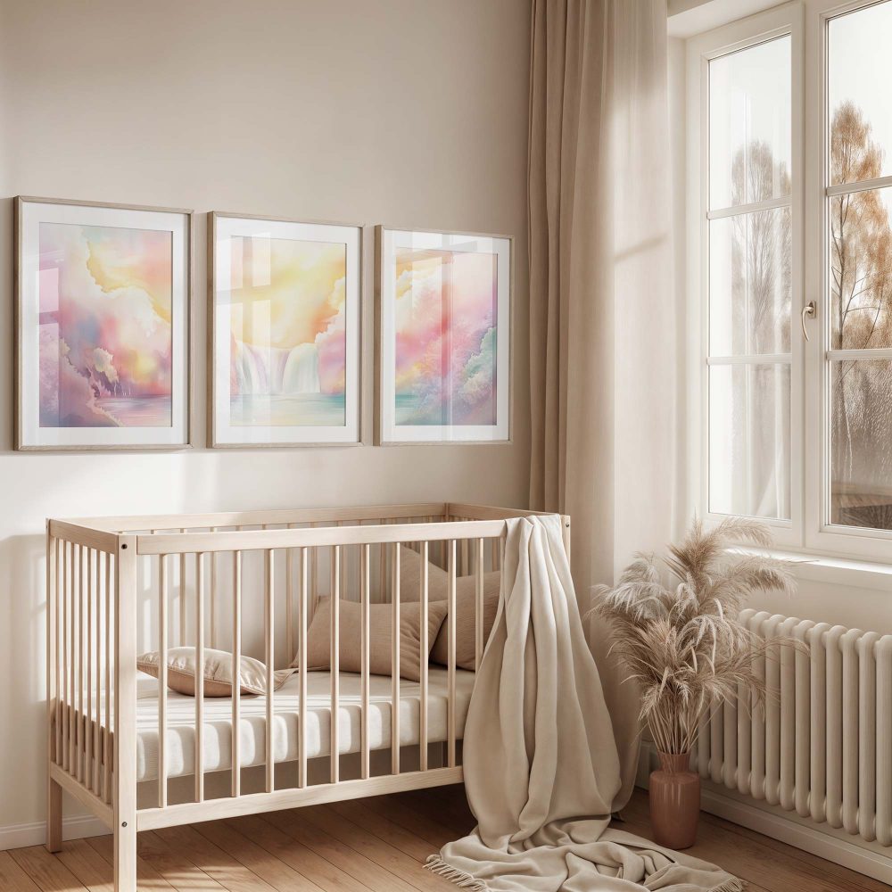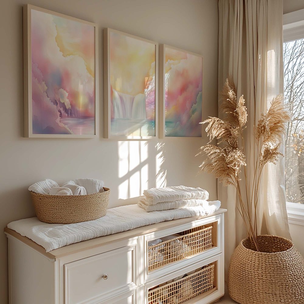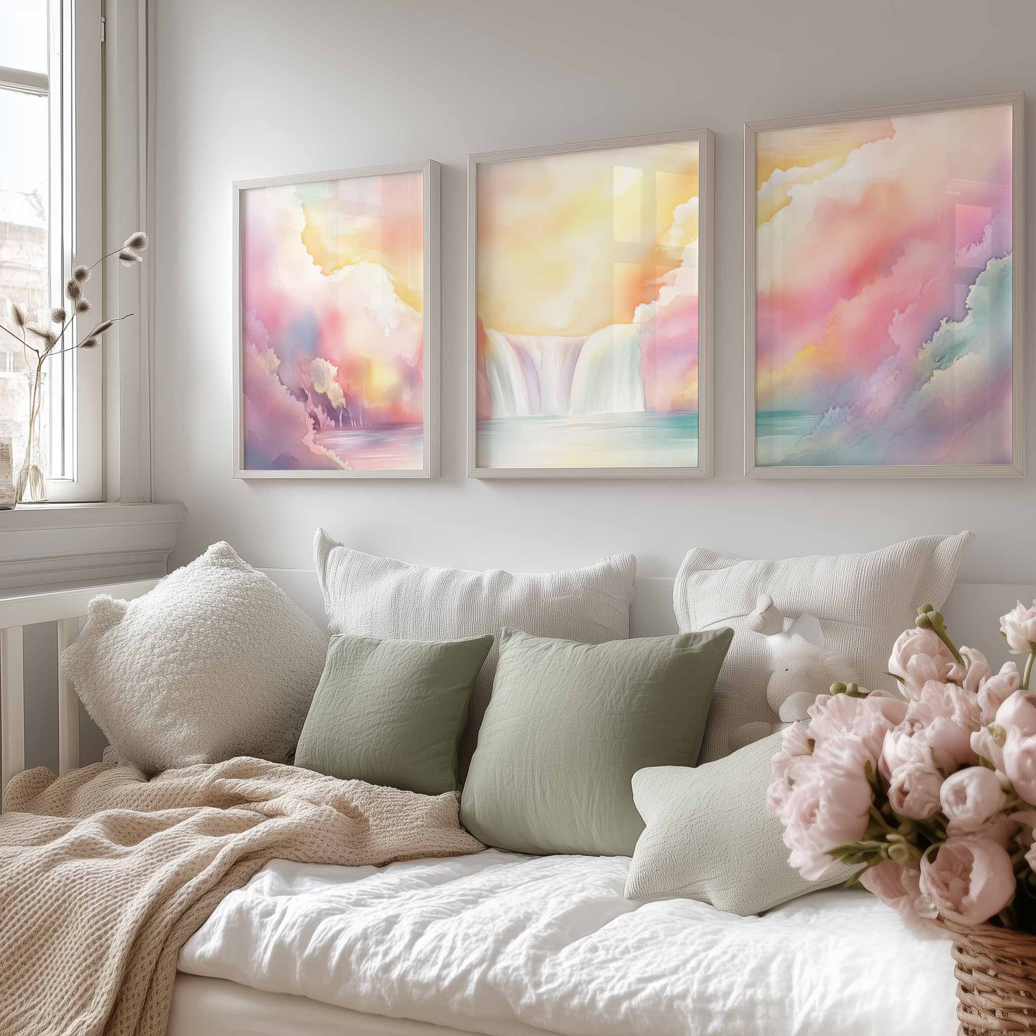 Terug naar collectie / Kinderkamer posters / Dromerig Waterval Tafereel in Pastel Waterverf