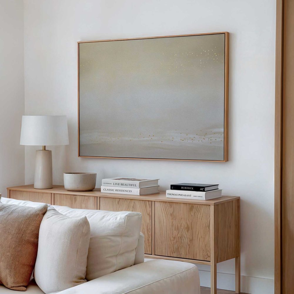 Terug naar collectie / Schilderijen / Abstract Schilderij / Dromerige beige wolkensfeer