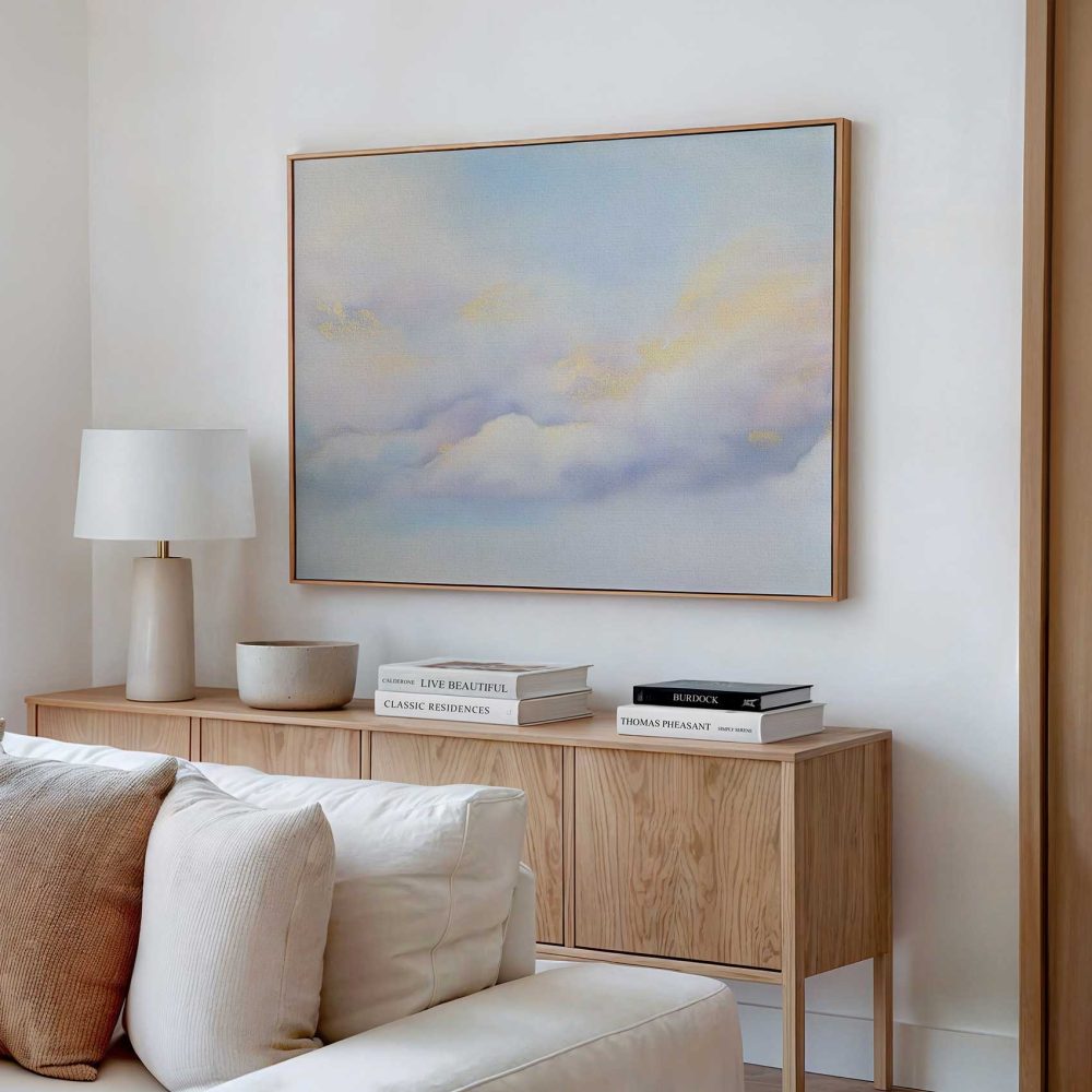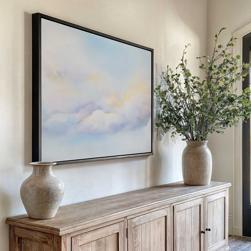 Terug naar collectie / Schilderijen / Abstract Schilderij / Dromerige Glitterwolkenlucht