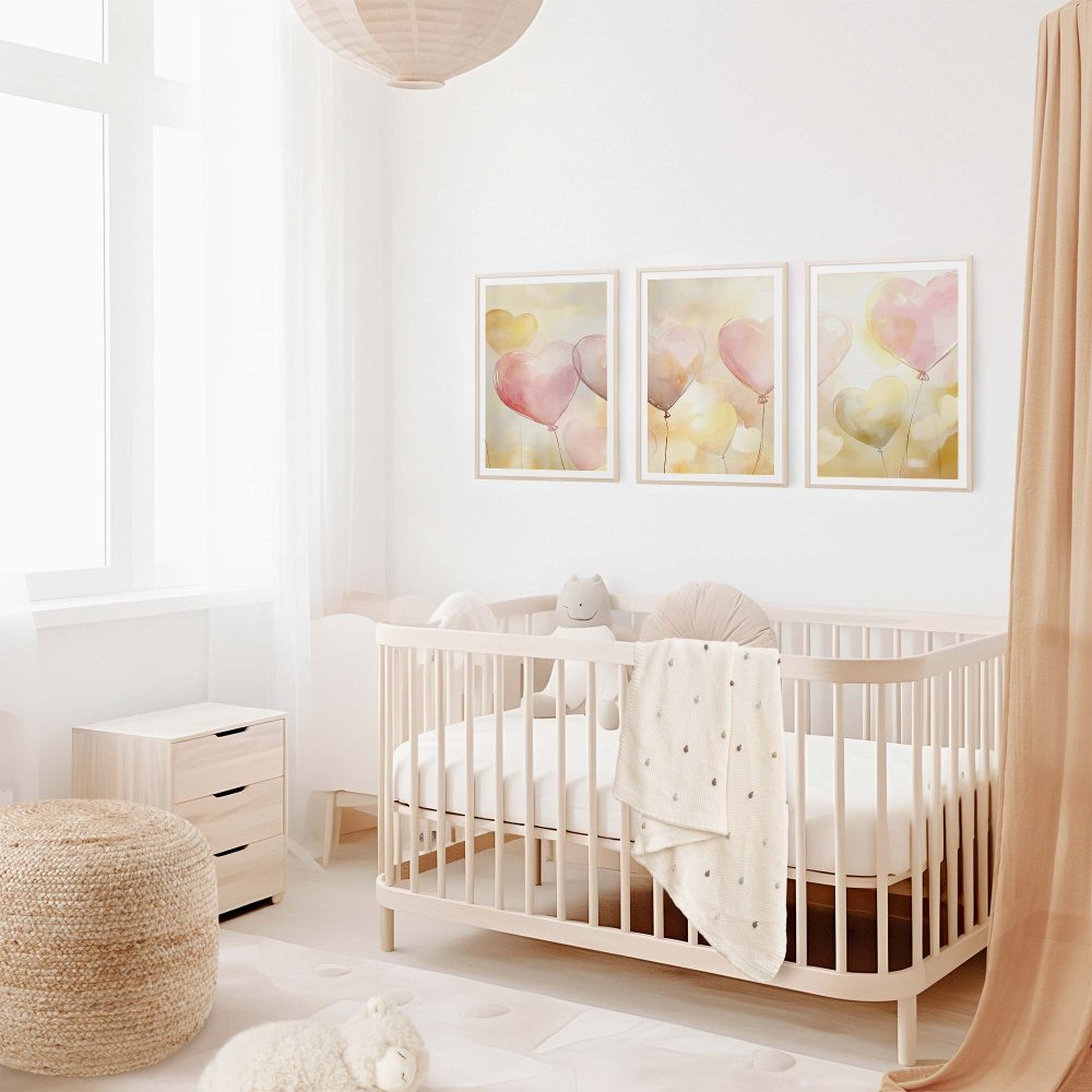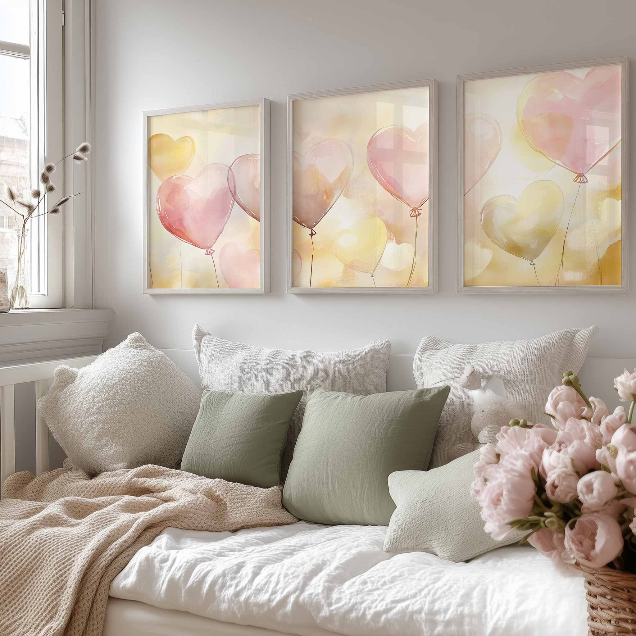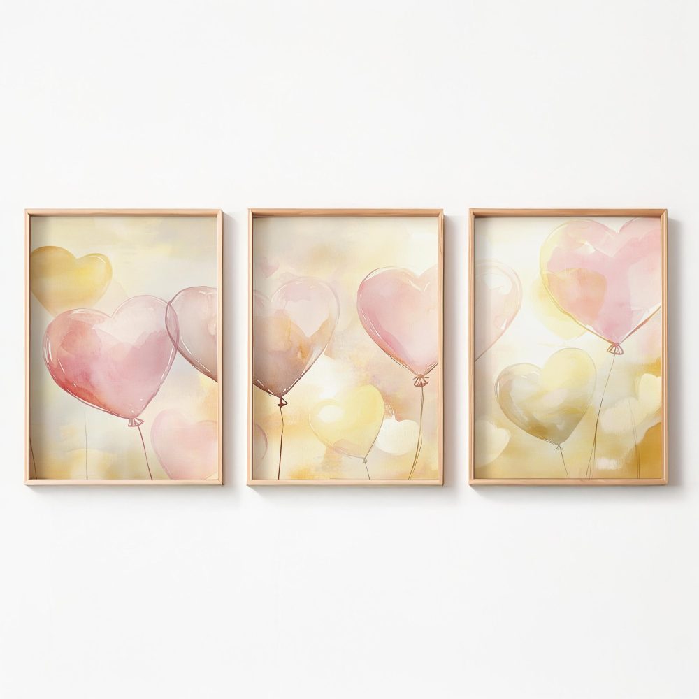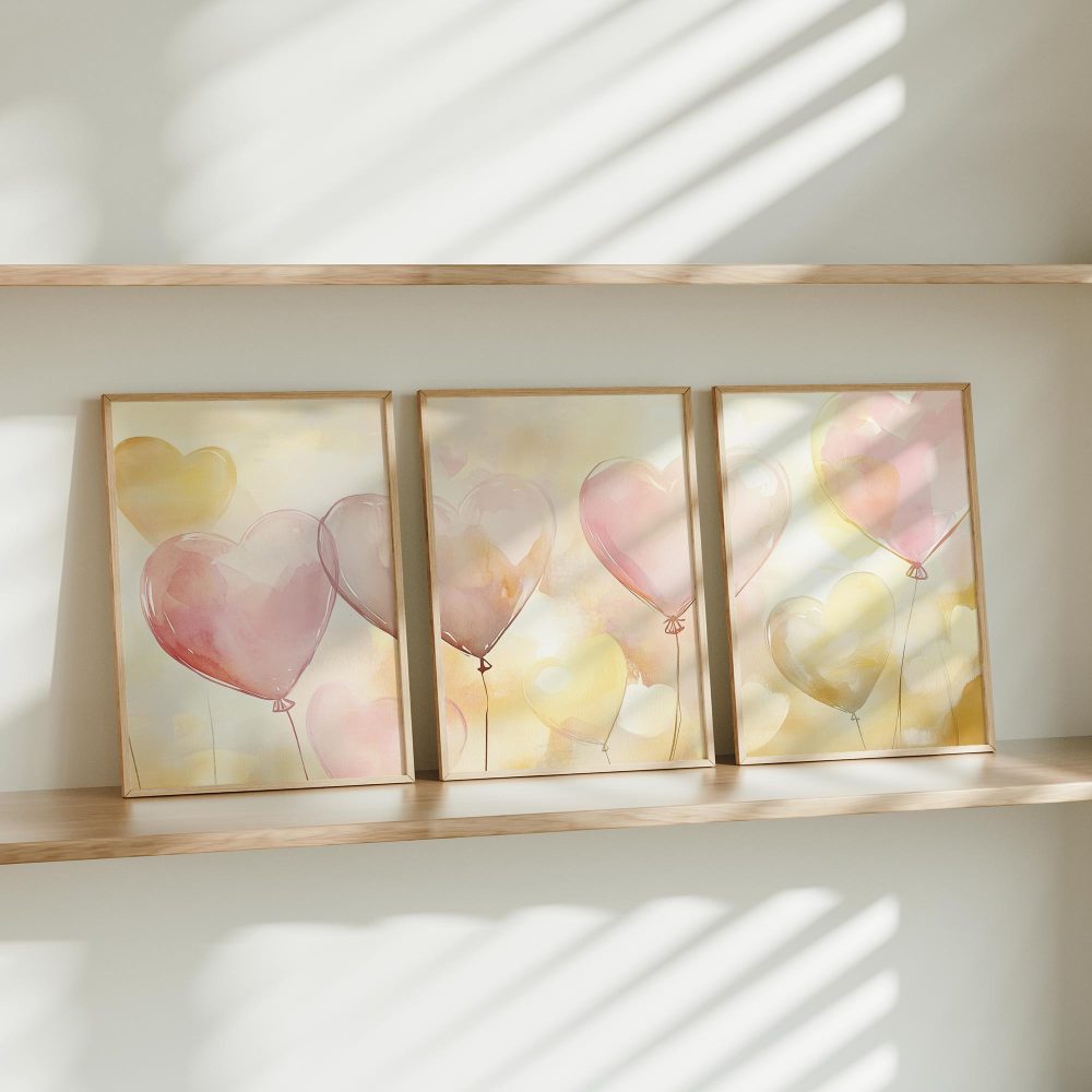 Terug naar collectie / Kinderkamer posters / Hartjes posters / Dromerige hartballonnen in pastelkleuren