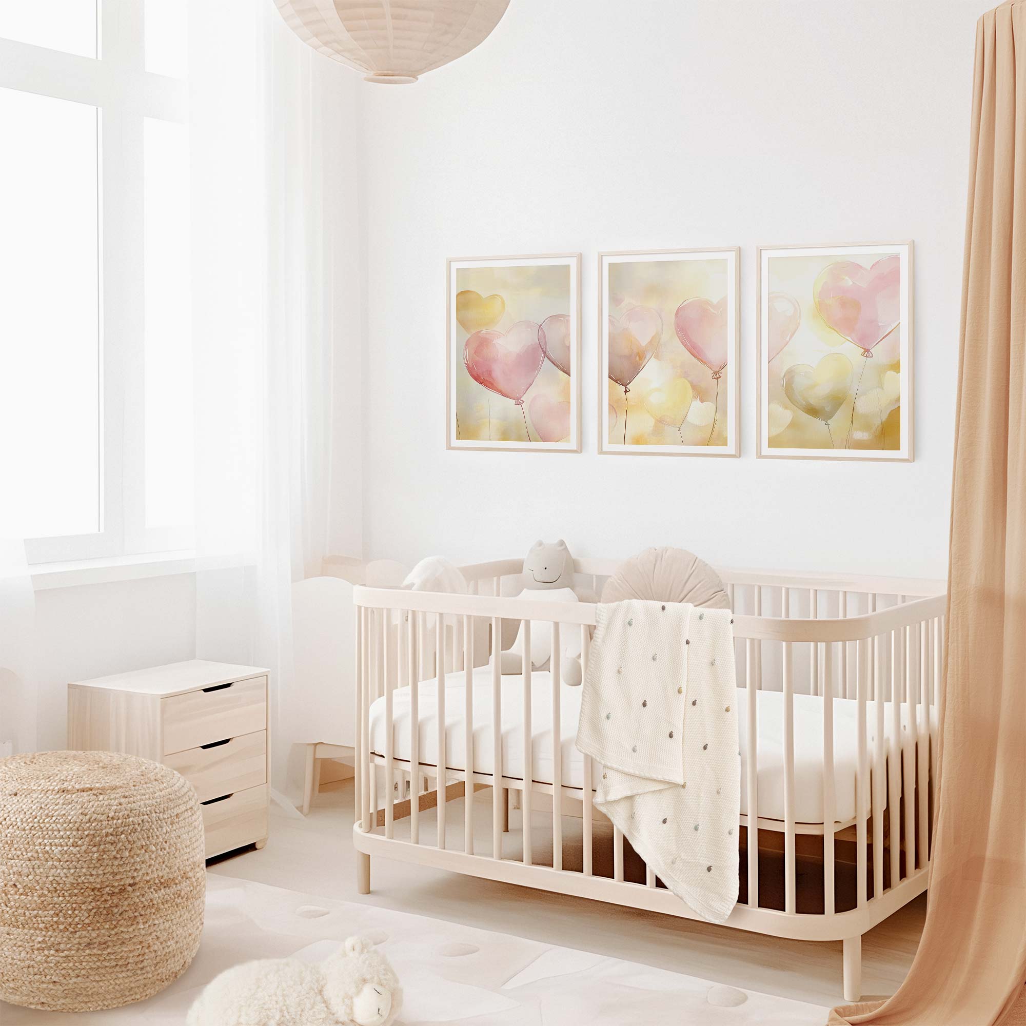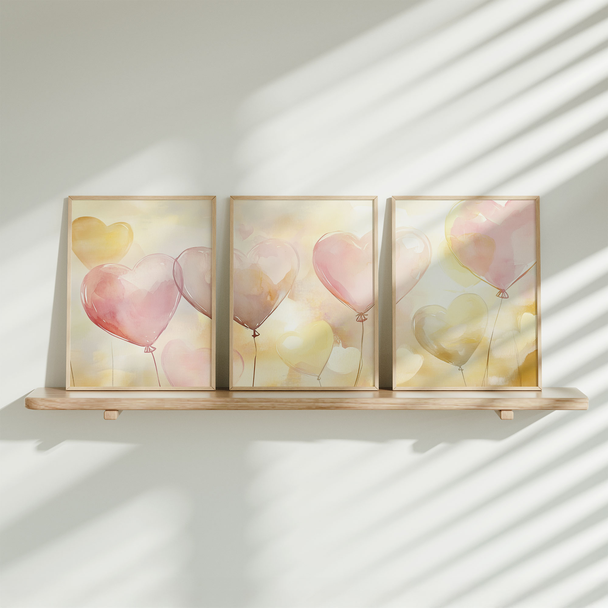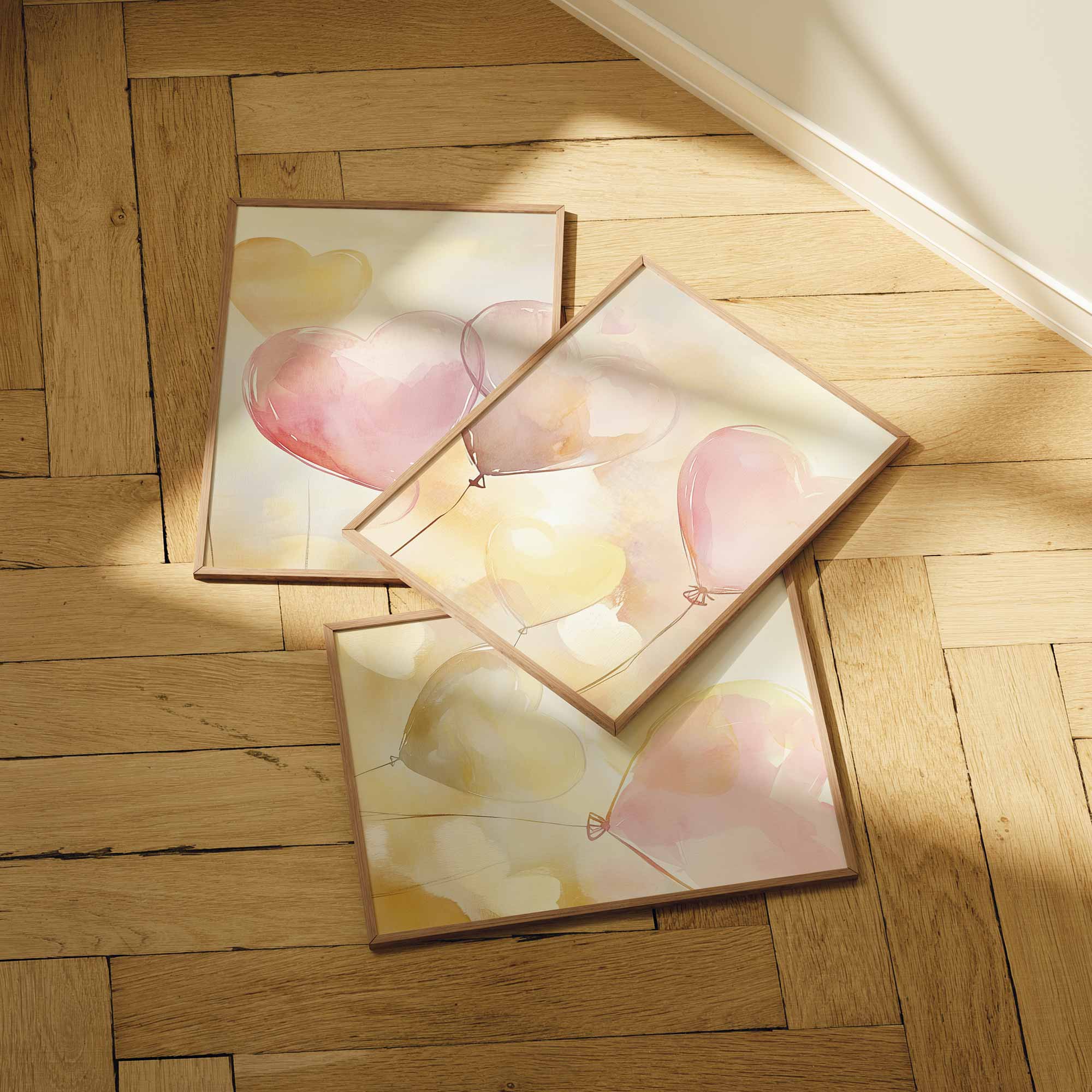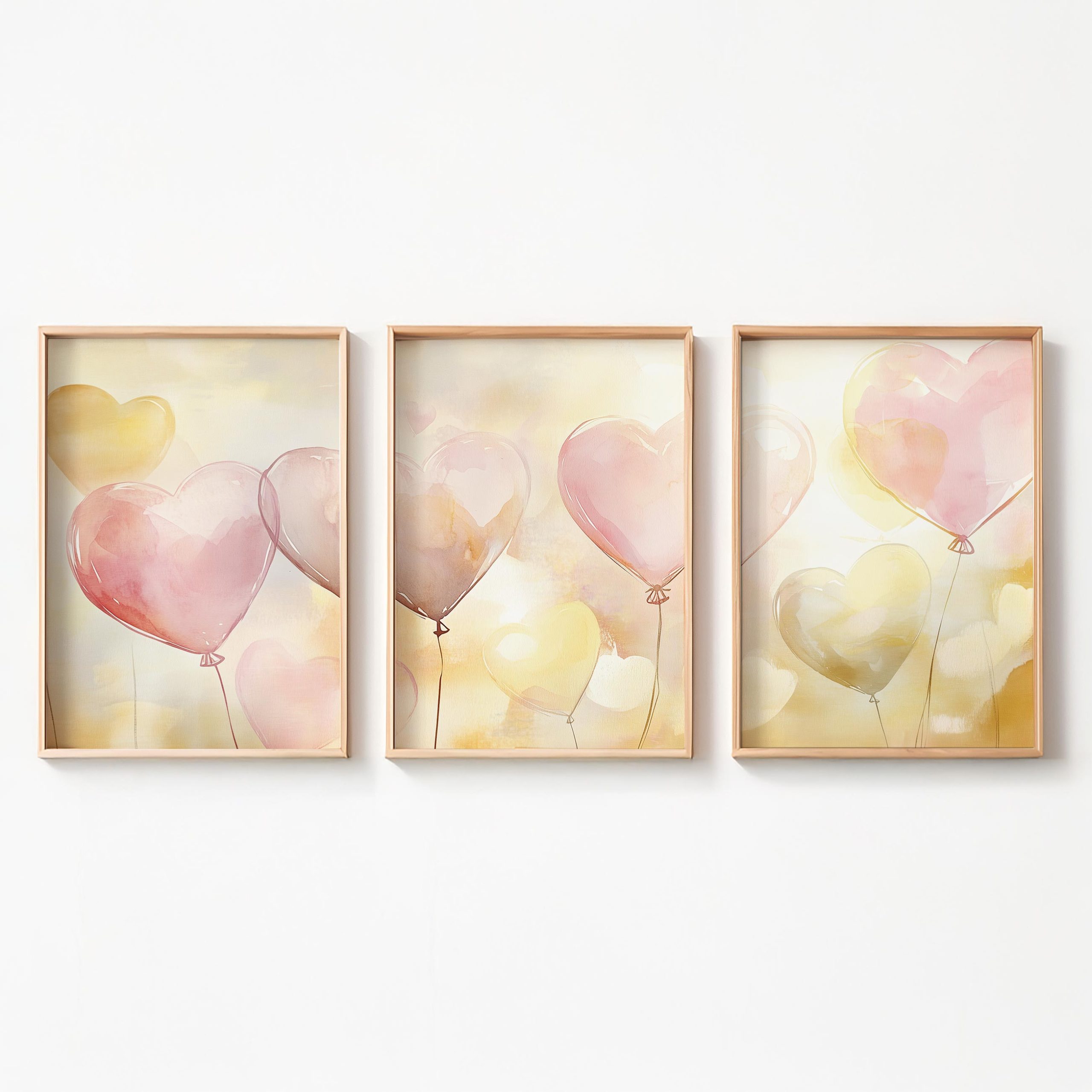 Terug naar collectie / Kinderkamer posters / Hartjes posters / Dromerige hartballonnen in pastelkleuren