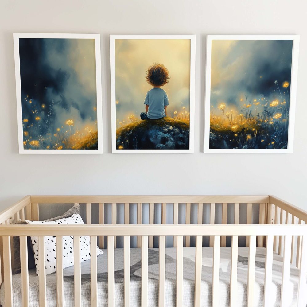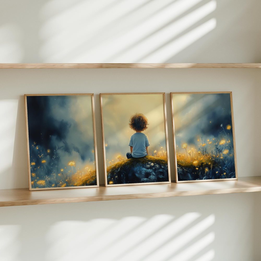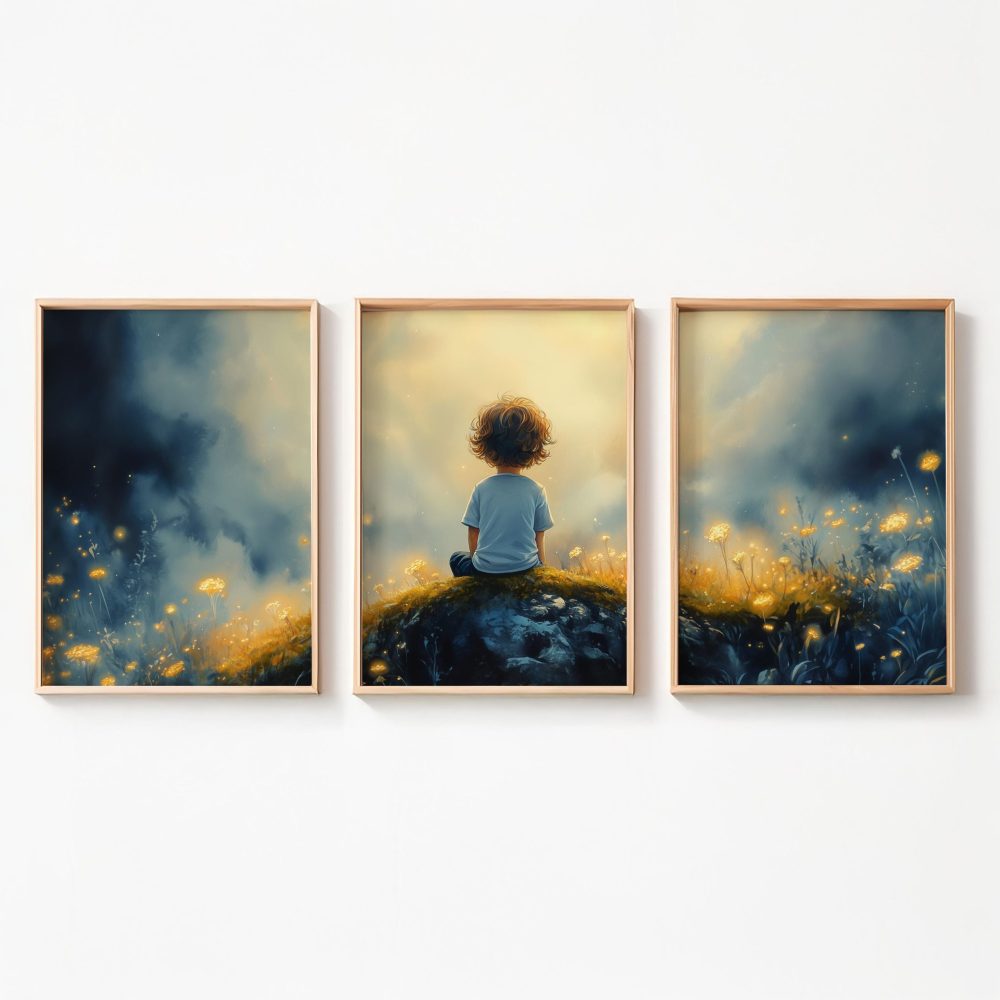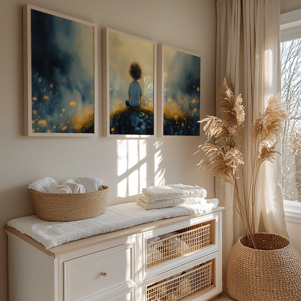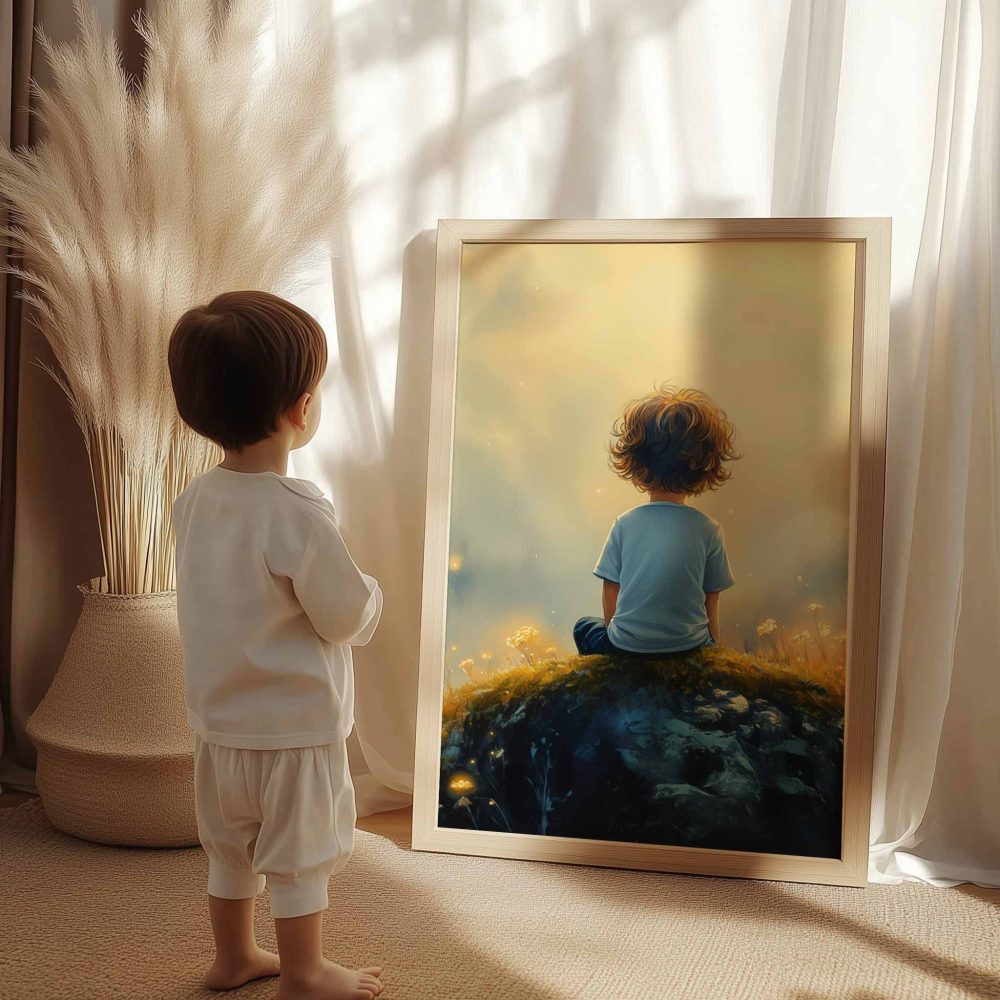 Terug naar collectie / Kinderkamer posters / Bloemen posters / Dromerige Jongen in Betoverend Bloemenveld