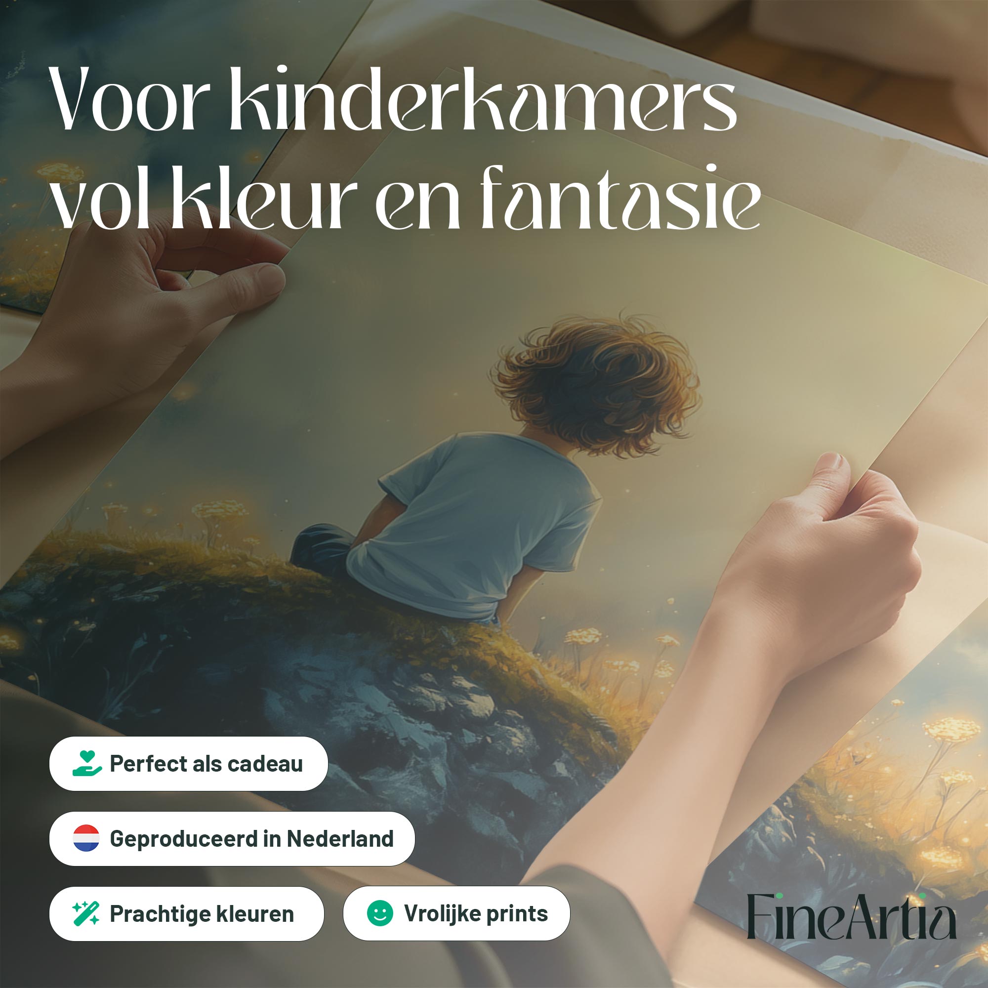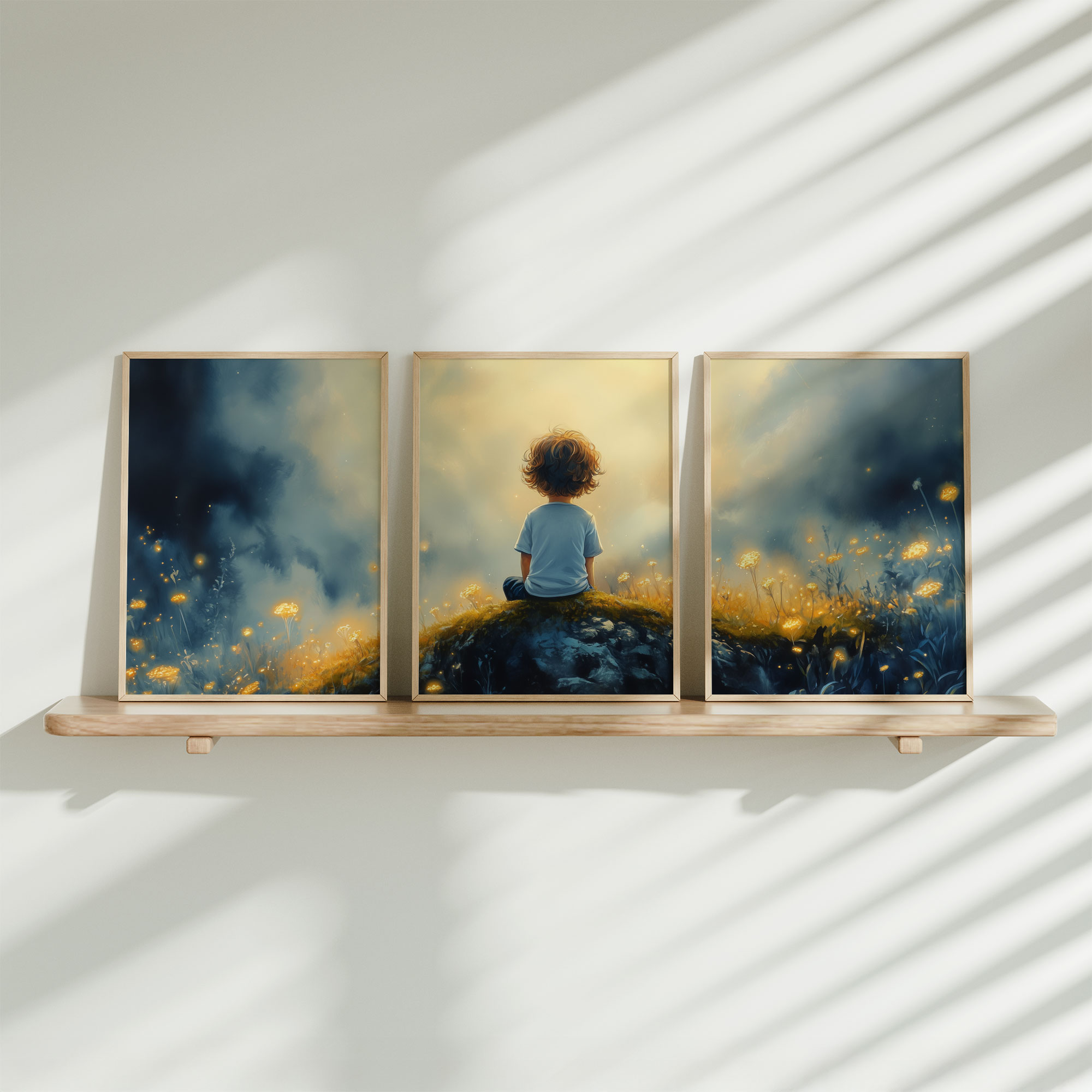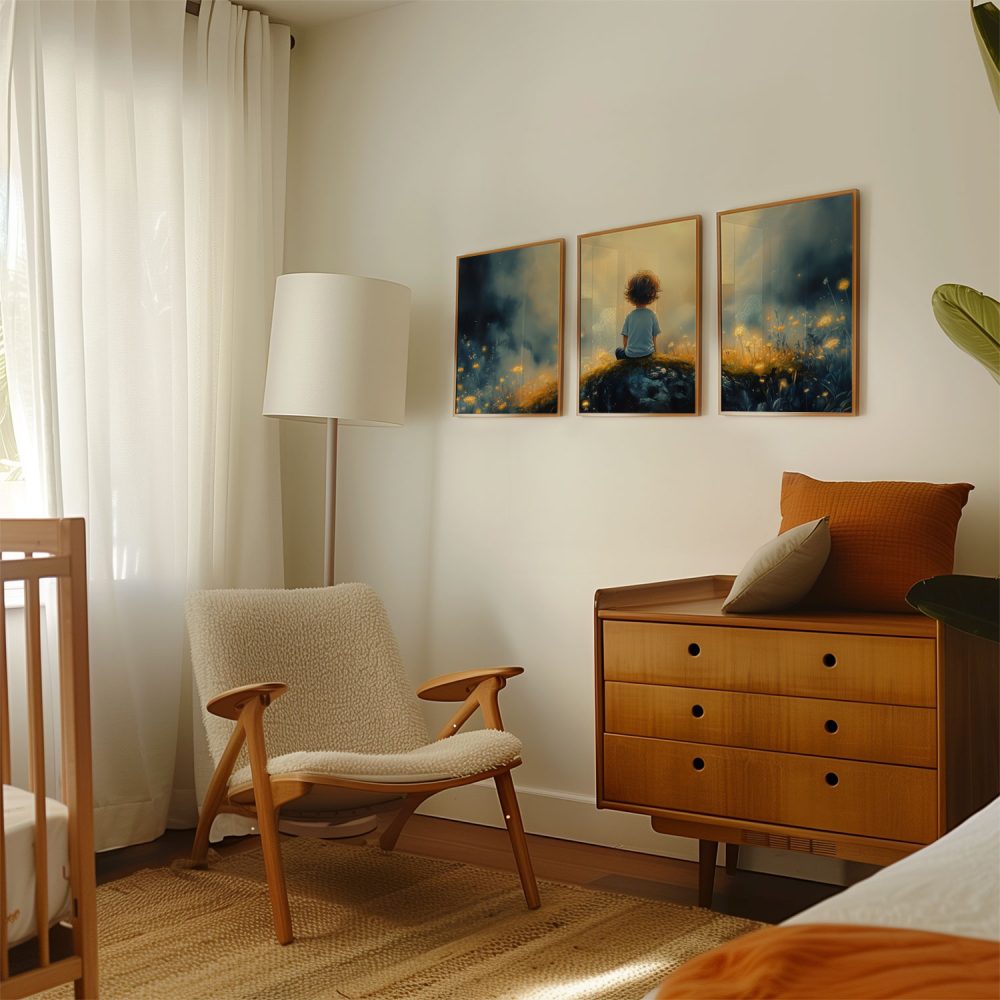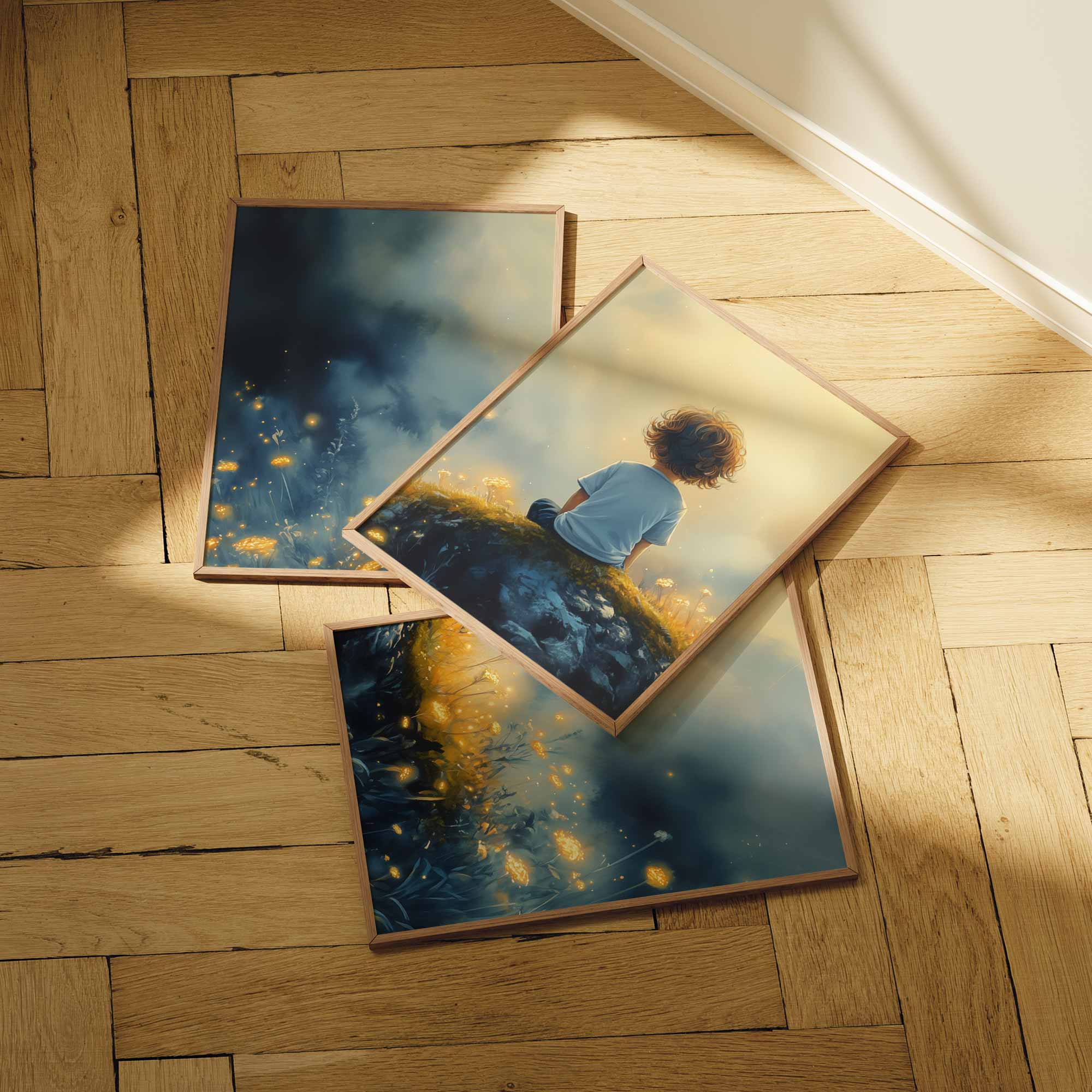 Terug naar collectie / Kinderkamer posters / Bloemen posters / Dromerige Jongen in Betoverend Bloemenveld