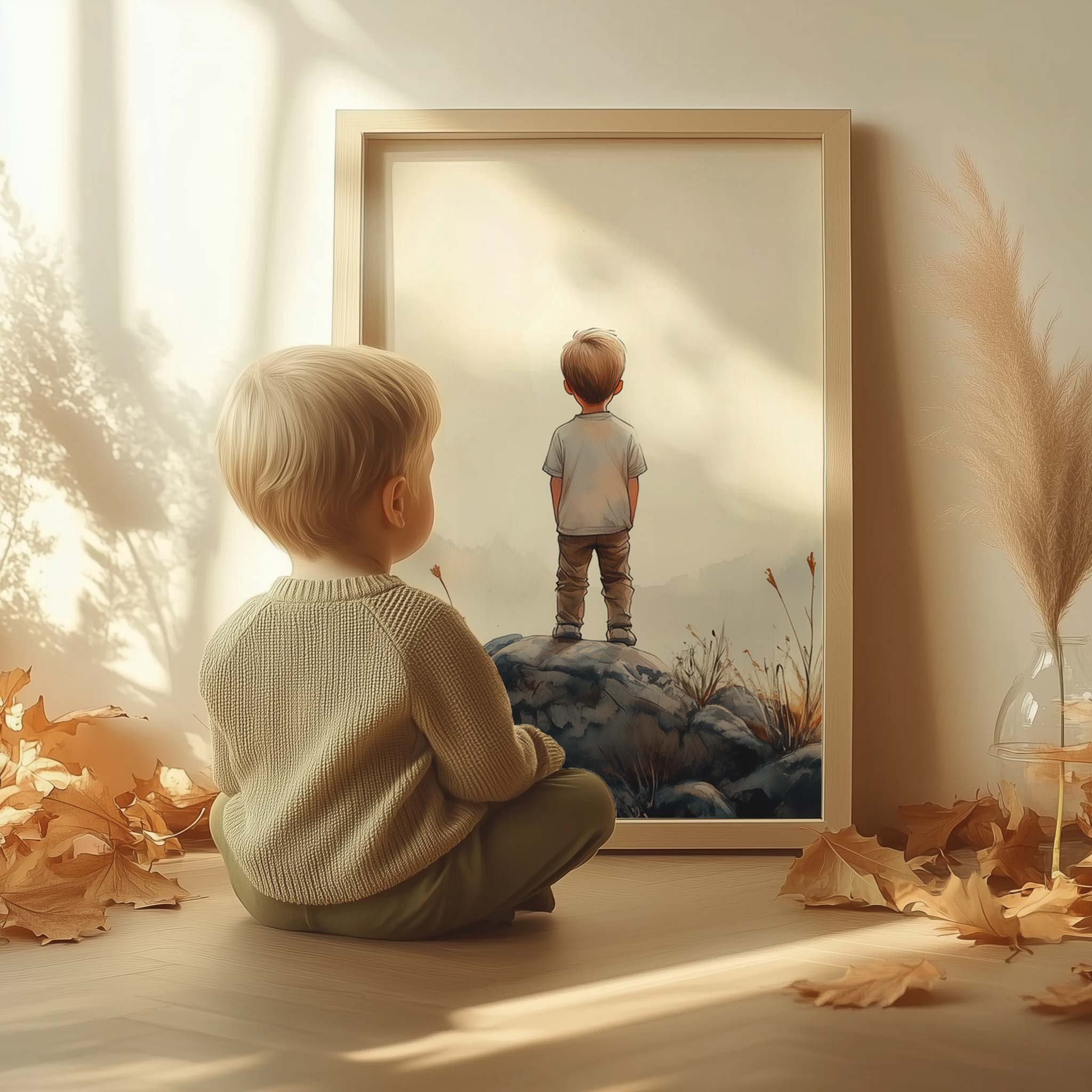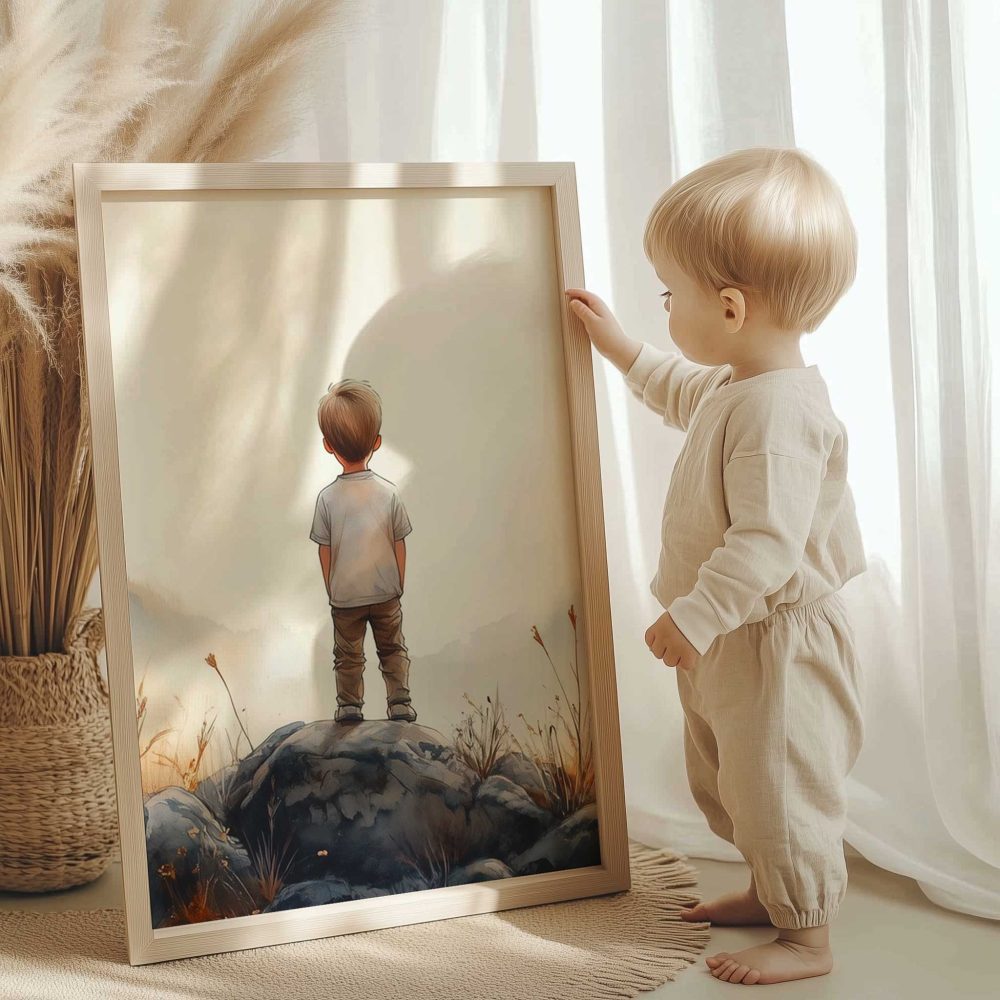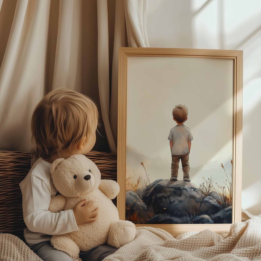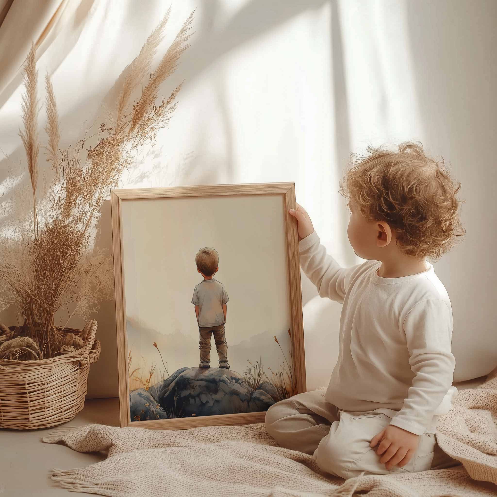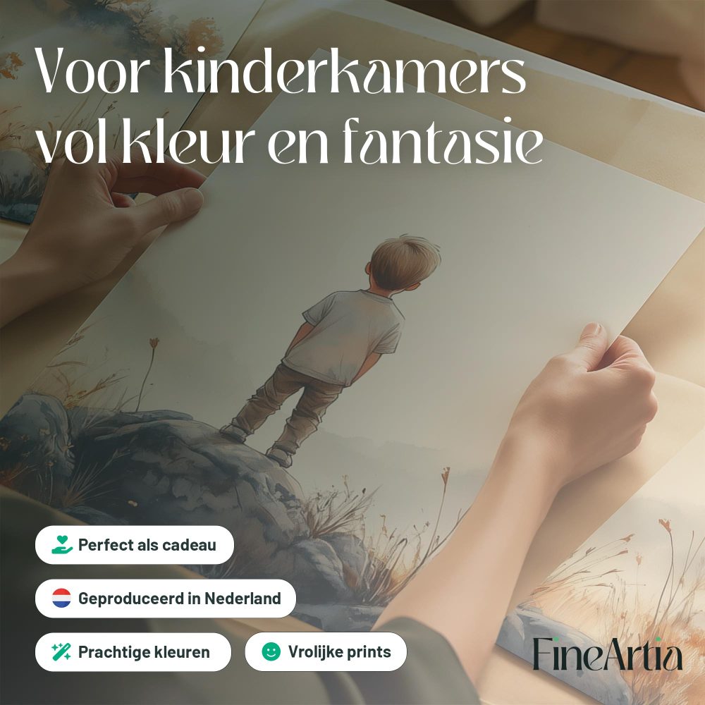 Terug naar collectie / Kinderkamer posters / Avontuurlijk posters / Dromerige Jongen in Bloeiend Bloemenveld