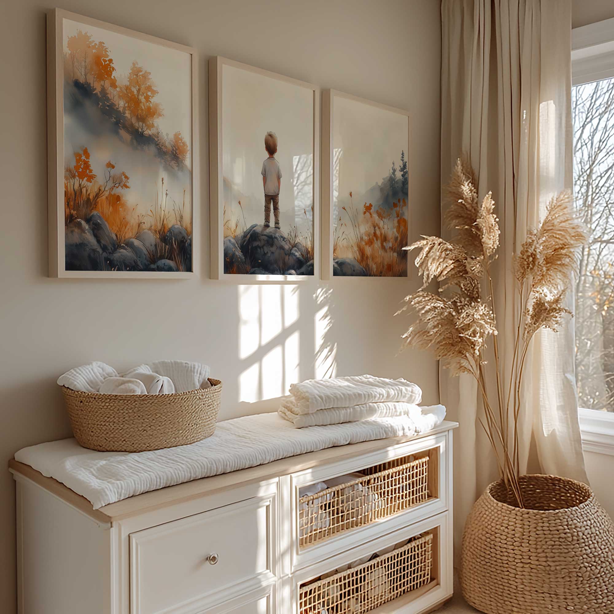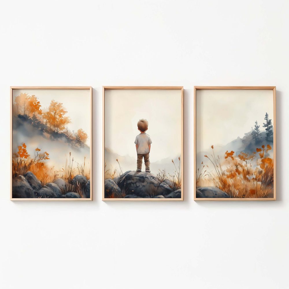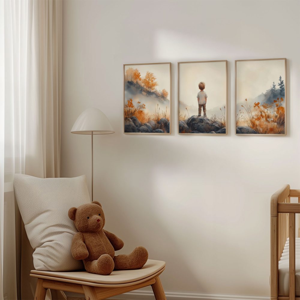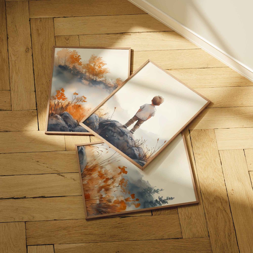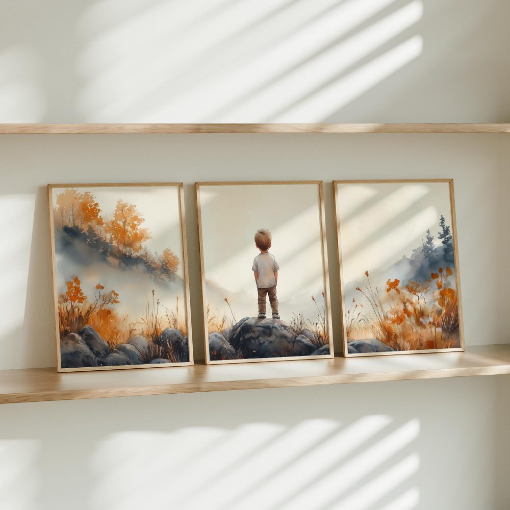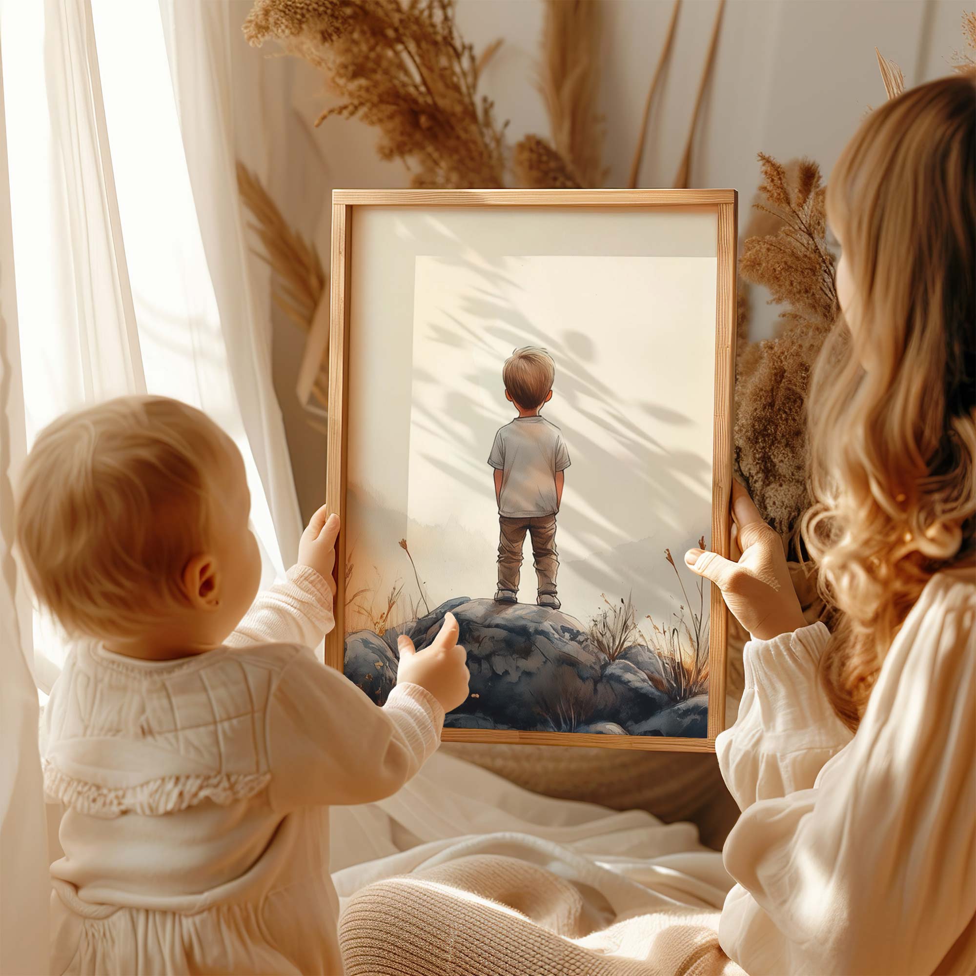 Terug naar collectie / Kinderkamer posters / Avontuurlijk posters / Dromerige Jongen in Bloeiend Bloemenveld