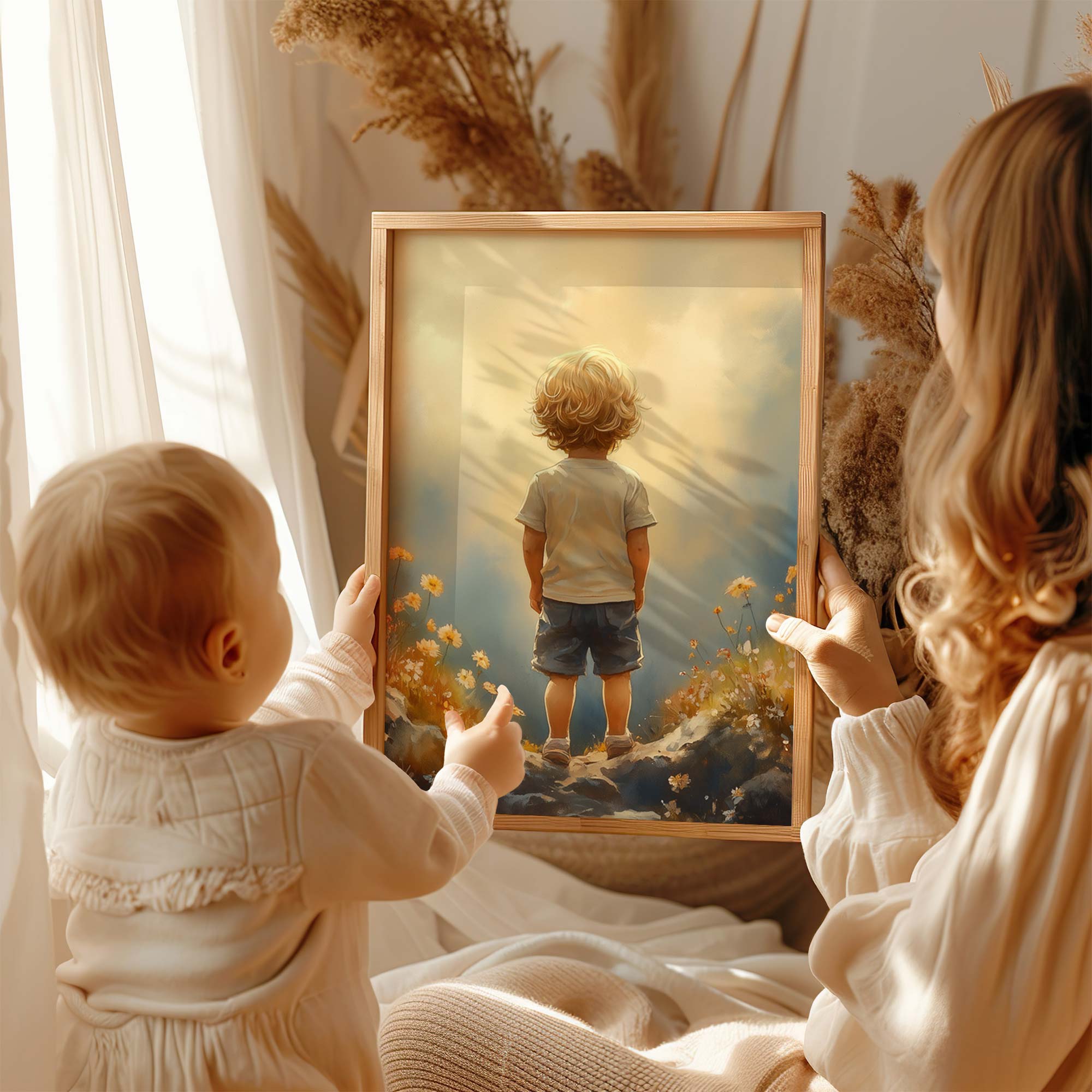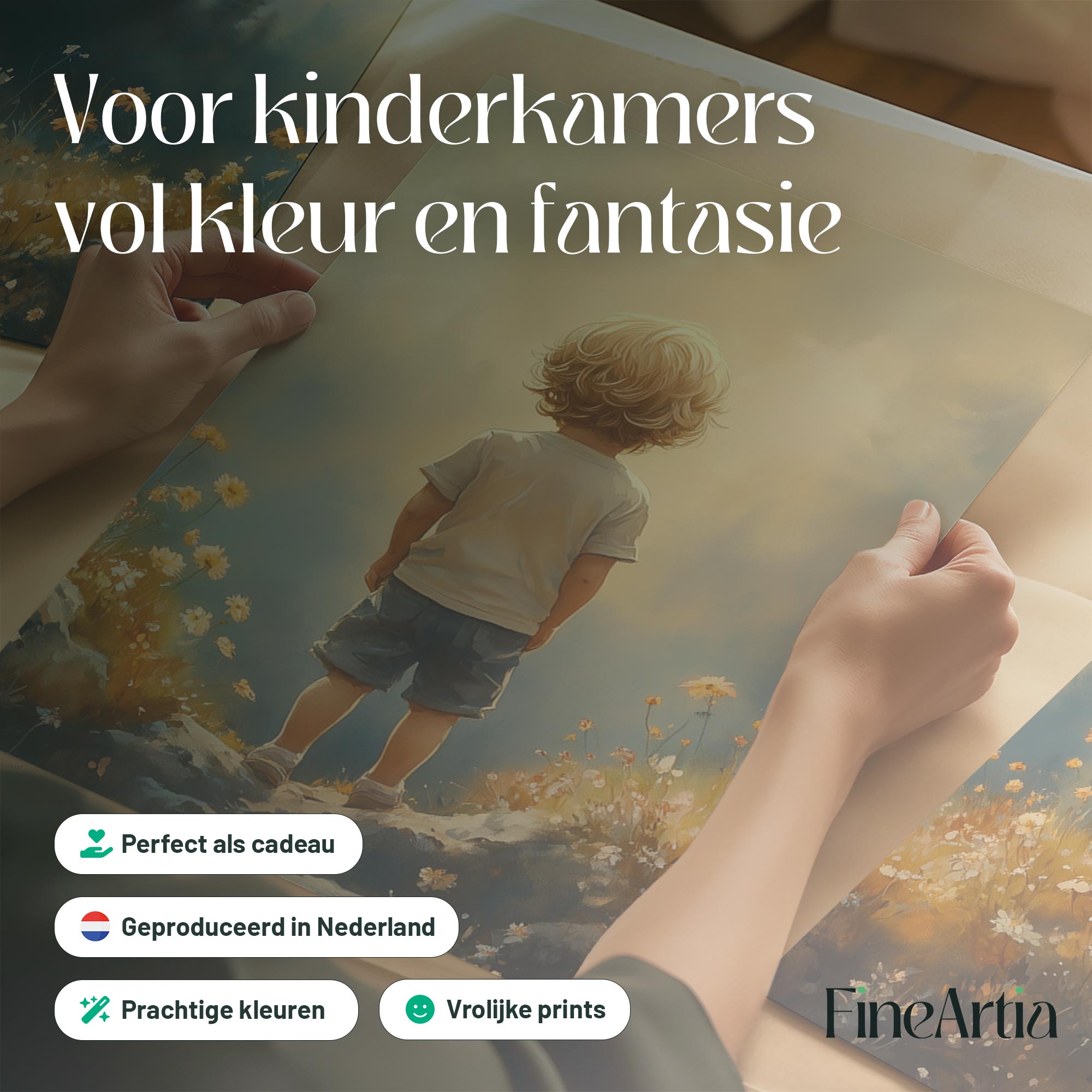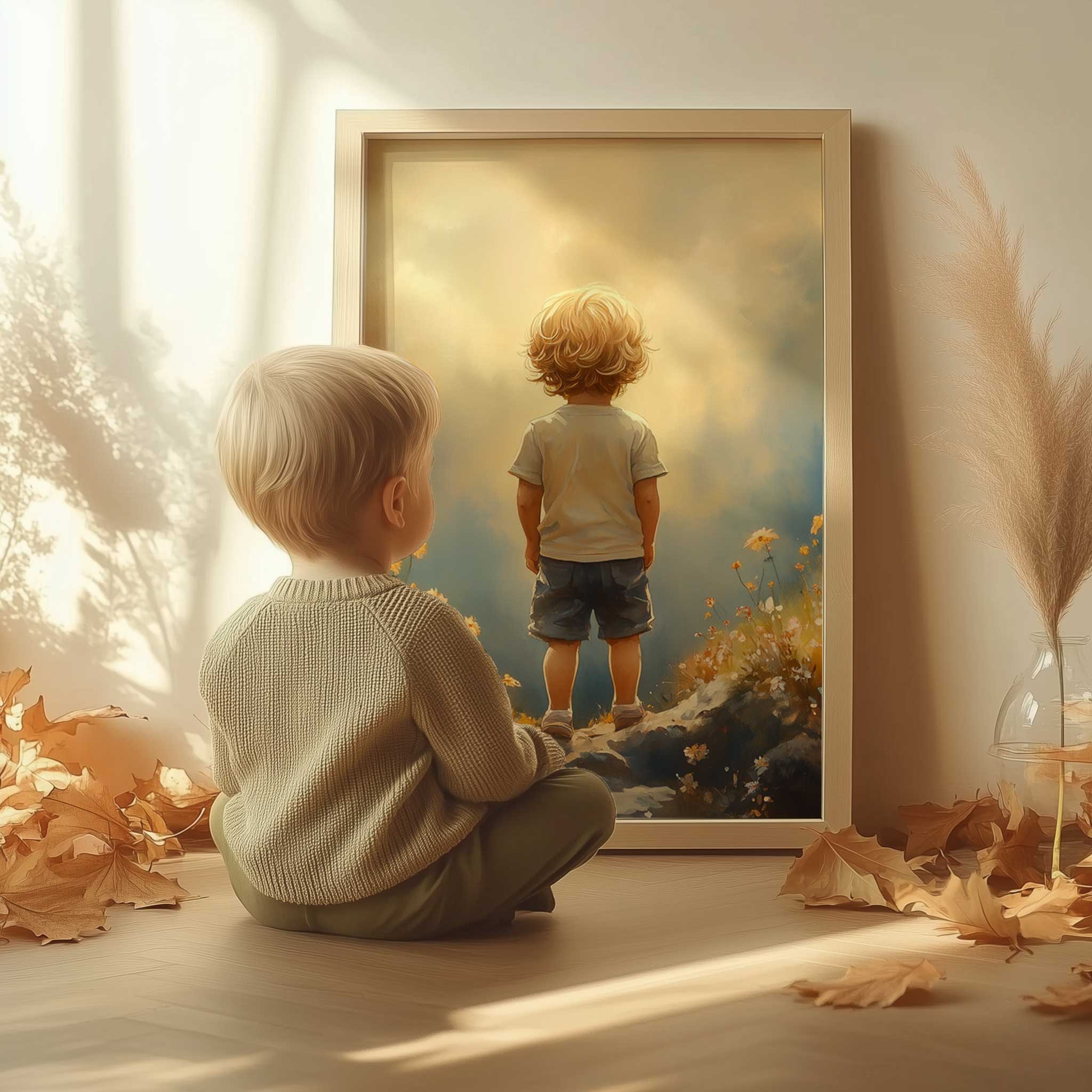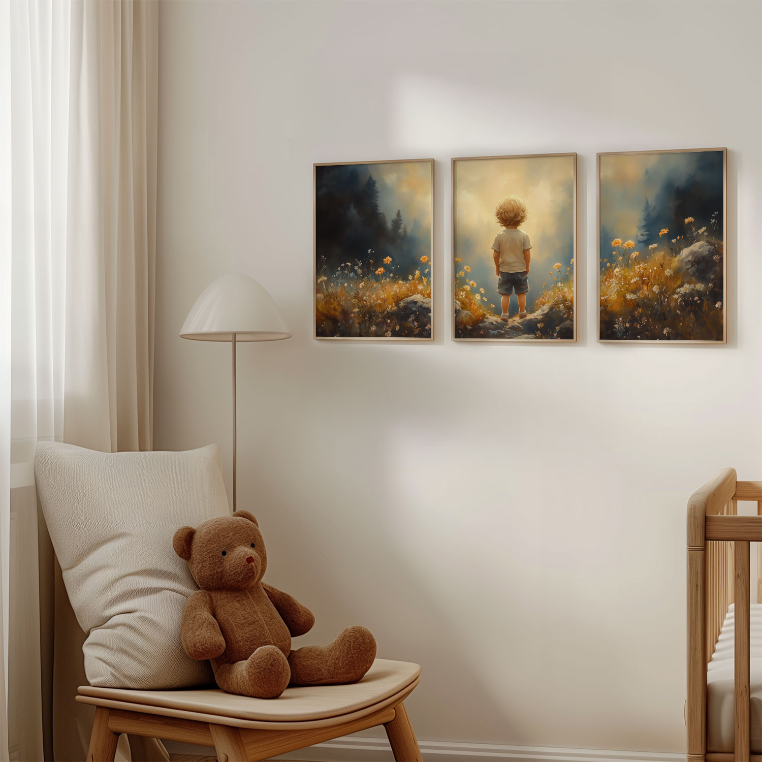 Terug naar collectie / Kinderkamer posters / Bloemen posters / Dromerige Jongen in Bloeiend Bloemenveld