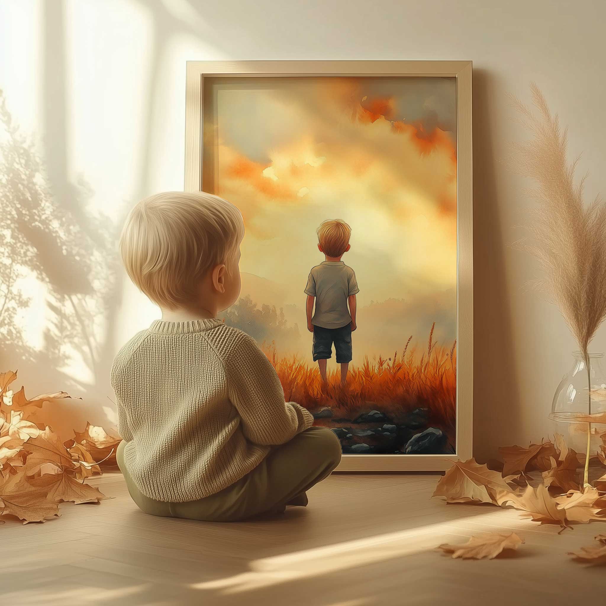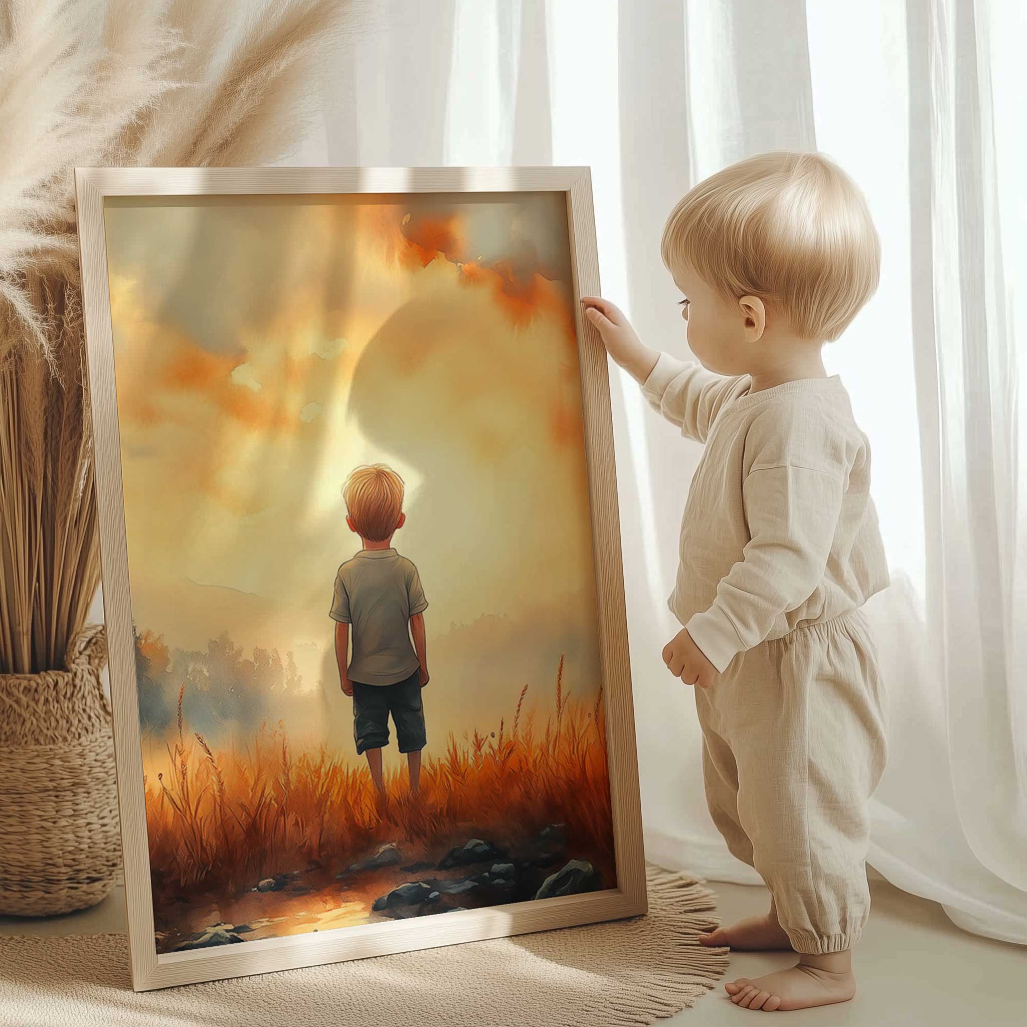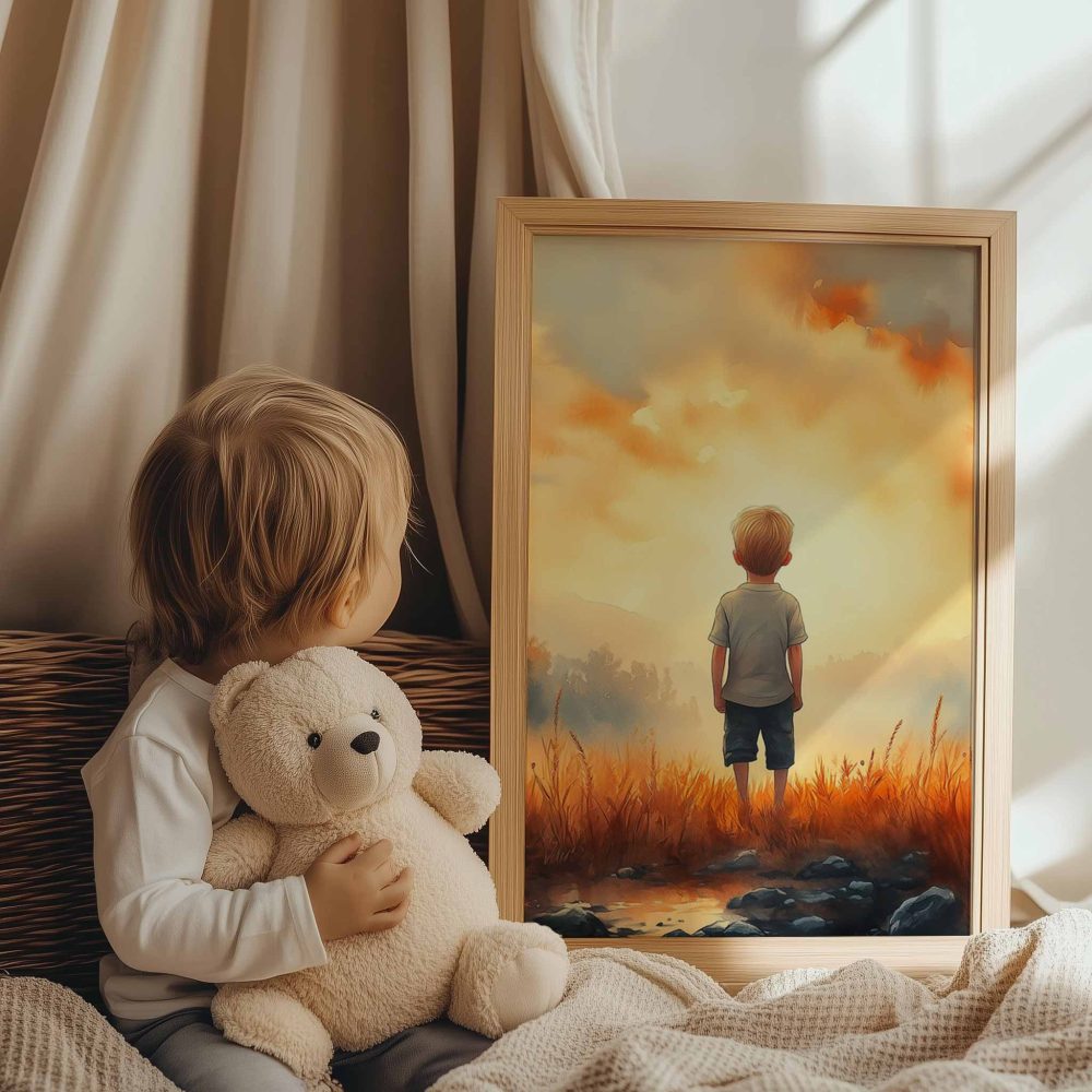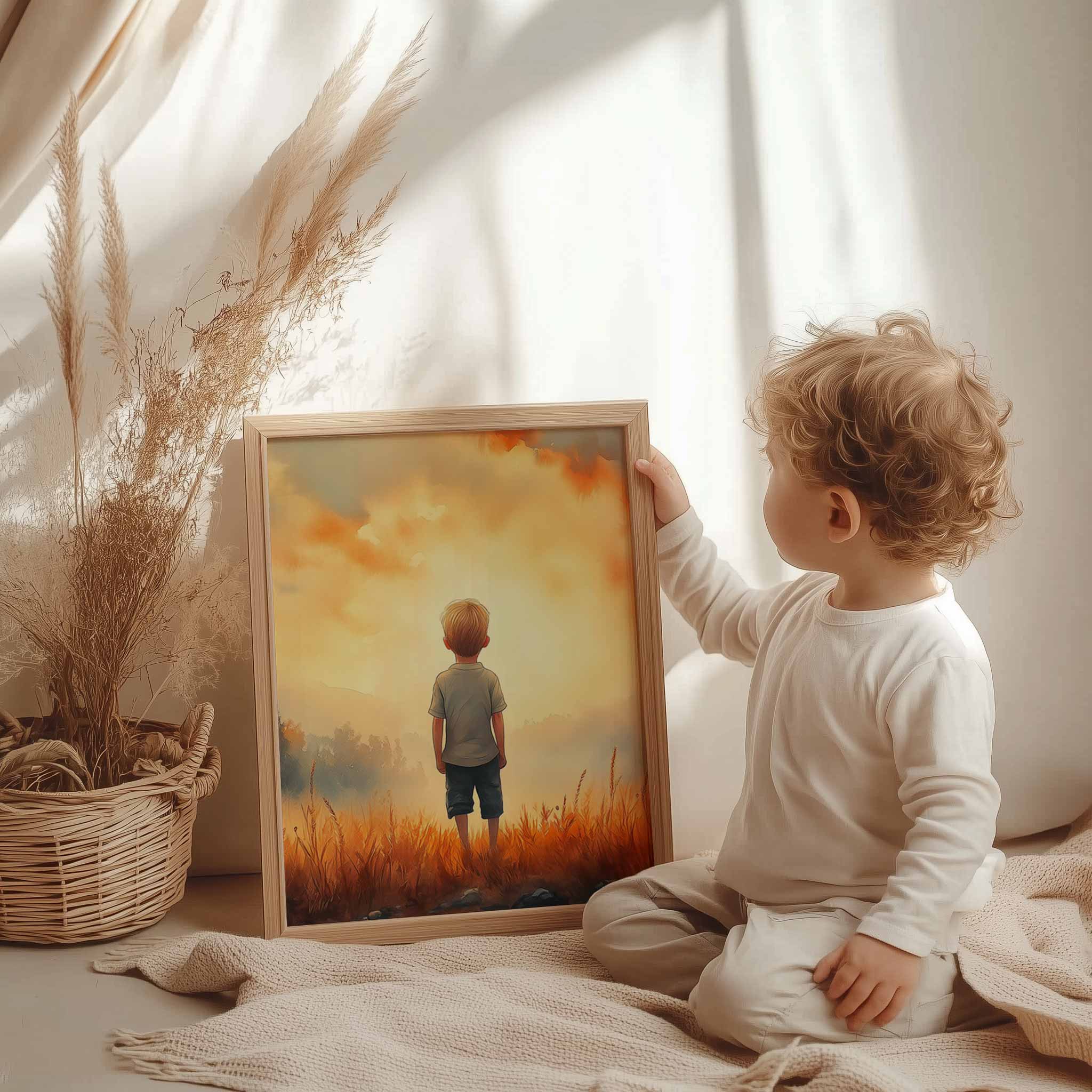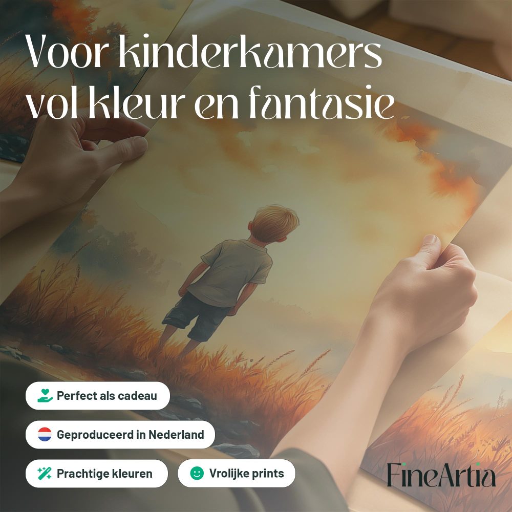 Terug naar collectie / Kinderkamer posters / Dromerige Jongen in Gouden Grasveld