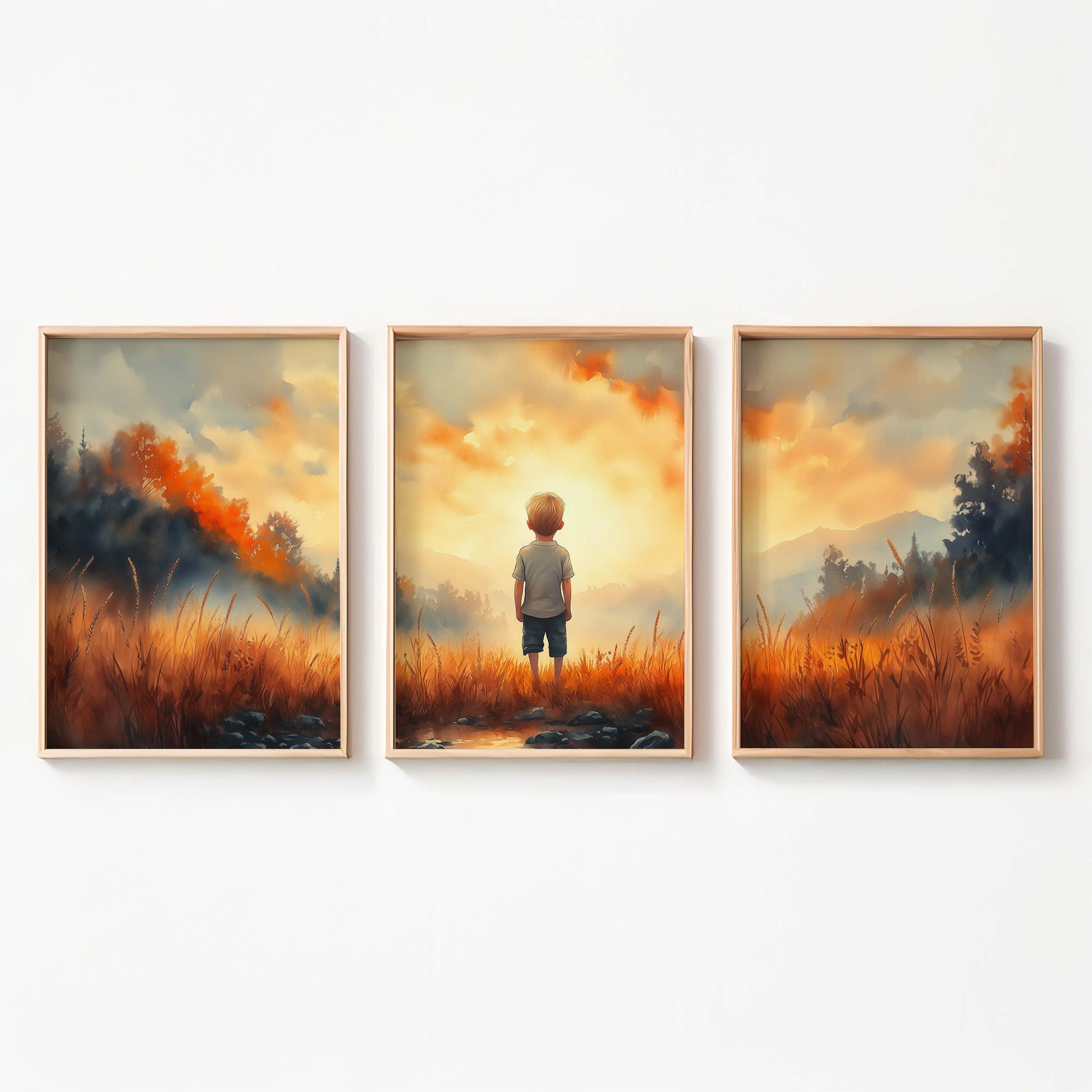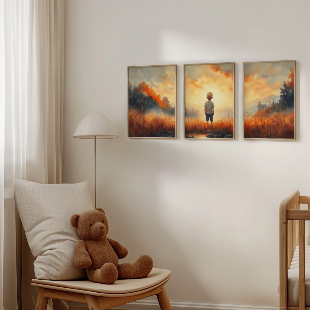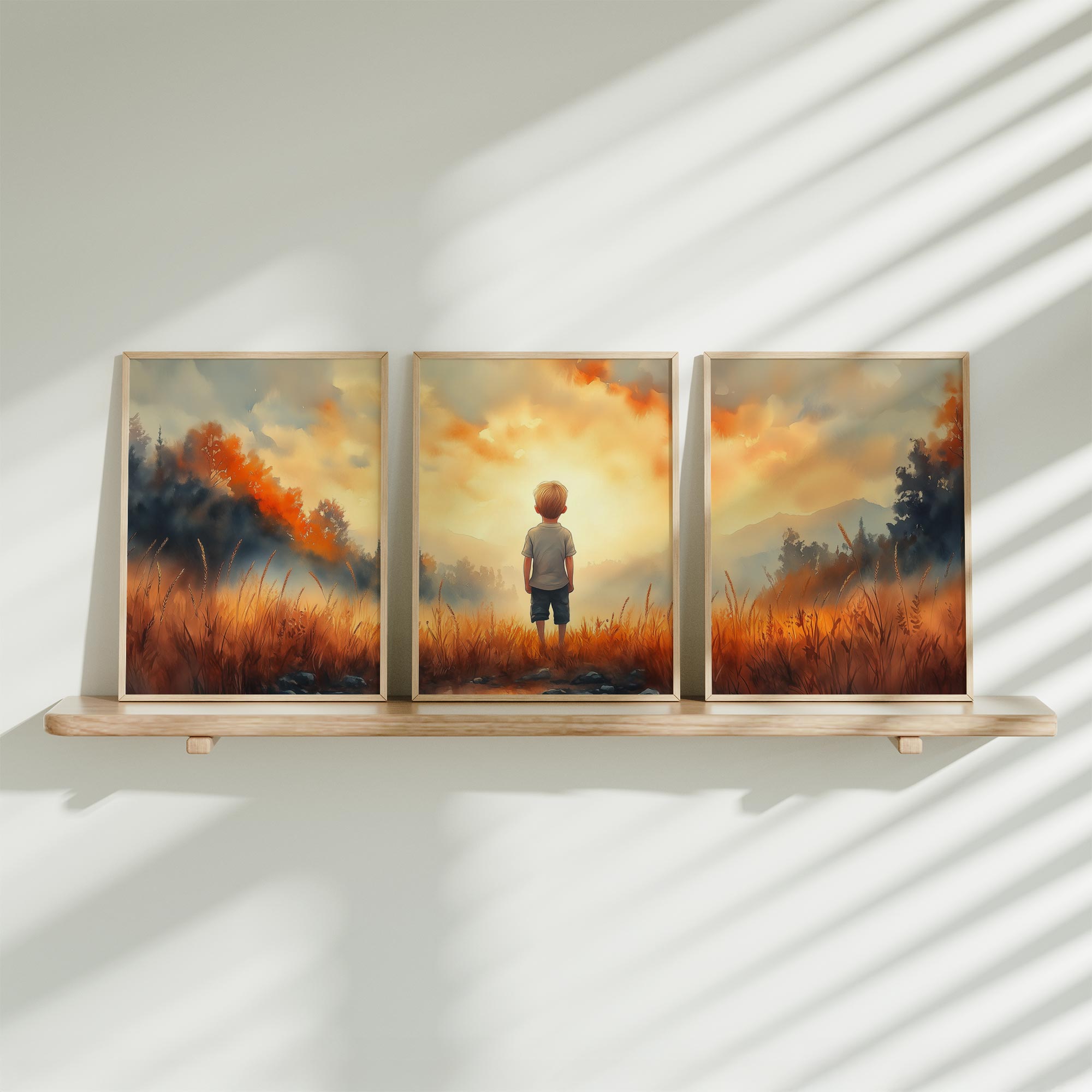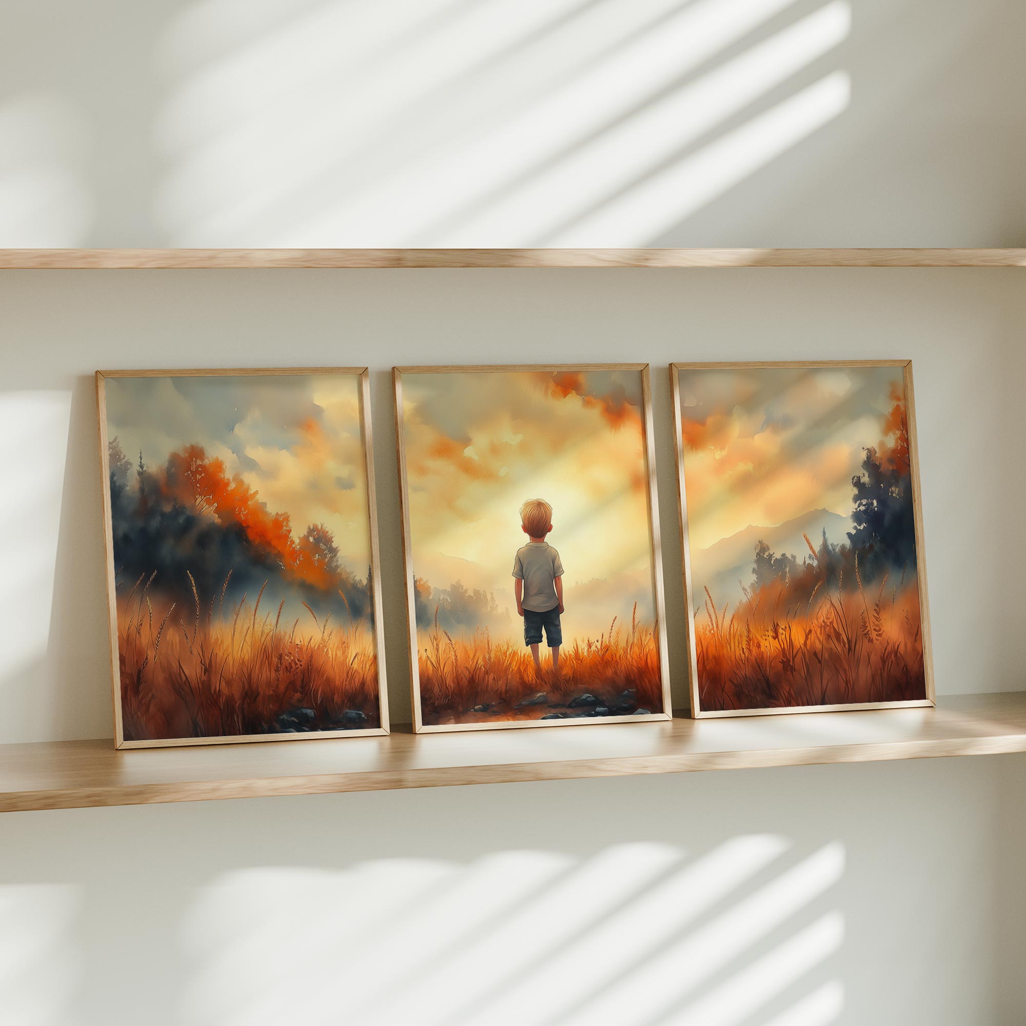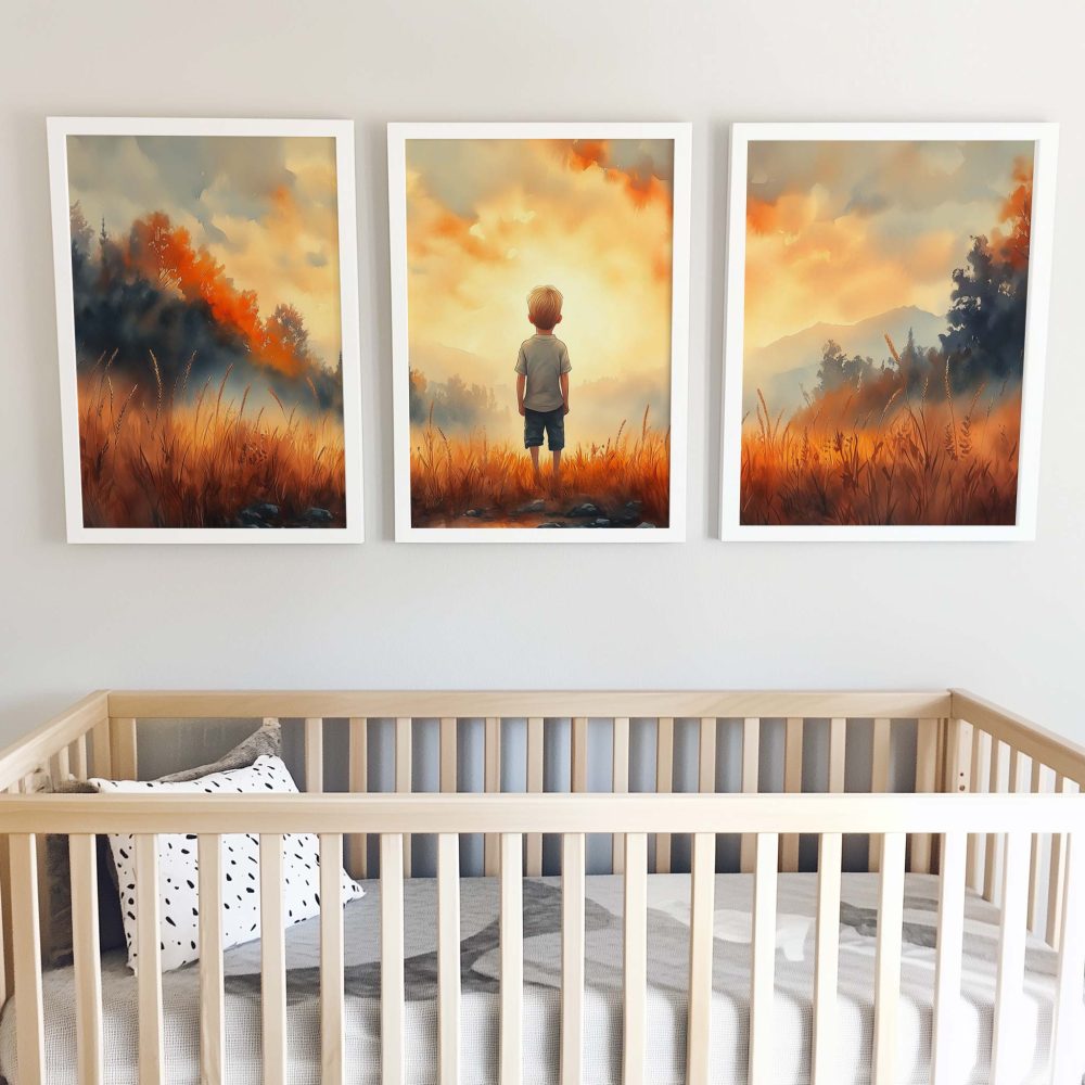 Terug naar collectie / Kinderkamer posters / Dromerige Jongen in Gouden Grasveld