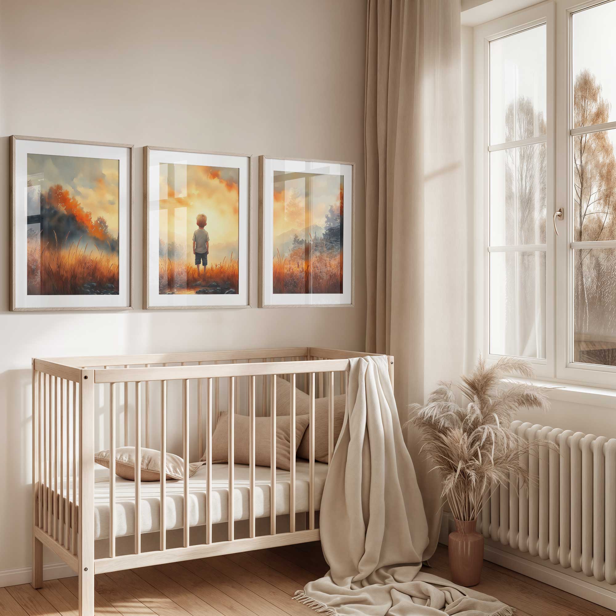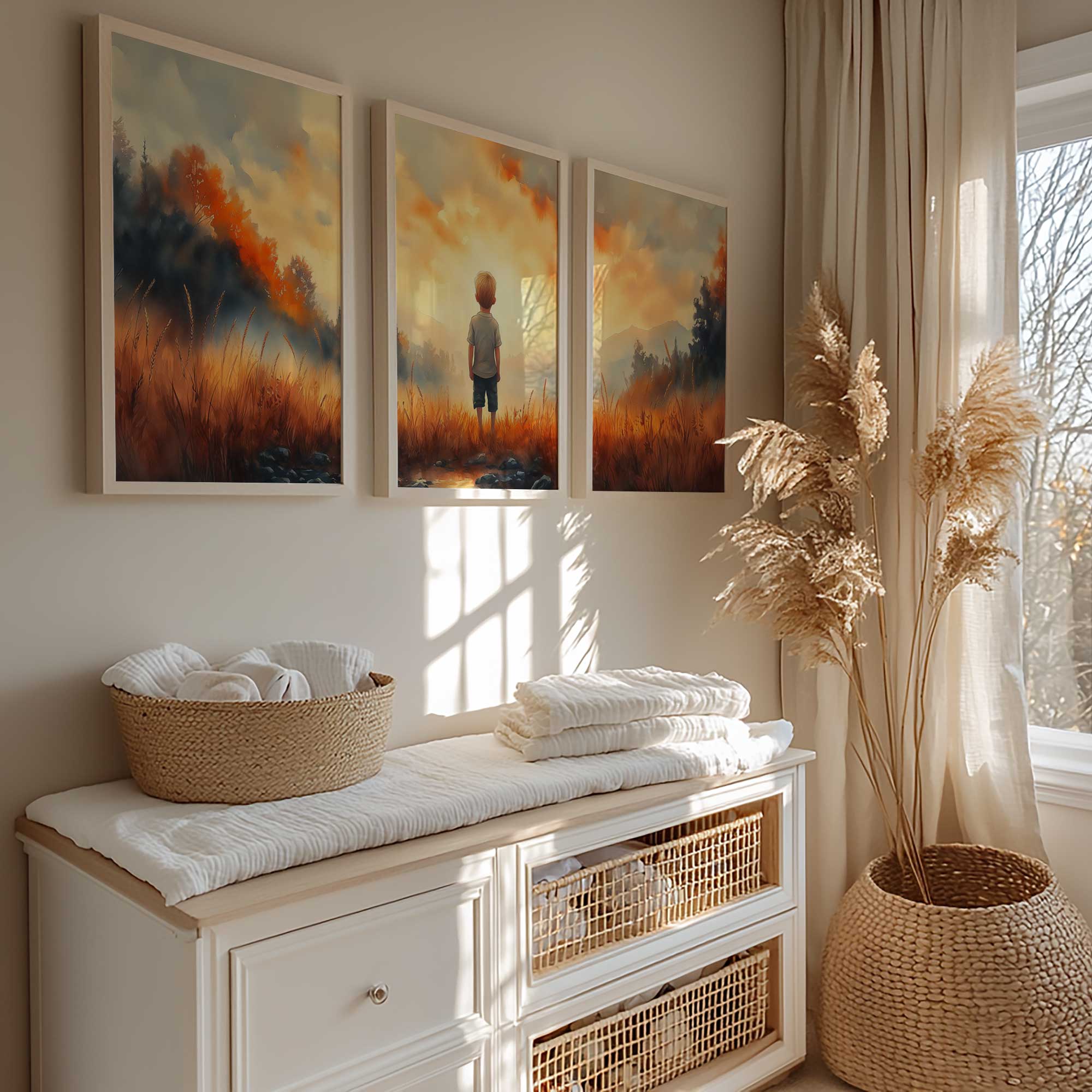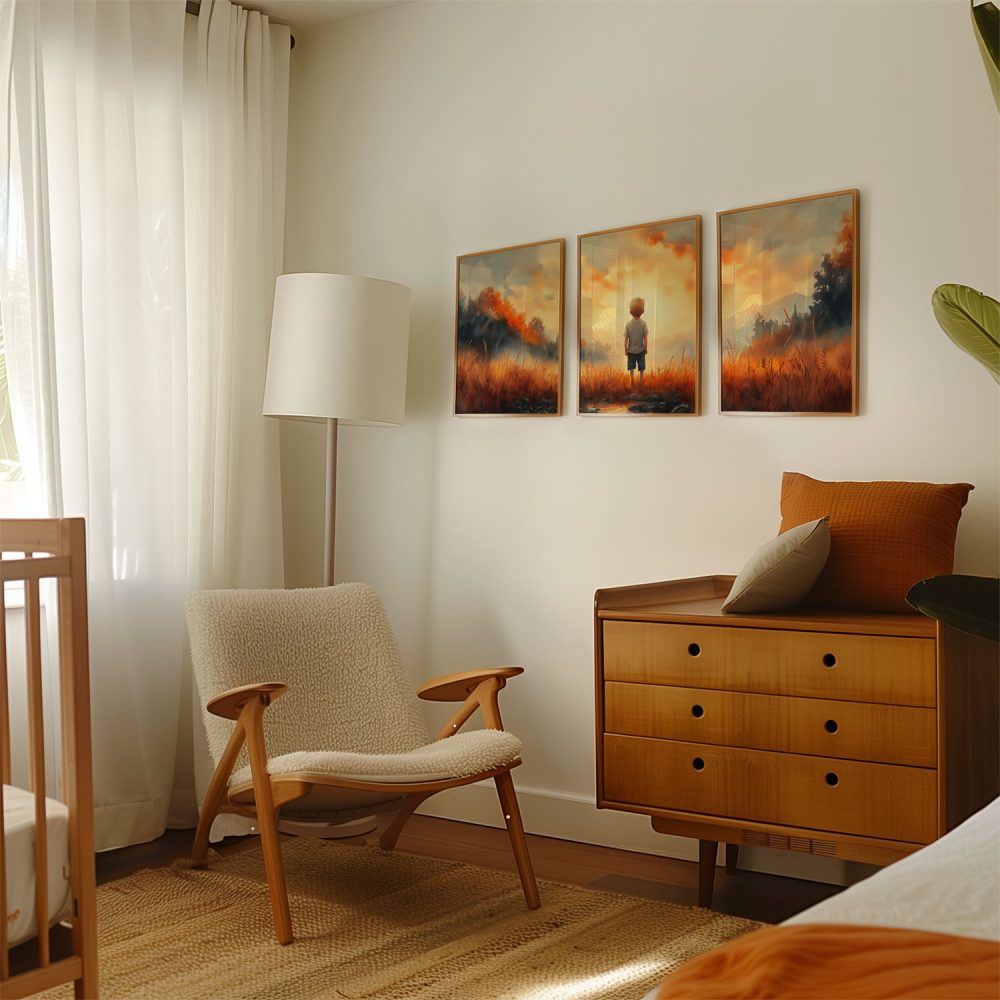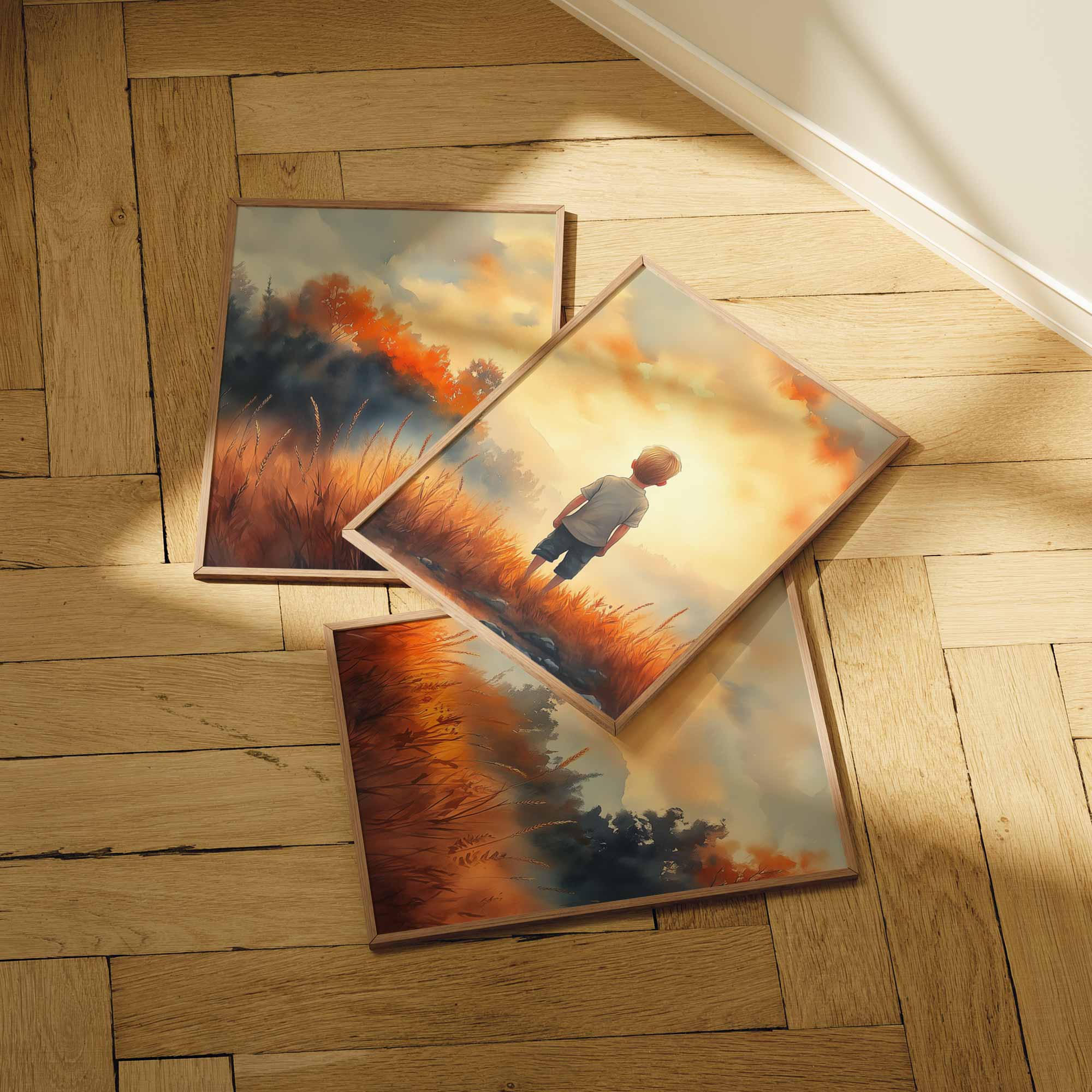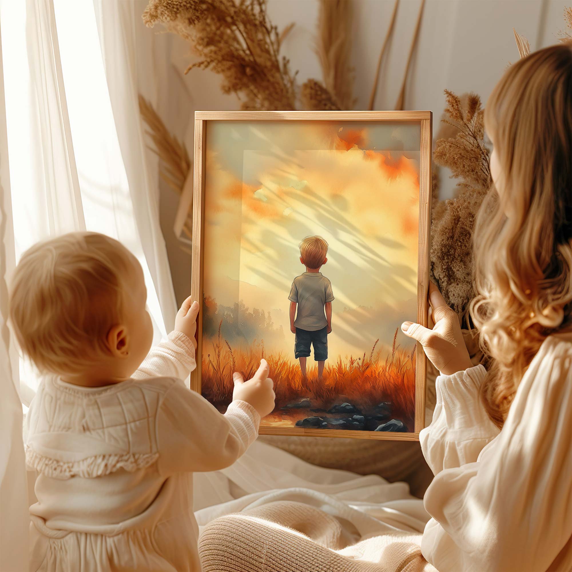 Terug naar collectie / Kinderkamer posters / Dromerige Jongen in Gouden Grasveld