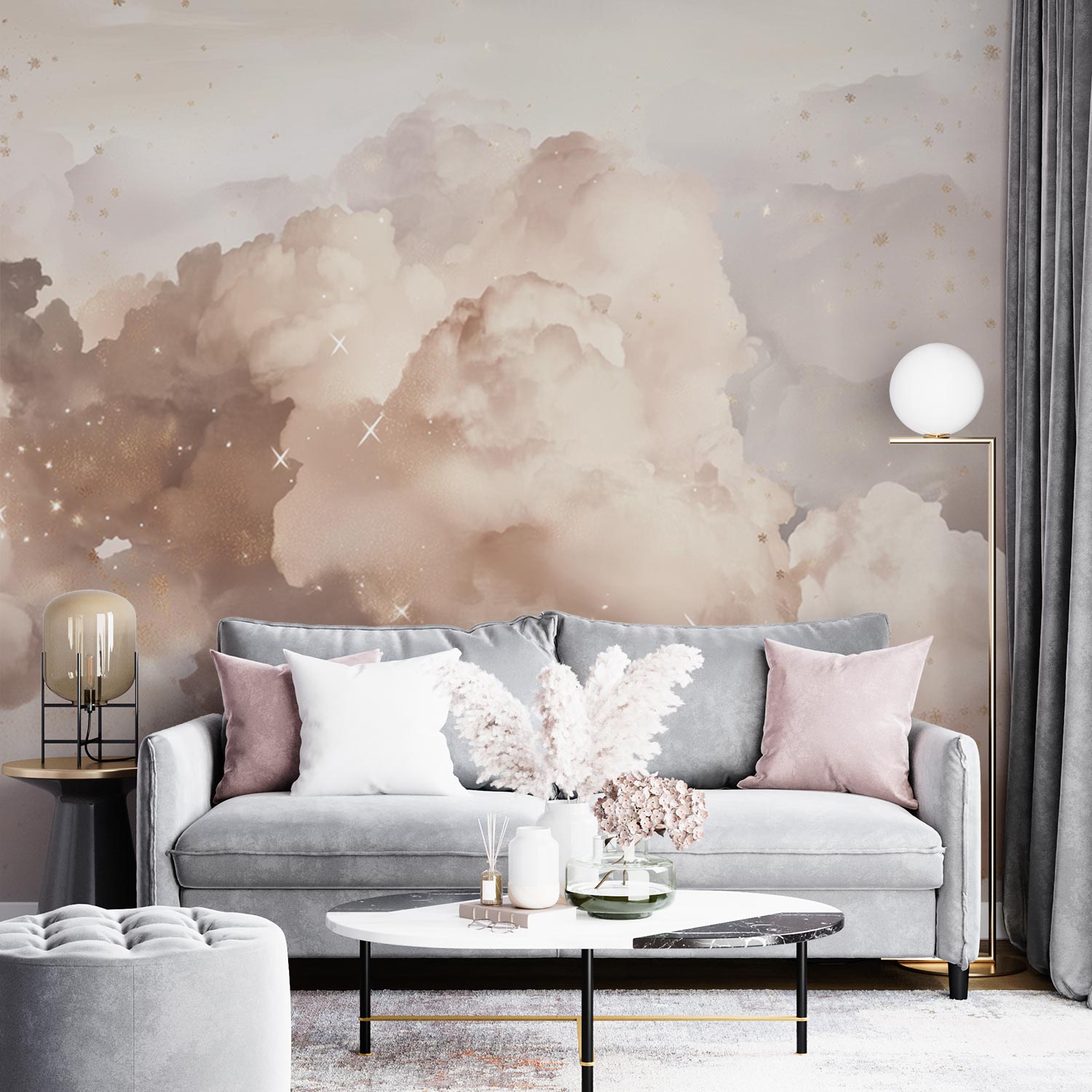 Terug naar collectie / Behang / Abstract behang / Dromerige Lichtbruine Wolkenhemel behang