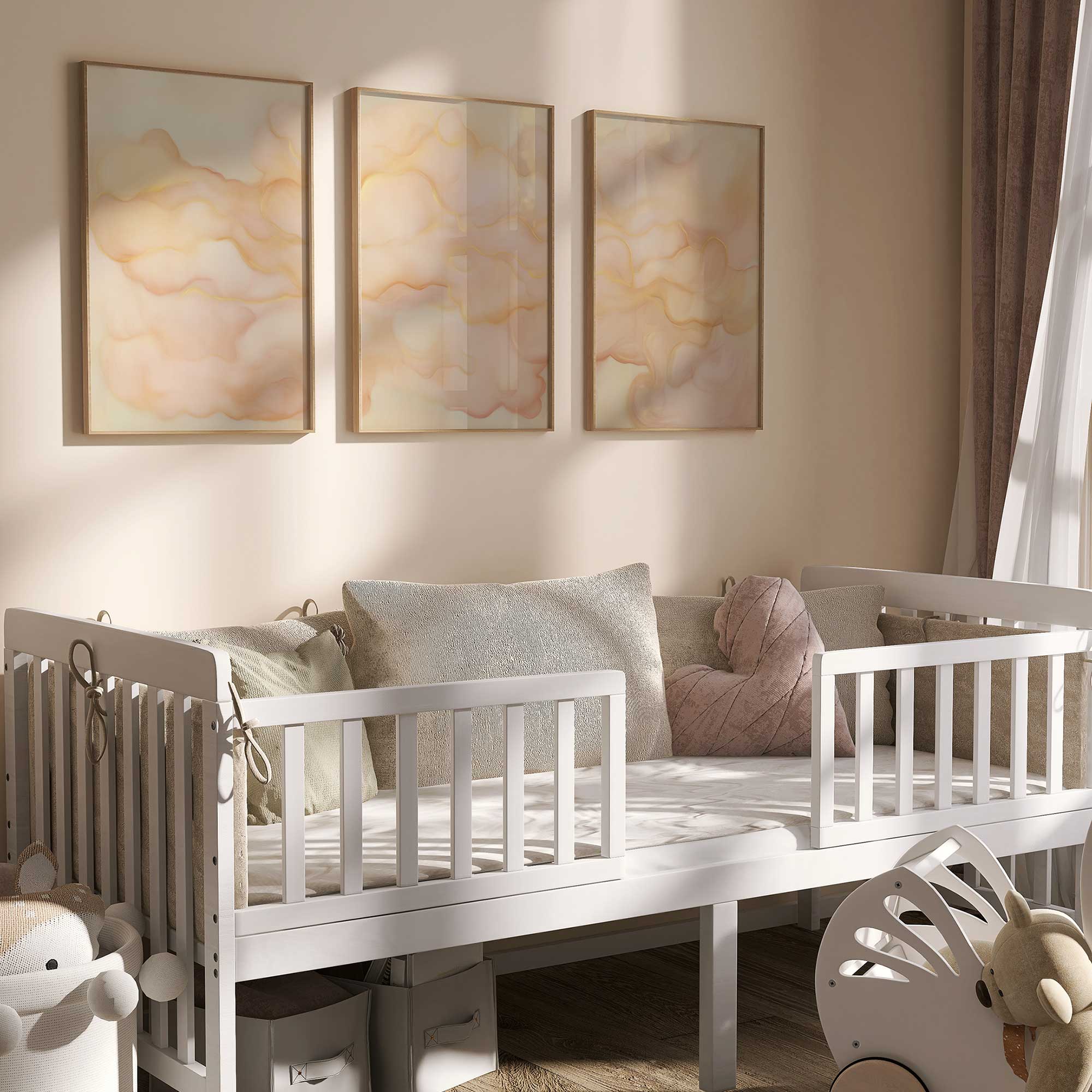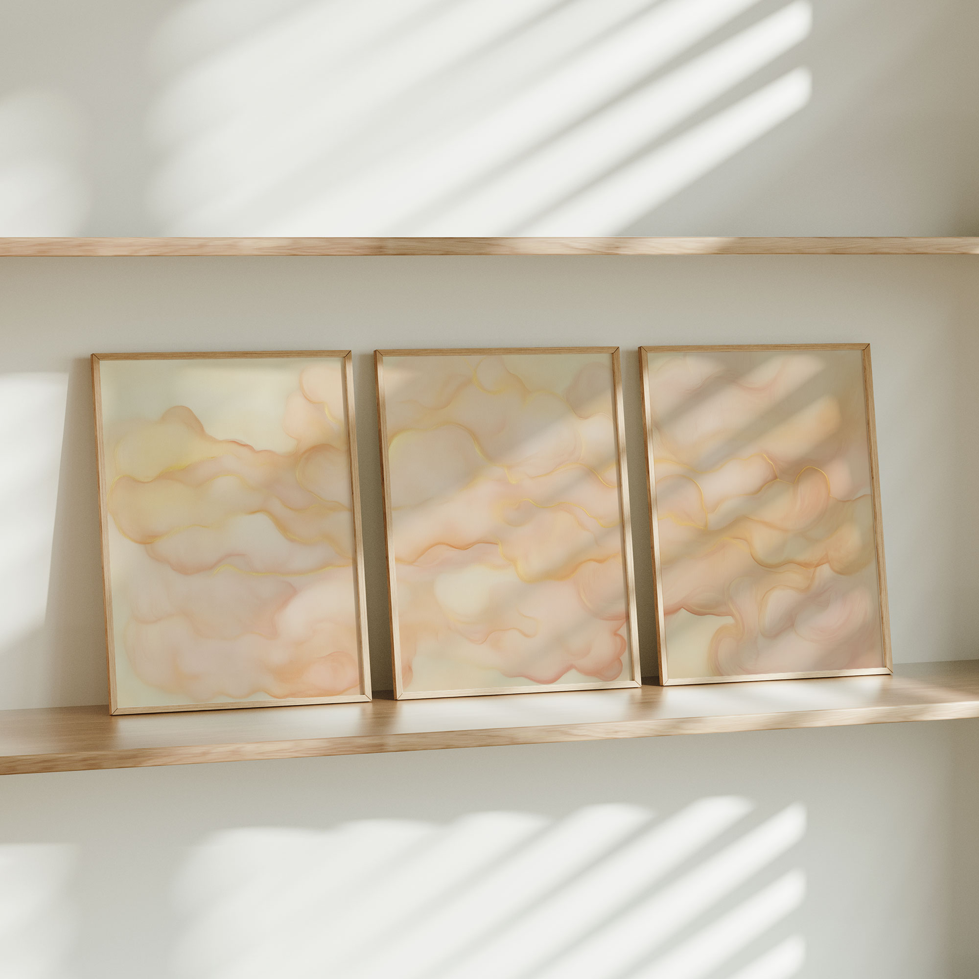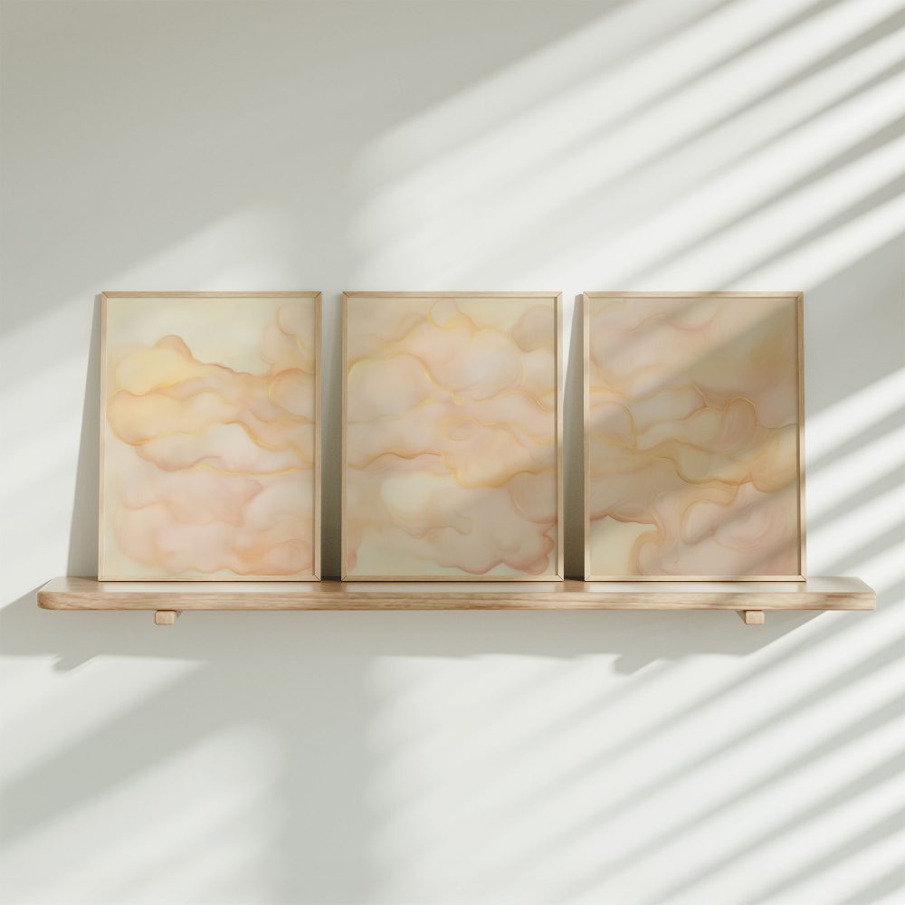 Terug naar collectie / Kinderkamer posters / Dromerige Pastel Wolken – Serene Abstracte Wanddecoratie