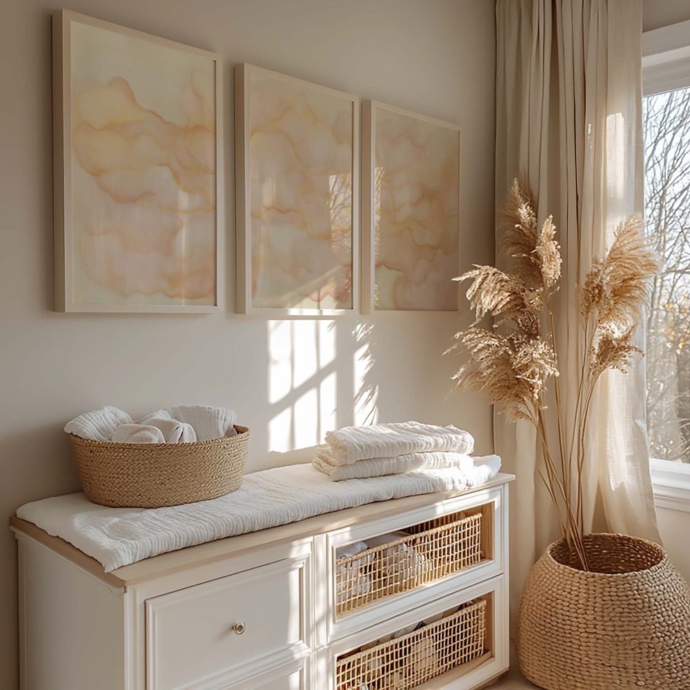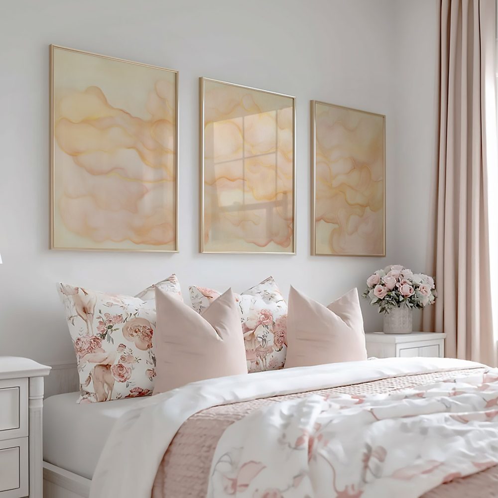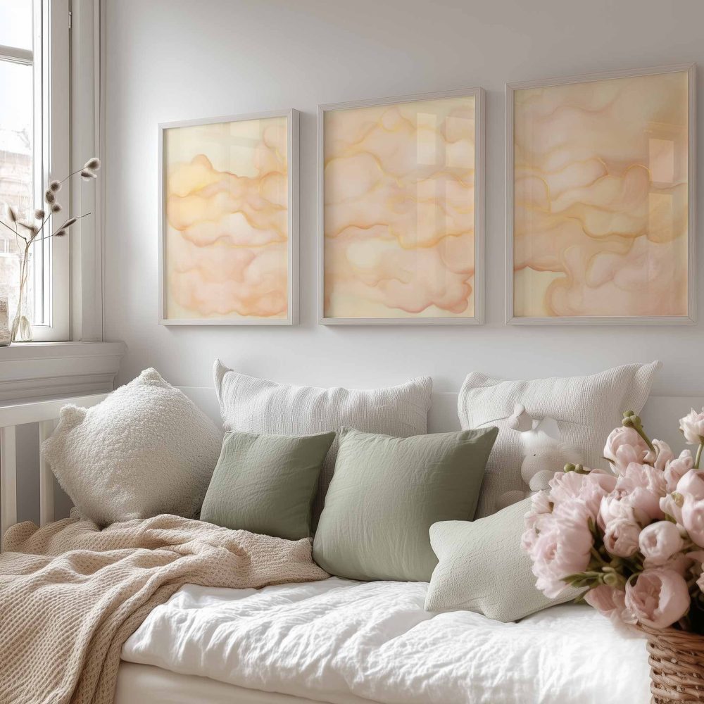 Terug naar collectie / Kinderkamer posters / Dromerige Pastel Wolken – Serene Abstracte Wanddecoratie