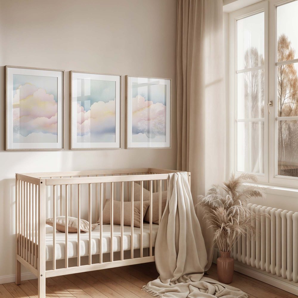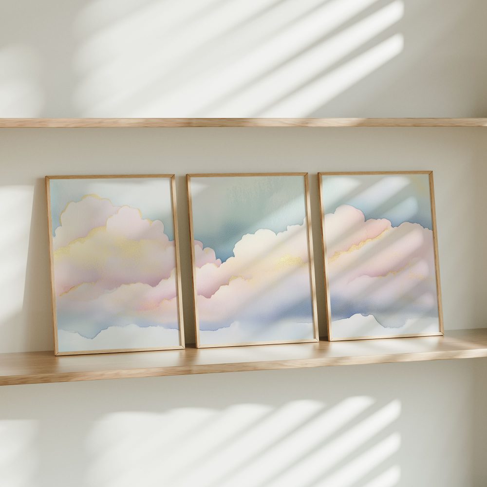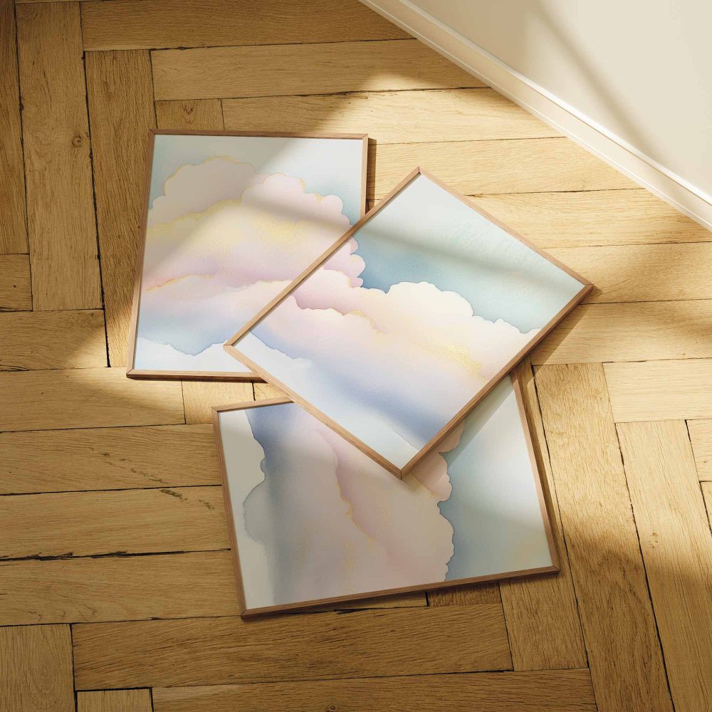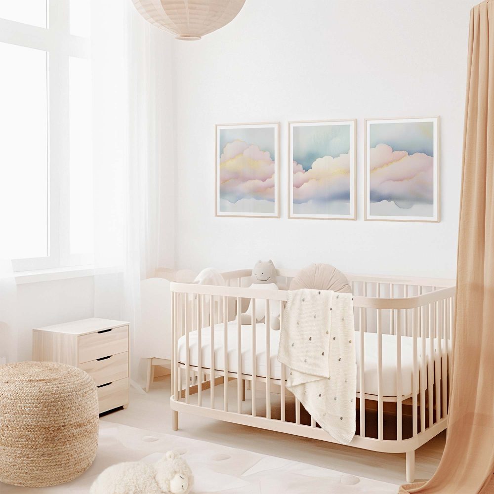 Terug naar collectie / Kinderkamer posters / Dromerige Pastel Wolken – Serene Sfeer voor Meisjes