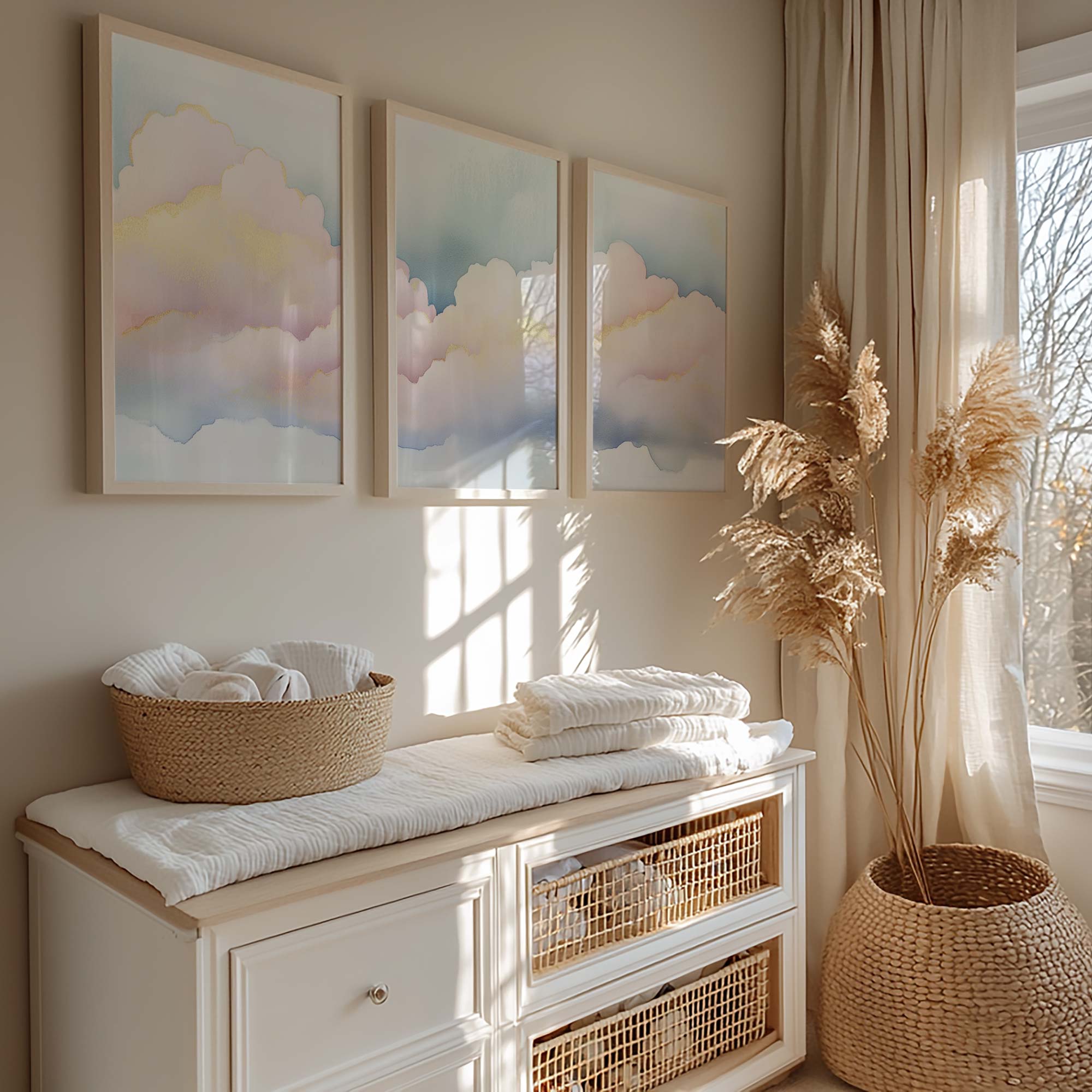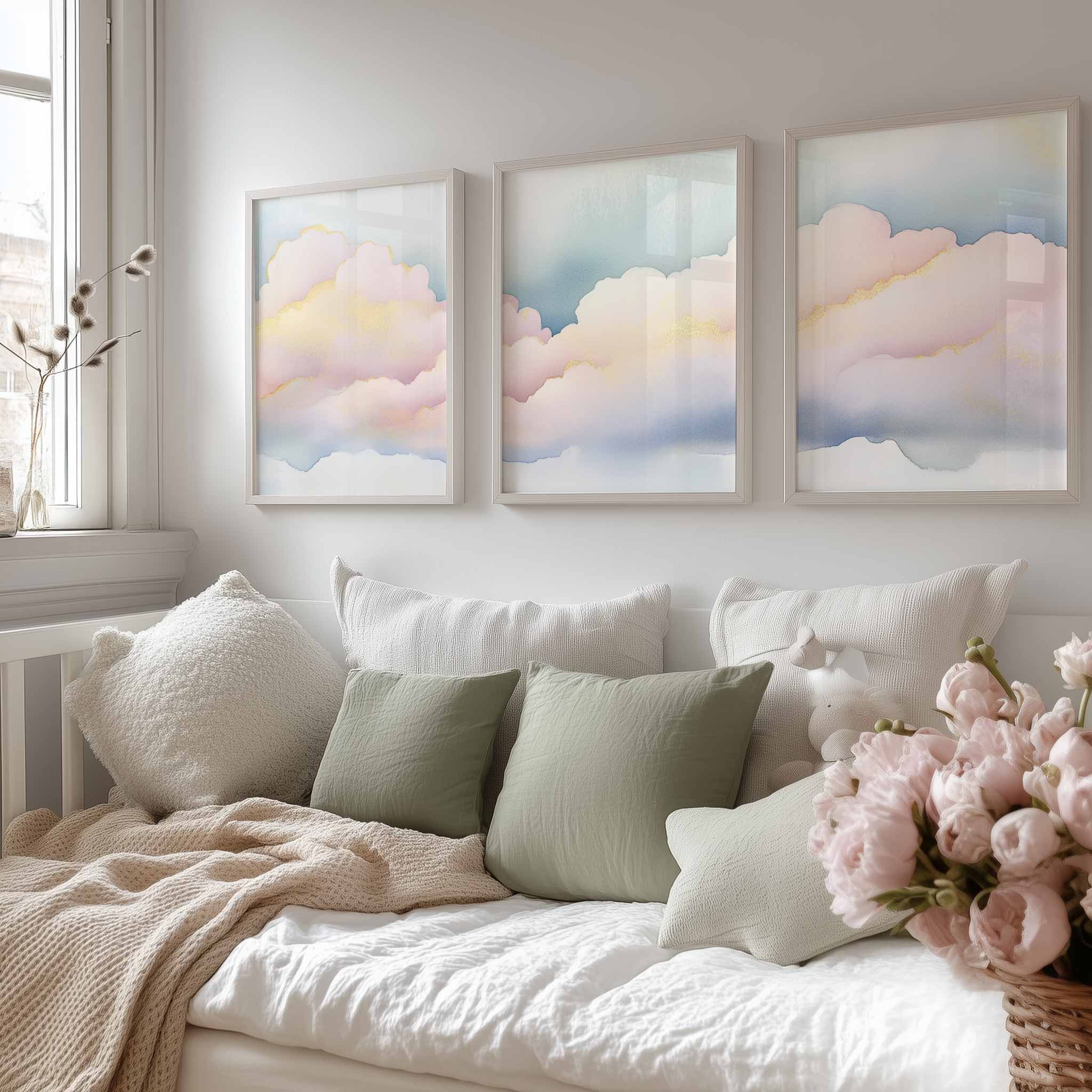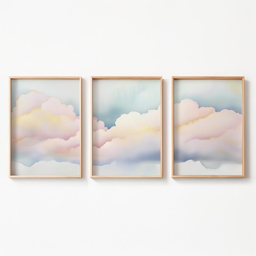 Terug naar collectie / Kinderkamer posters / Dromerige Pastel Wolken – Serene Sfeer voor Meisjes