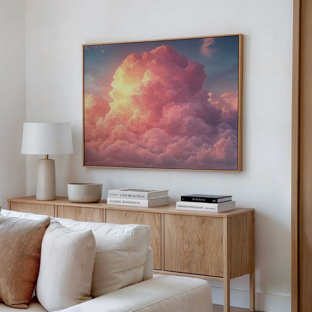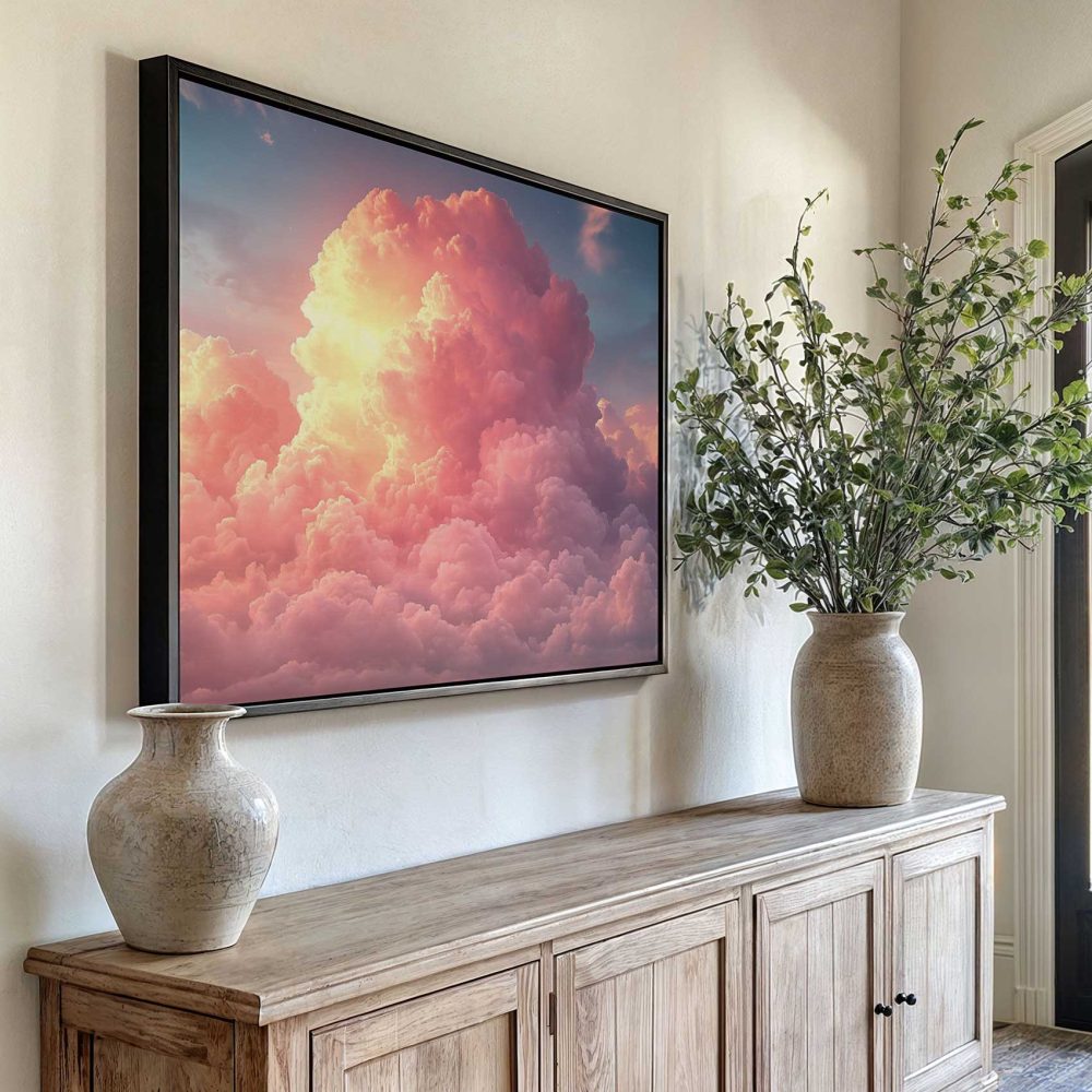 Terug naar collectie / Schilderijen / Abstract Schilderij / Dromerige roze-oranje wolkenlucht