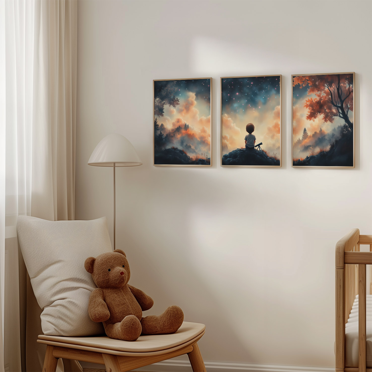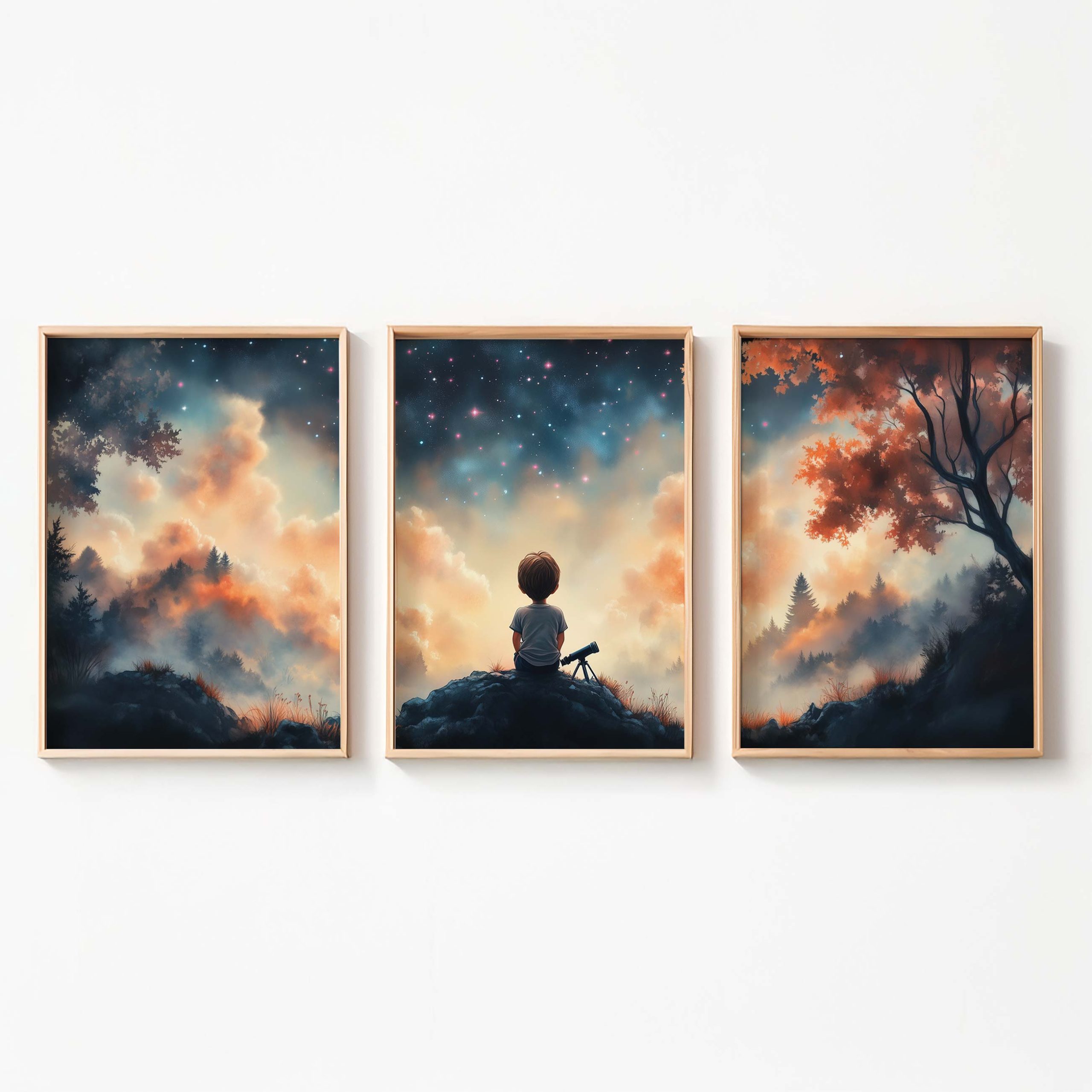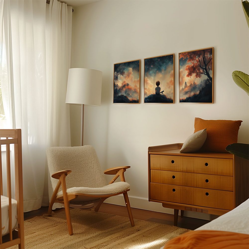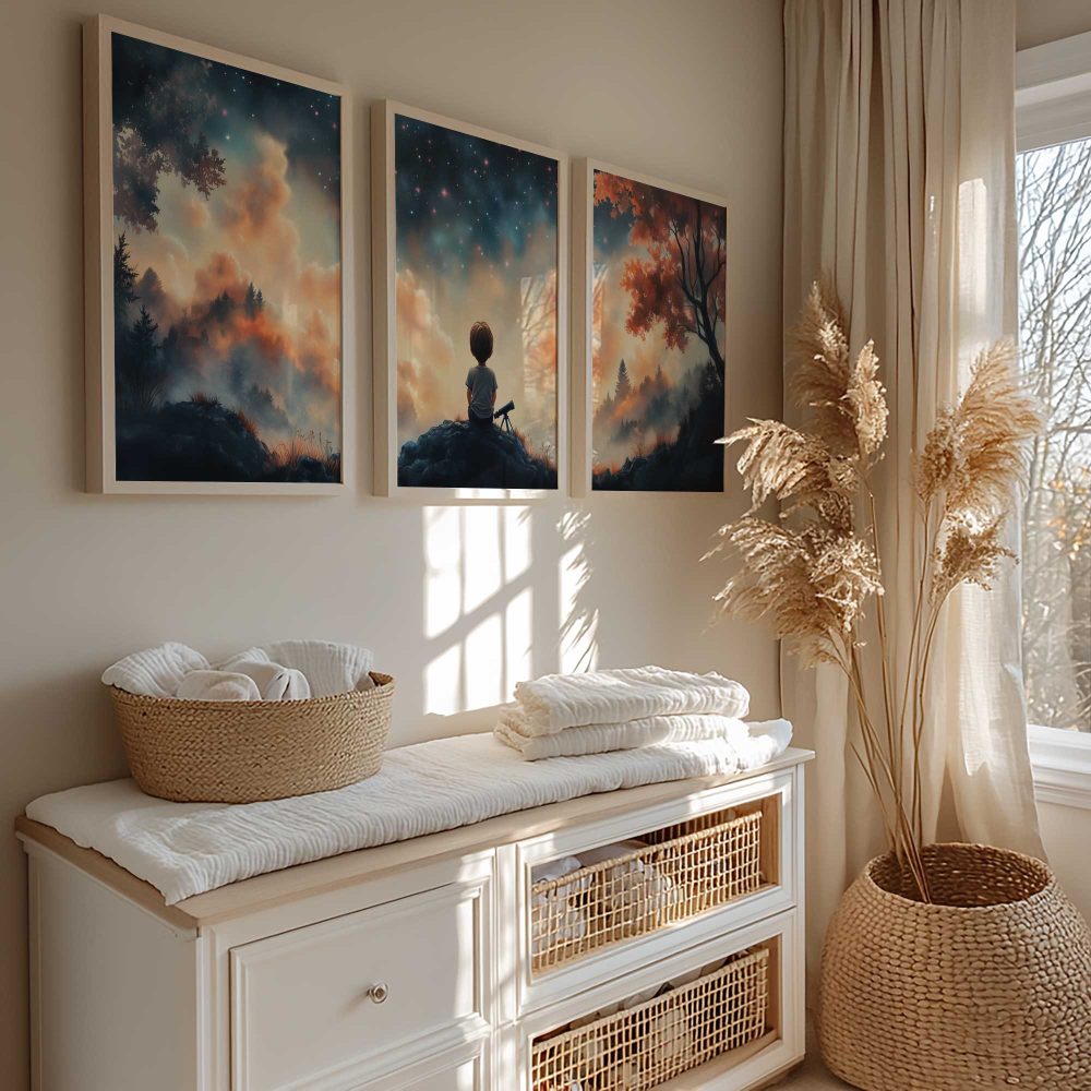Terug naar collectie / Kinderkamer posters / Avontuurlijk posters / Dromerige Sterrenkijker – Nachtelijke Avonturen aan de Hemel