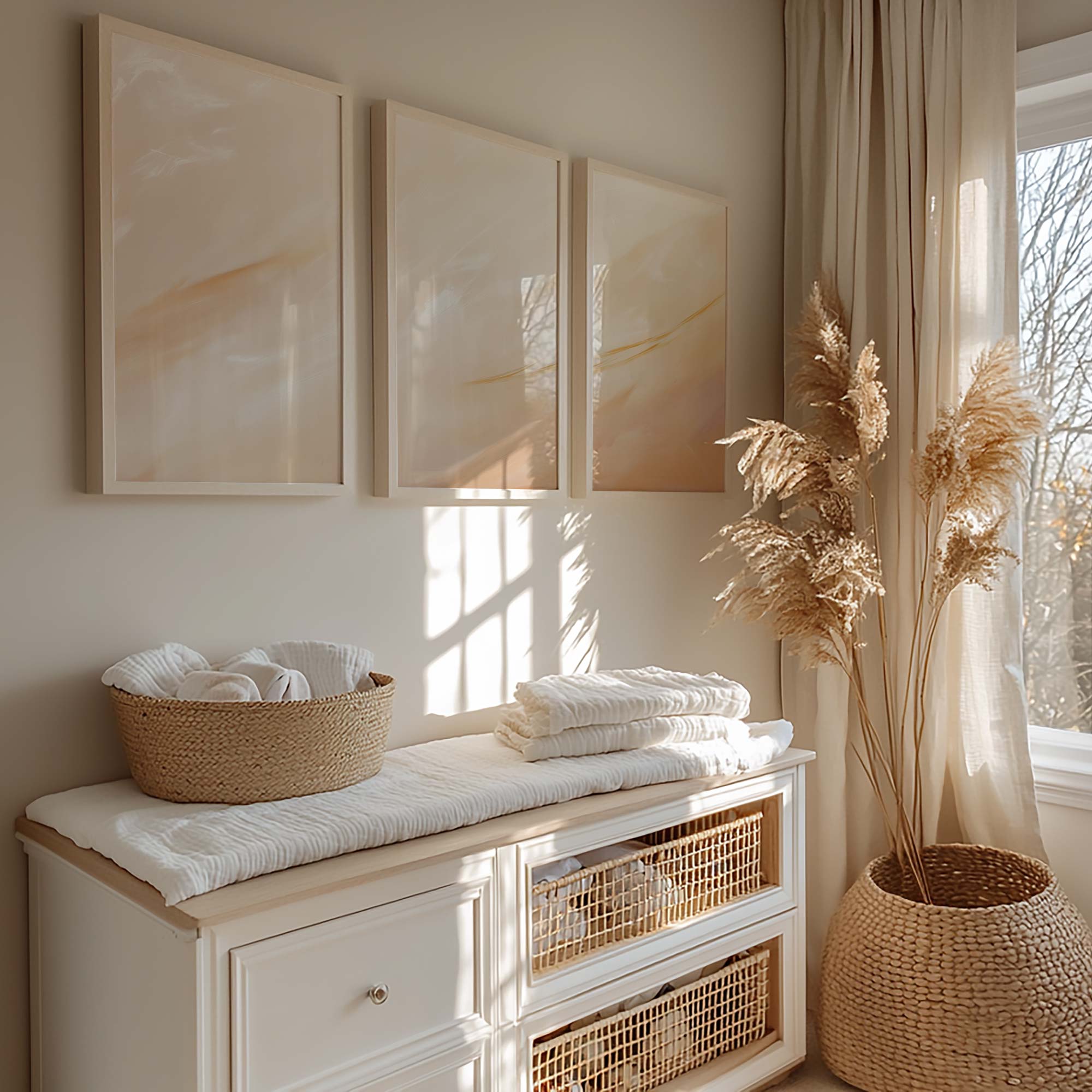Terug naar collectie / Kinderkamer posters / Dromerige tinten: Warme abstracte harmonie in perzik en wit