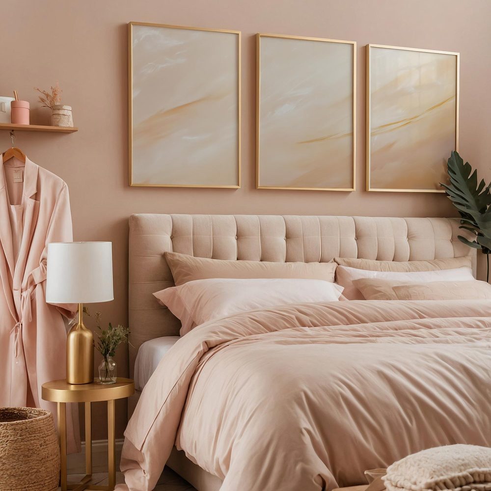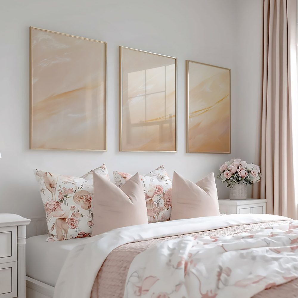 Dromerige tinten: Warme abstracte harmonie in perzik en wit