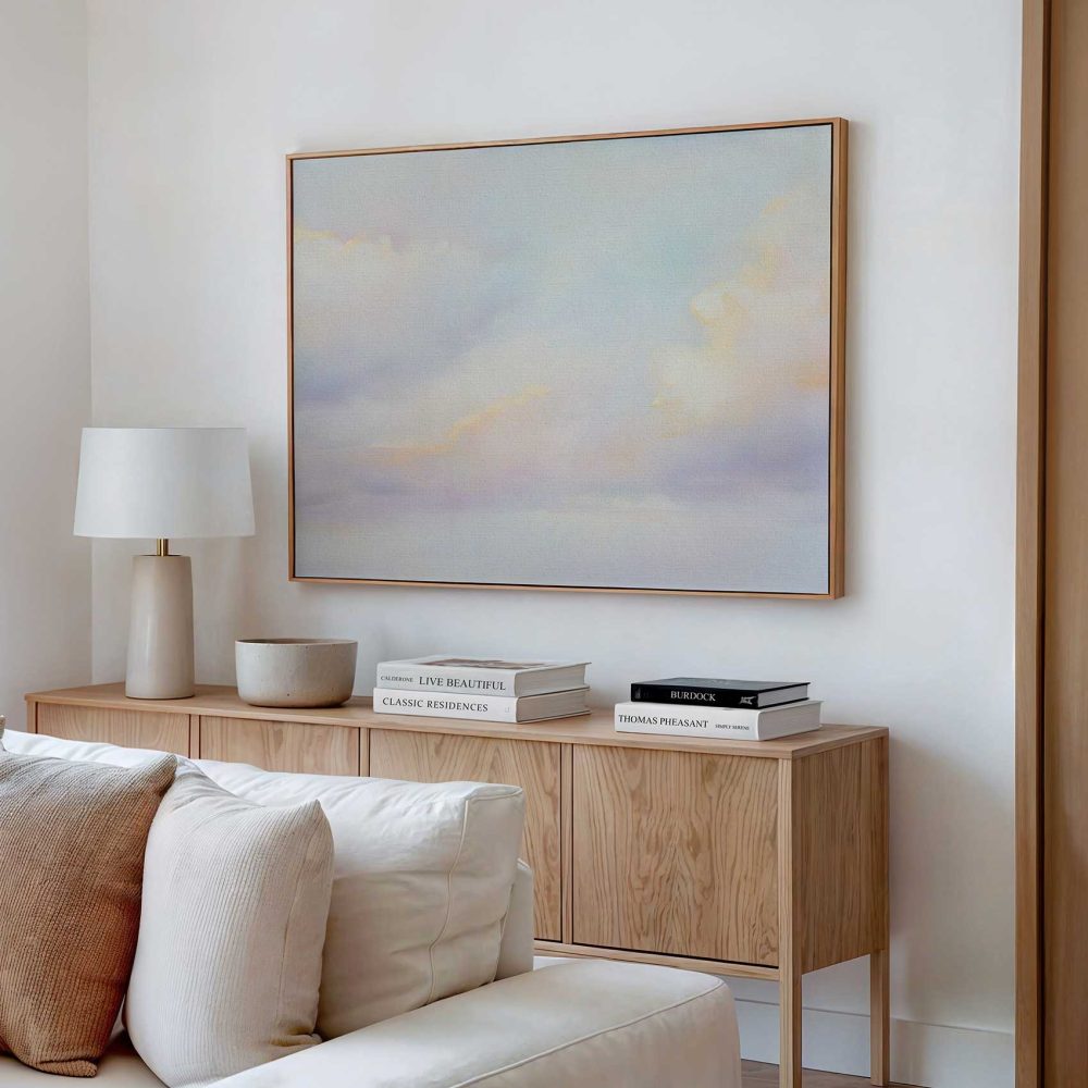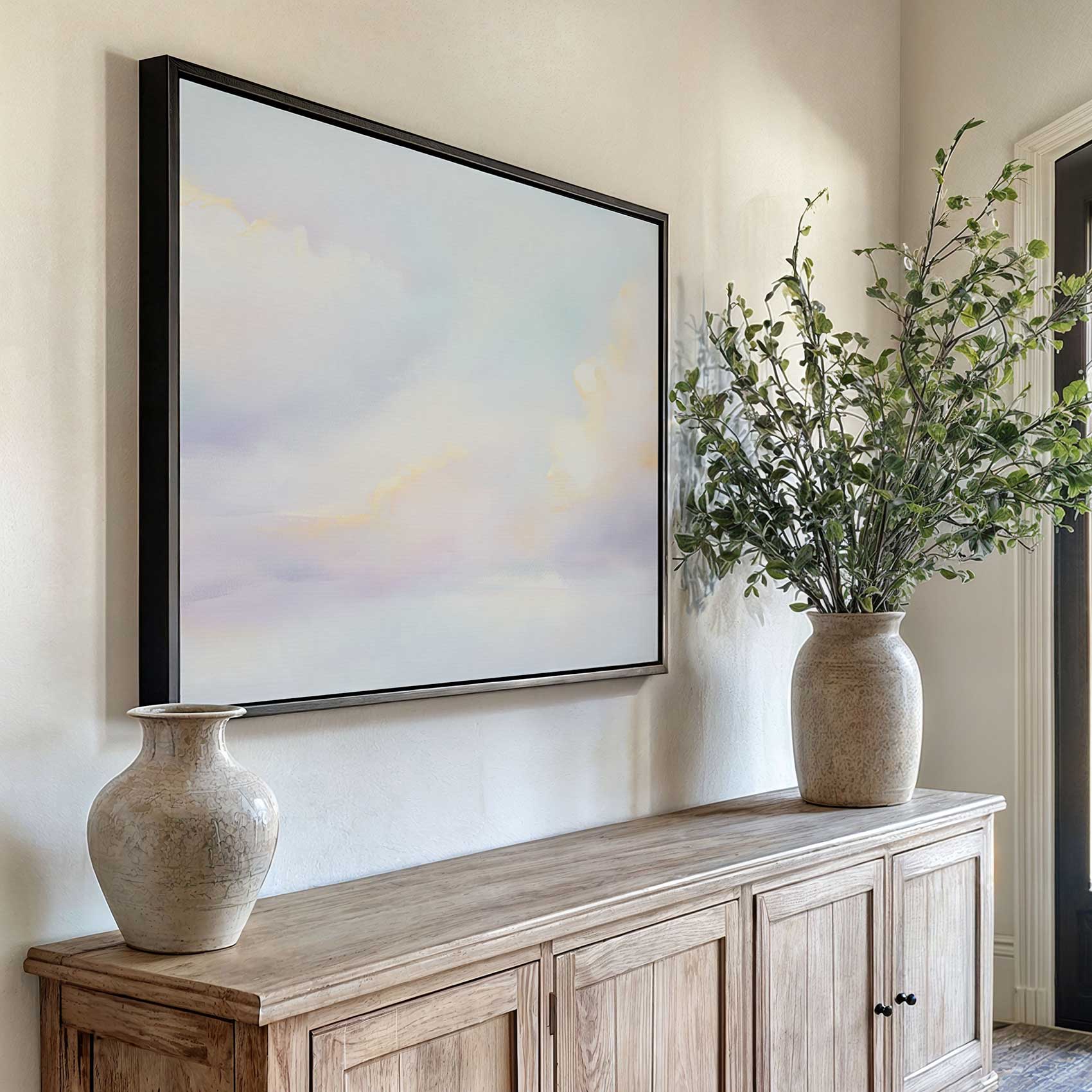 Terug naar collectie / Schilderijen / Abstract Schilderij / Dromerige watercolor wolkenlucht