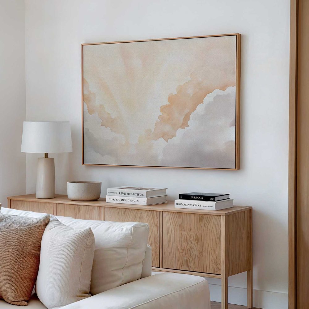Terug naar collectie / Schilderijen / Abstract Schilderij / Dromerige watercolor wolkenlucht