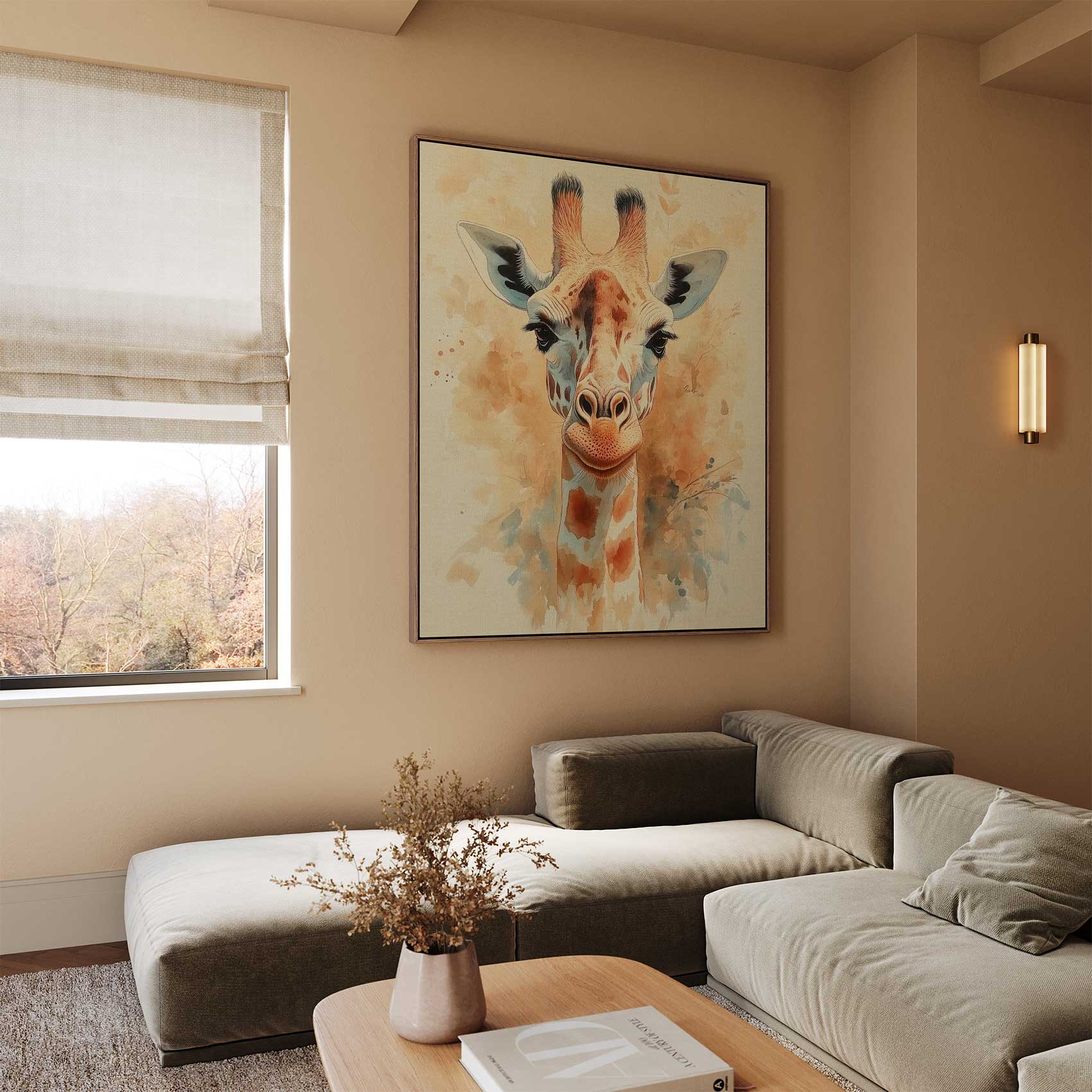Terug naar collectie / Schilderijen / Dieren Schilderij / Dromerige waterverfgiraf