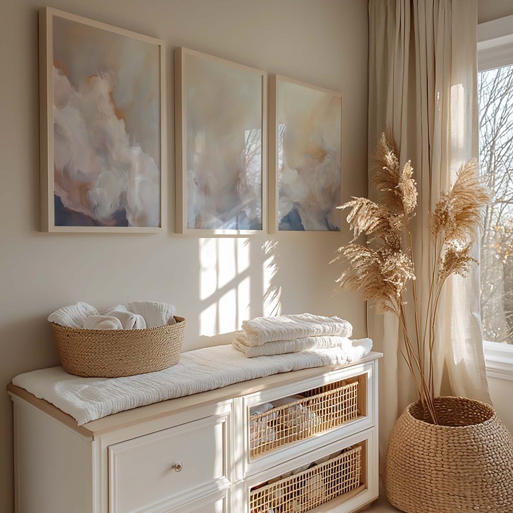 Terug naar collectie / Kinderkamer posters / Dromerige Wolken in Pastel – Serene Wanddecoratie