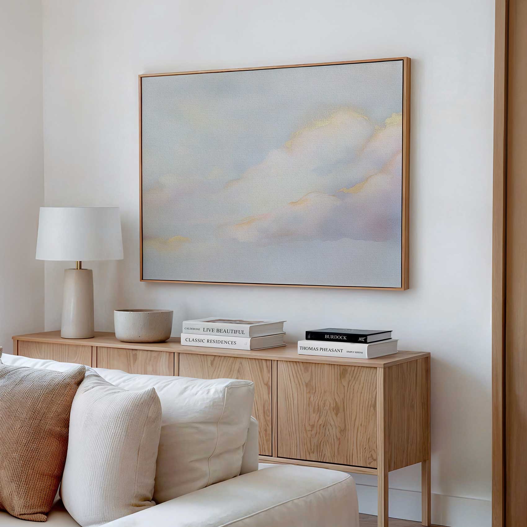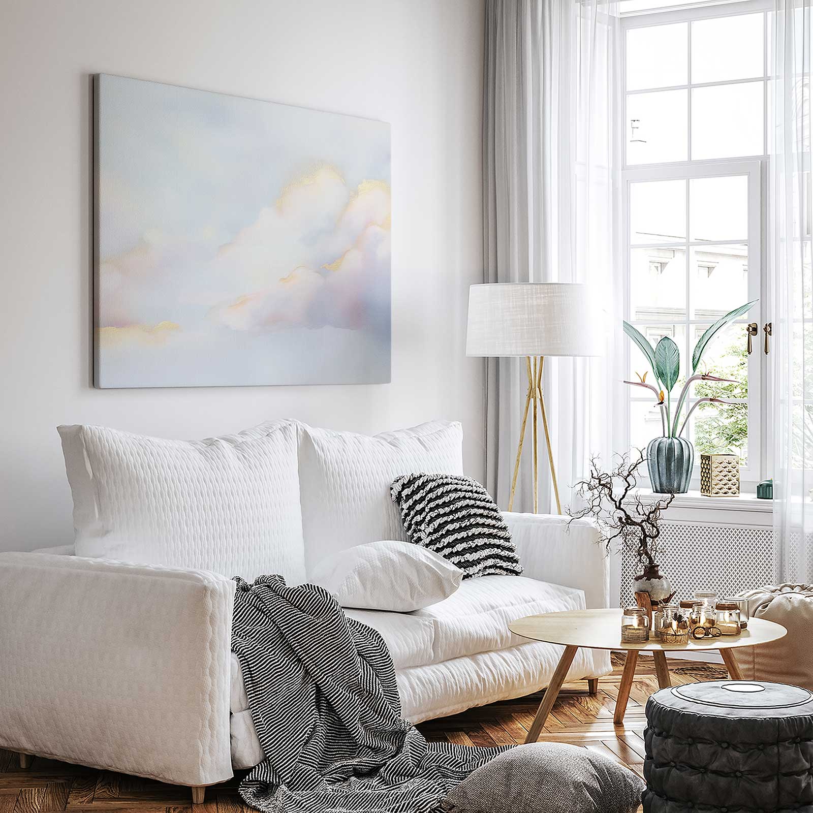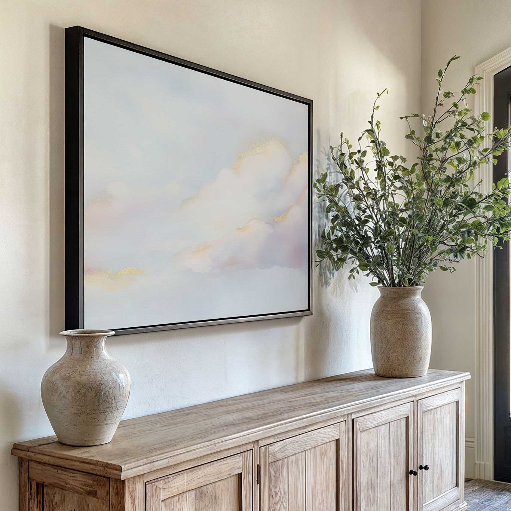 Terug naar collectie / Schilderijen / Abstract Schilderij / Dromige pastelwolkenhemel