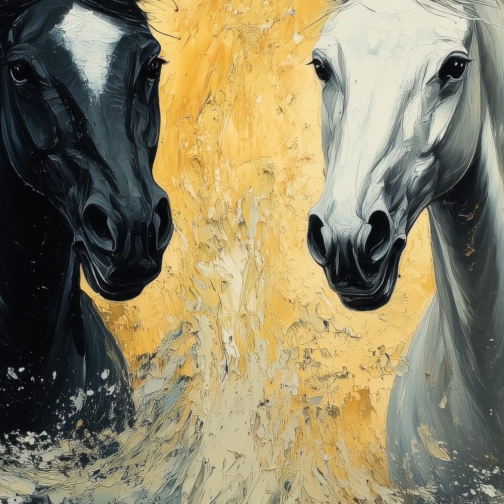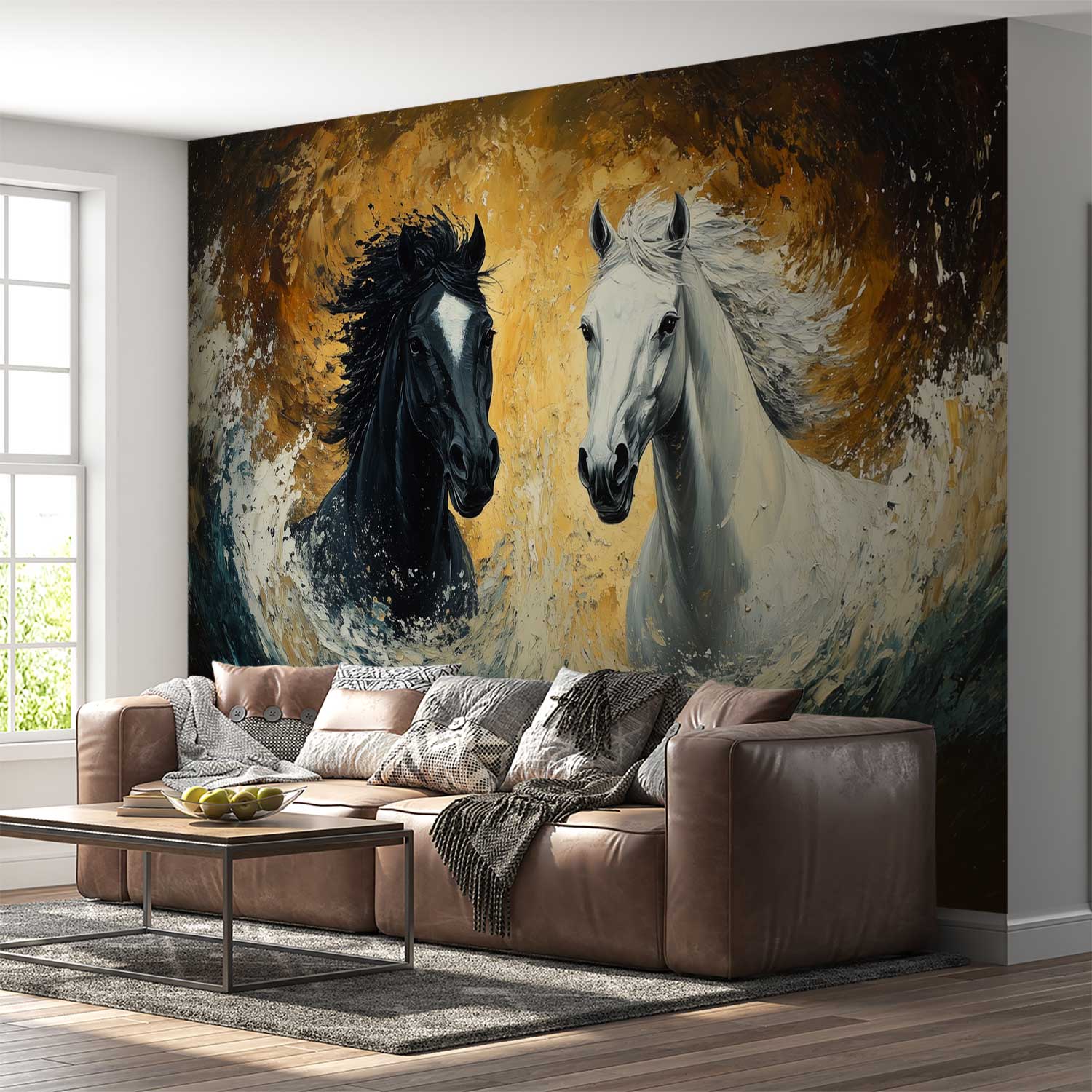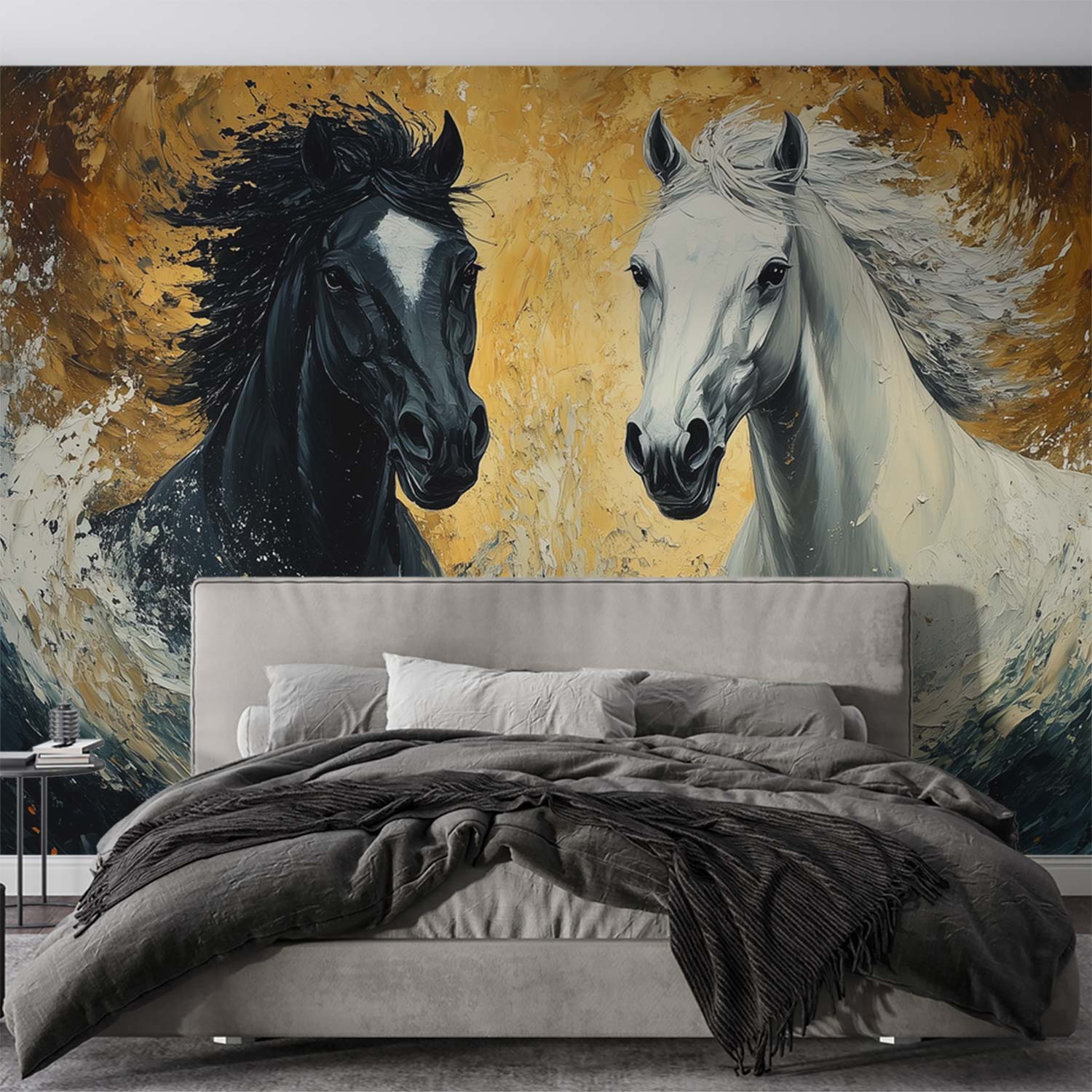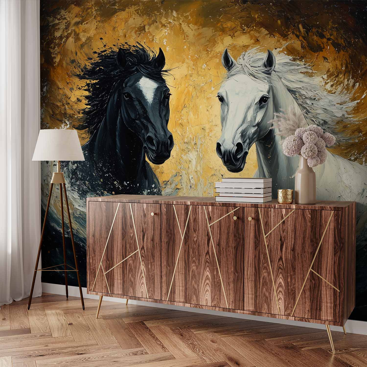 Terug naar collectie / Behang / Abstract behang / Dynamisch Paardenduo Schilderij behang
