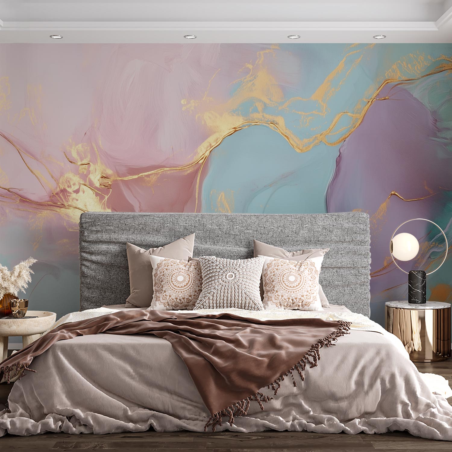 U ontvangt een staal van 15 × 20 cm op Variovlies behang, met dezelfde print en structuur als het uiteindelijke product. Zo kunt u thuis rustig beoordelen of het ontwerp goed past.