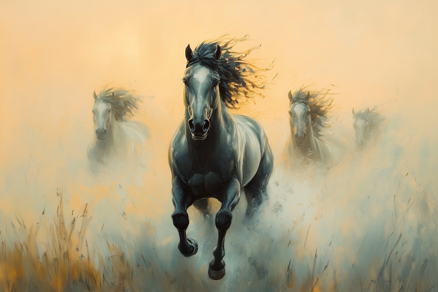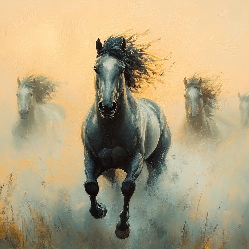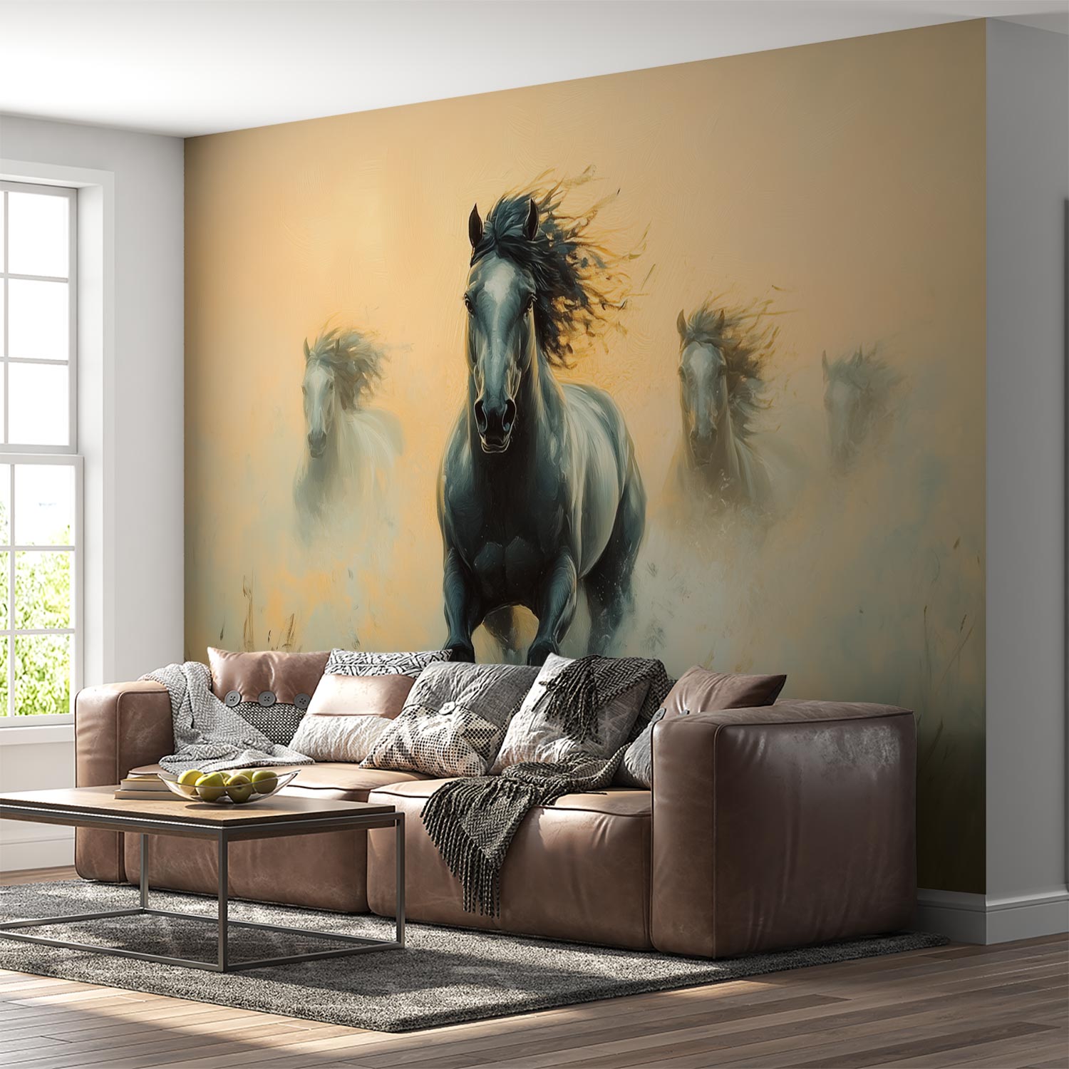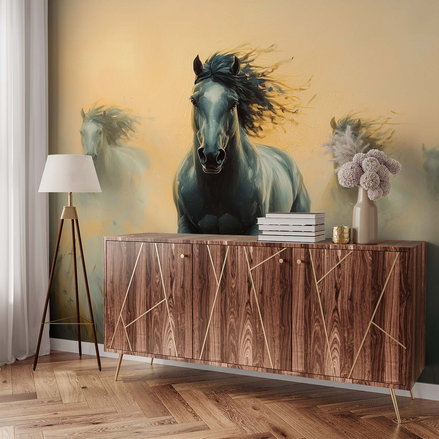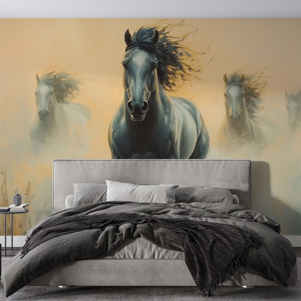 Terug naar collectie / Behang / Dynamische galopperende paarden behang
