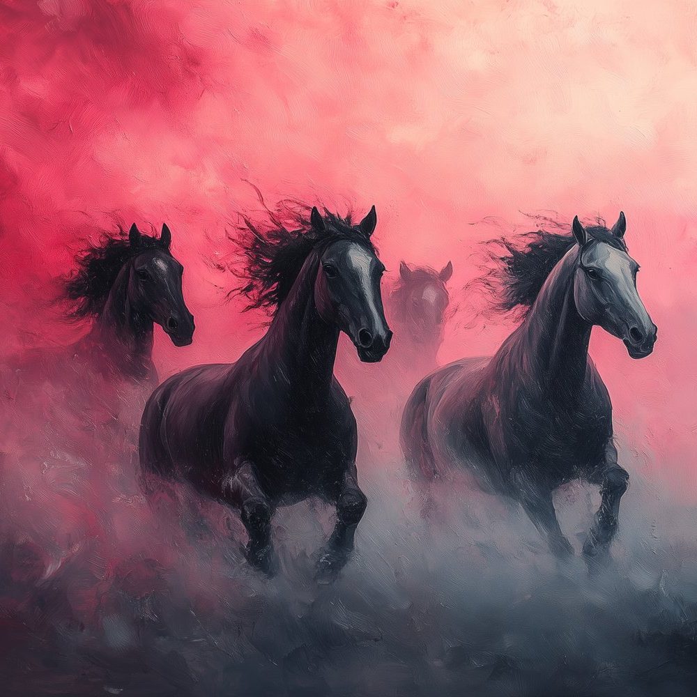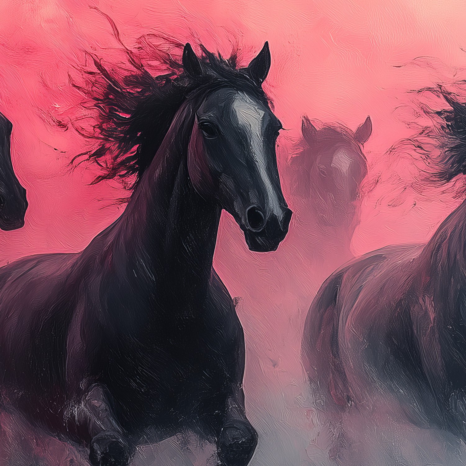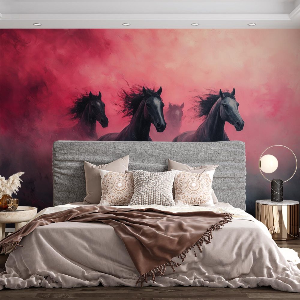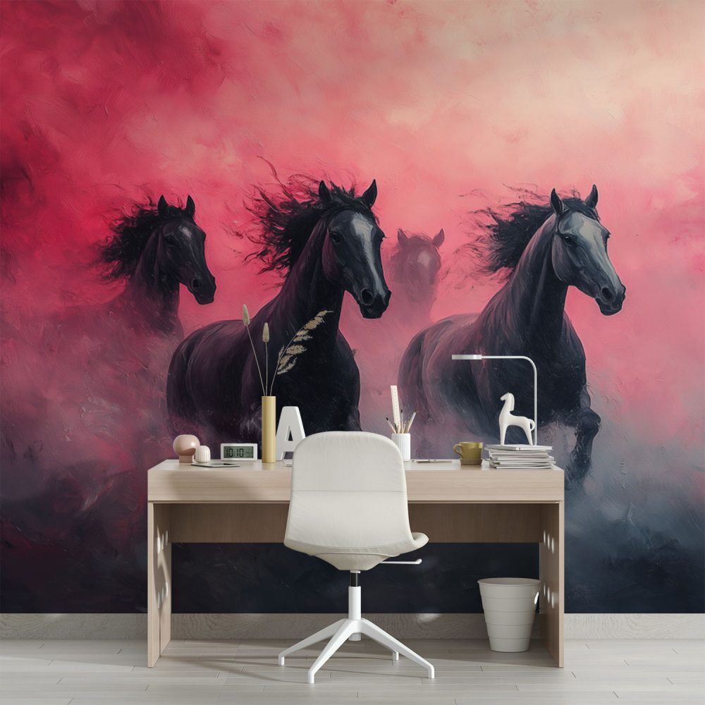 Dynamische galopperende zwarte paarden behang