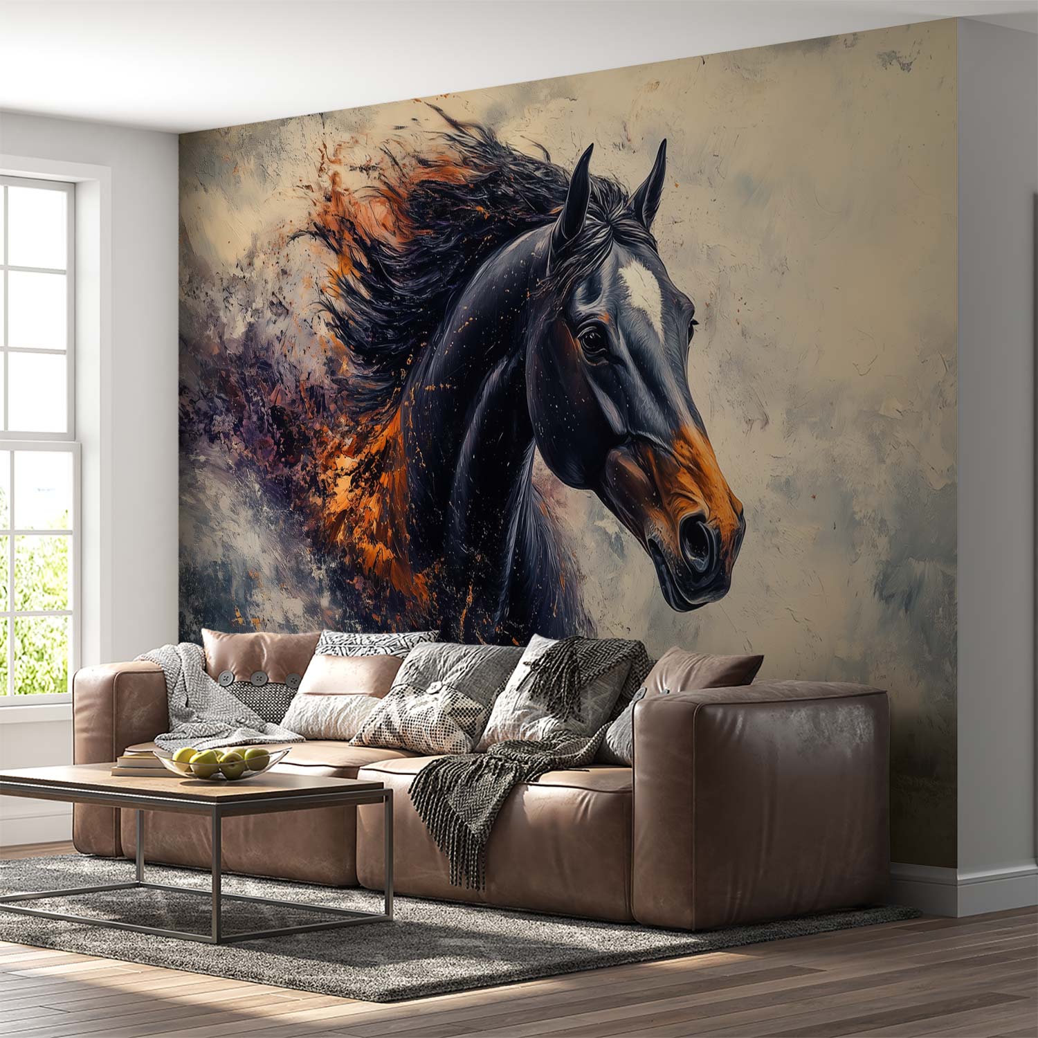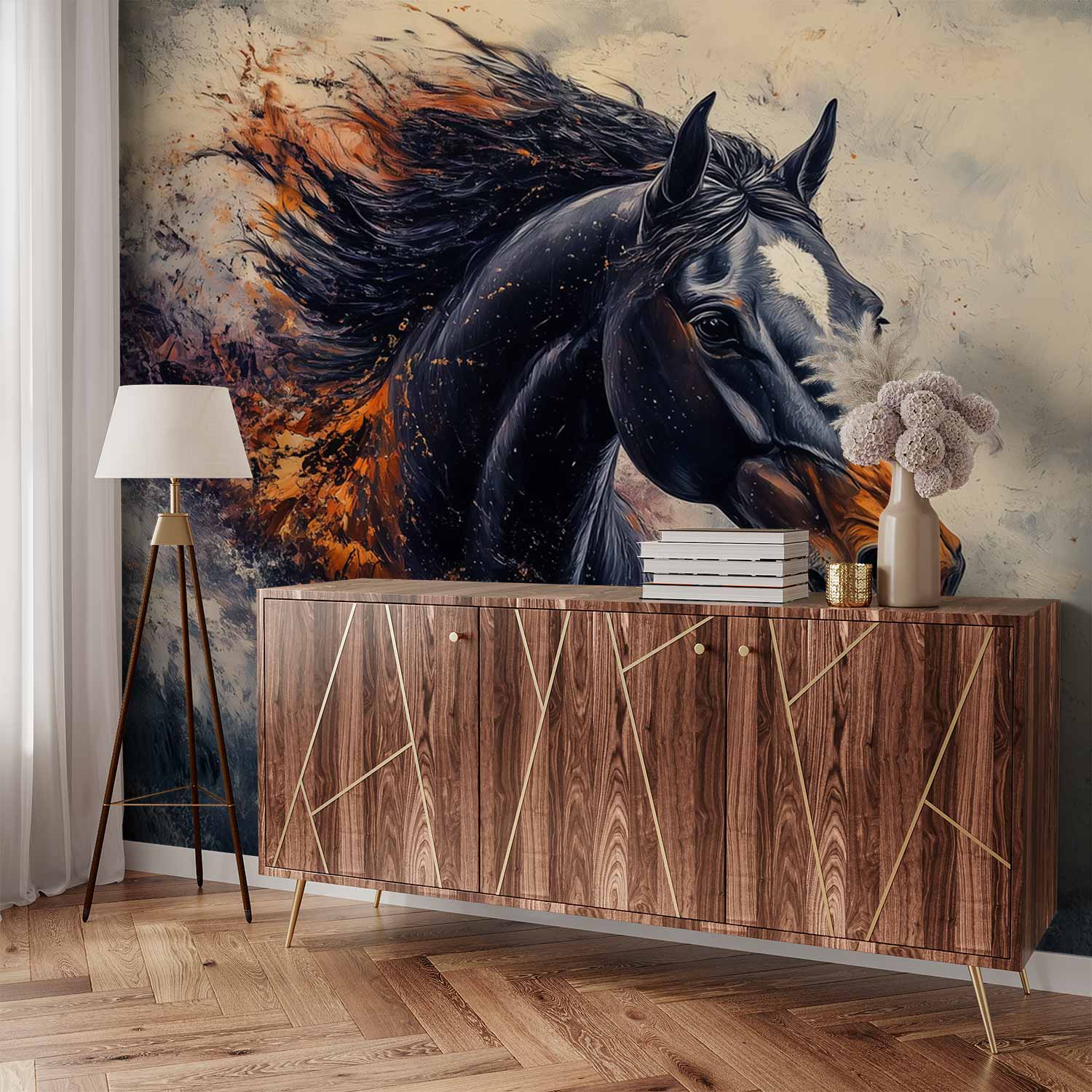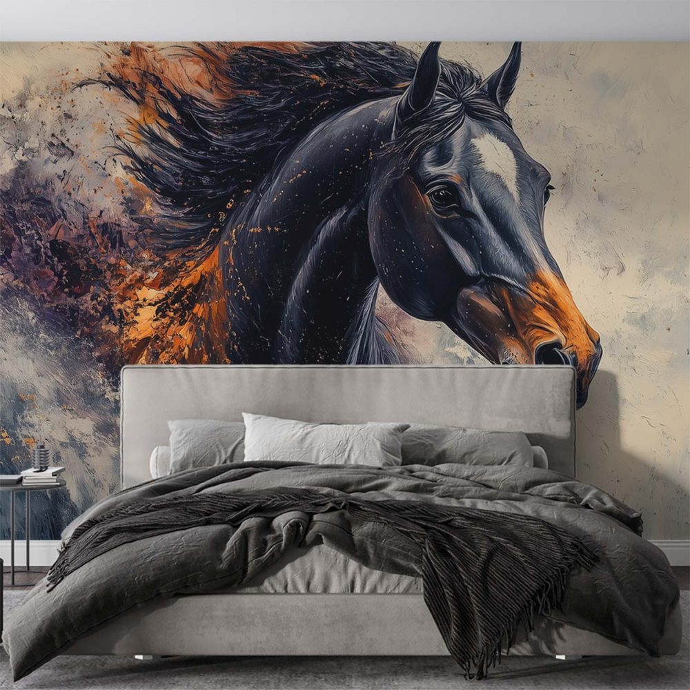 Dynamische oranje paardensprong behang