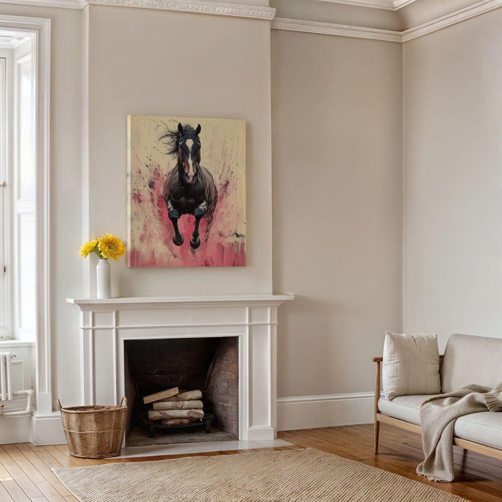 Terug naar collectie / Schilderijen / Abstract Schilderij / Dynamische paardenren in roze