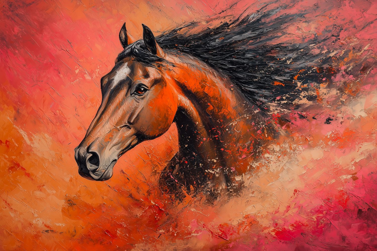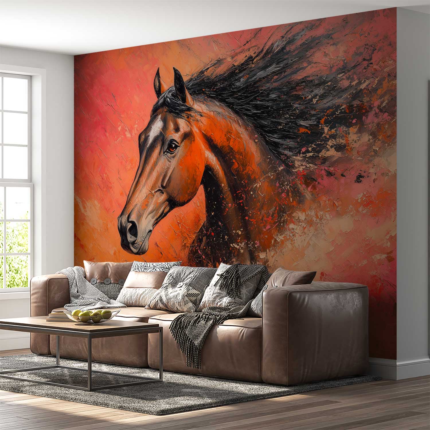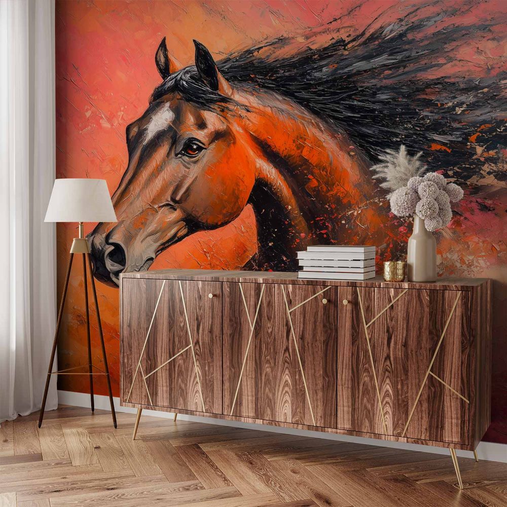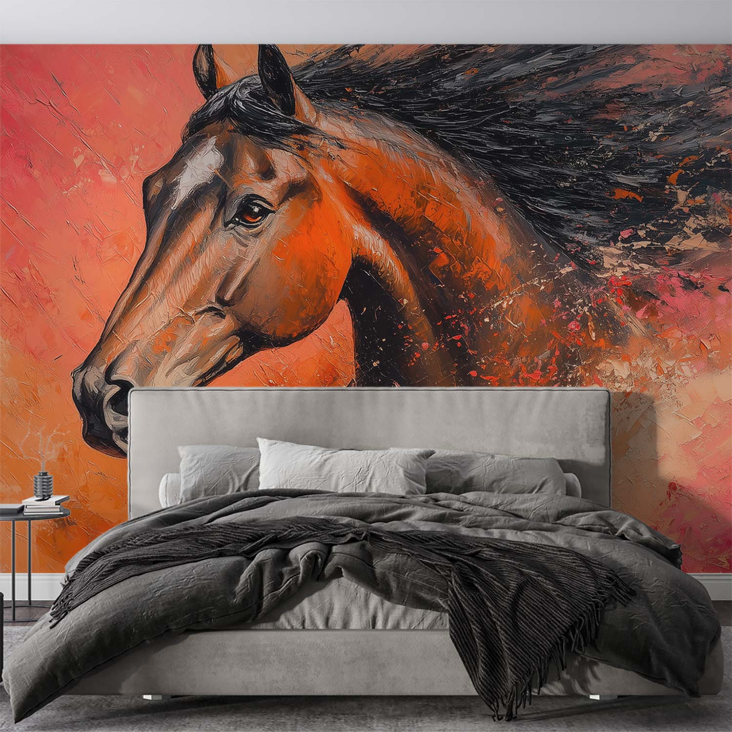 Terug naar collectie / Behang / Abstract behang / Dynamische Rennende Paardenschilderij behang