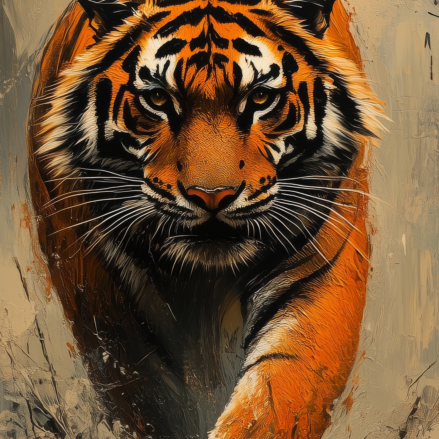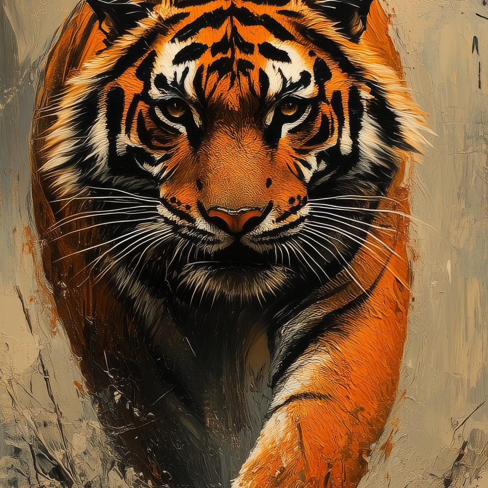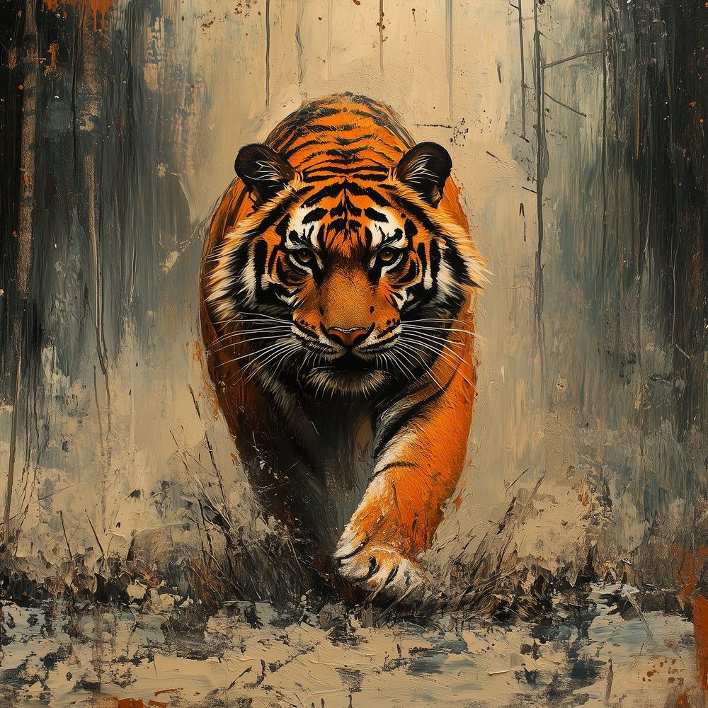 Dynamische rennende tijgerschilderij behang