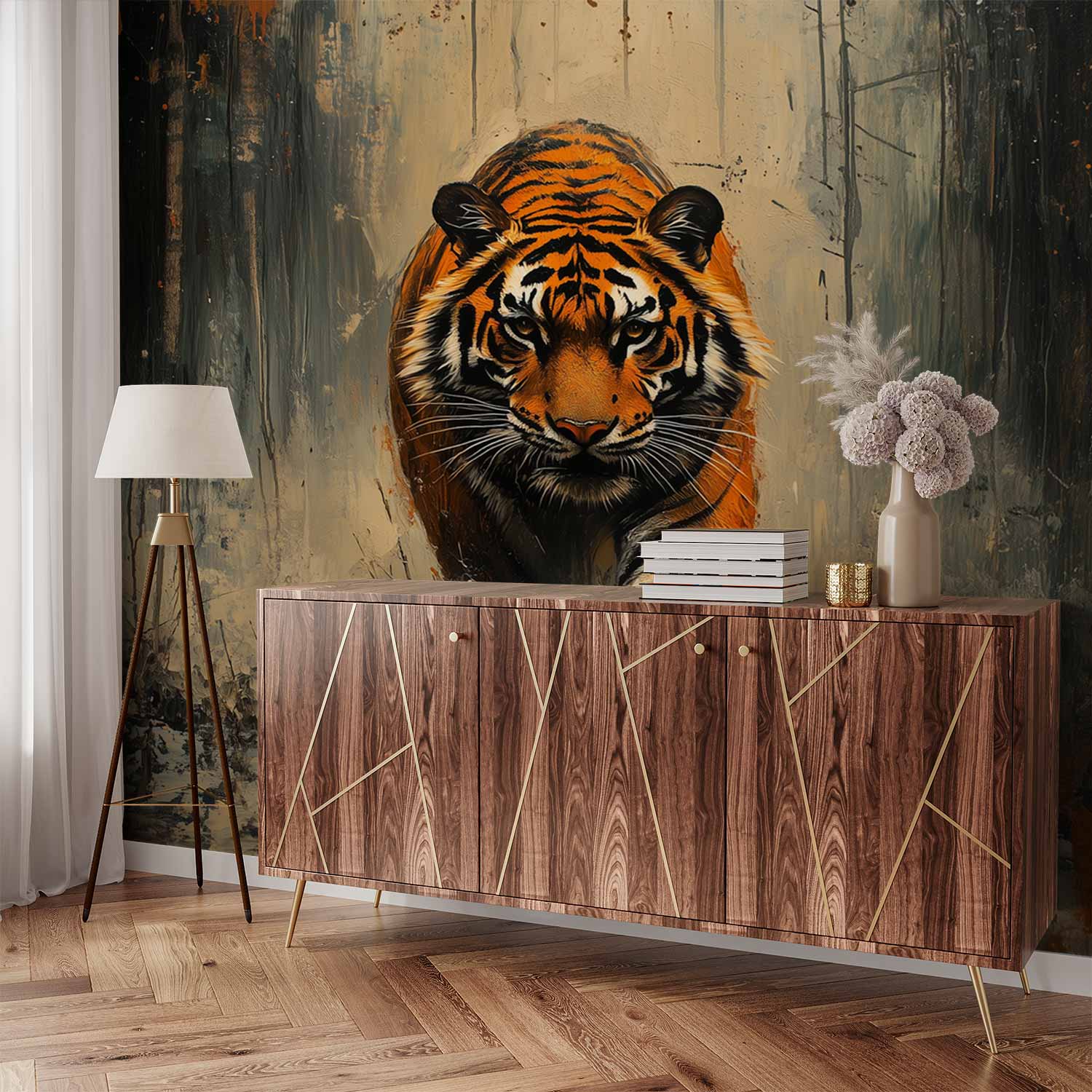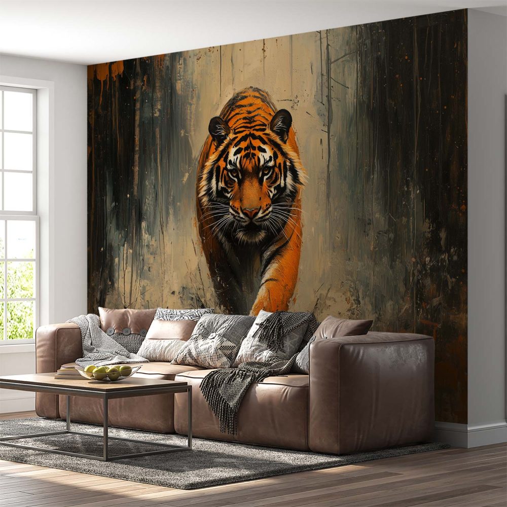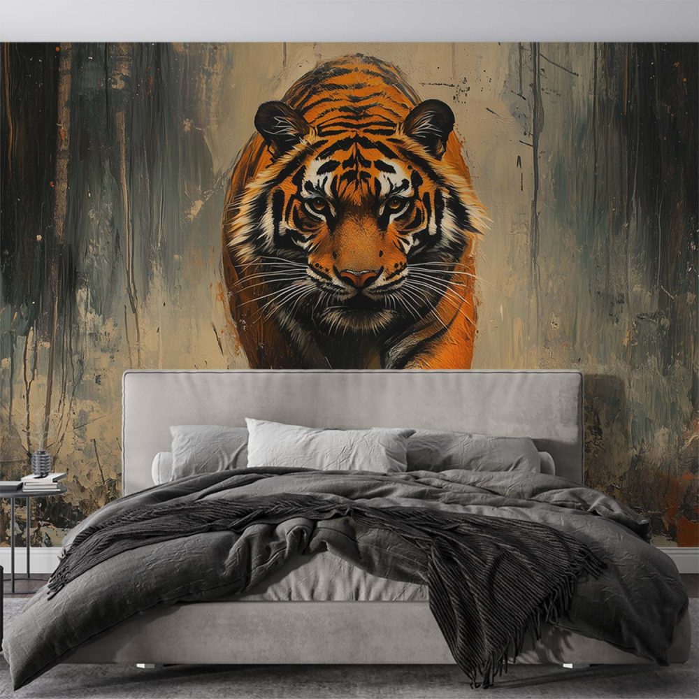 Terug naar collectie / Behang / Abstract behang / Dynamische rennende tijgerschilderij behang