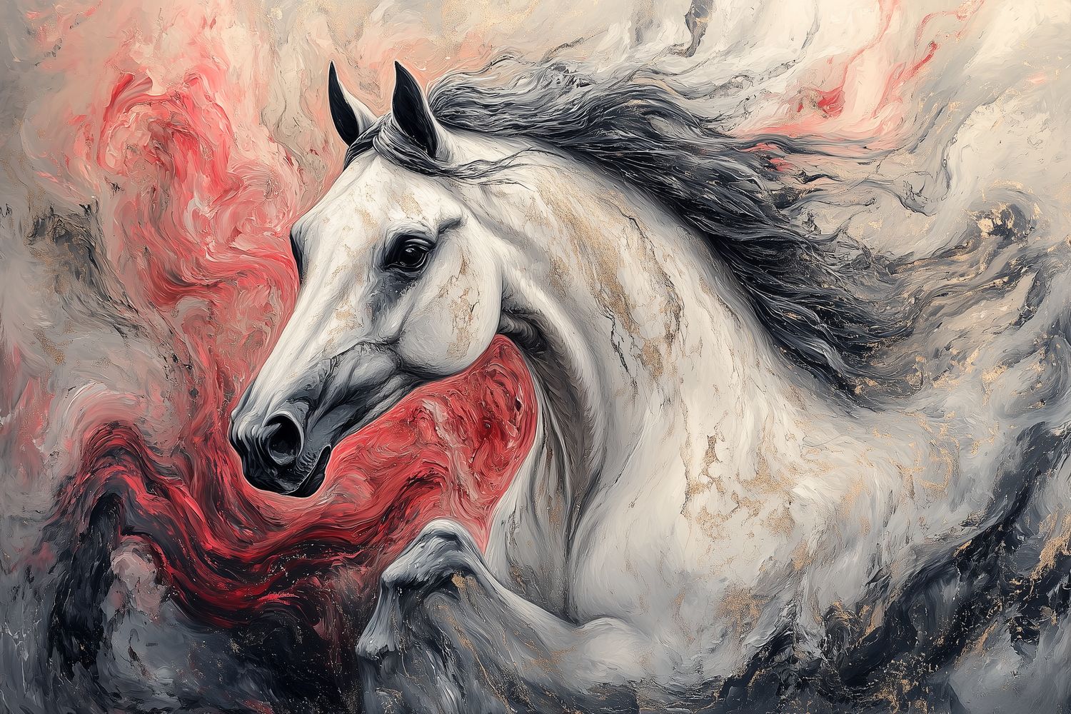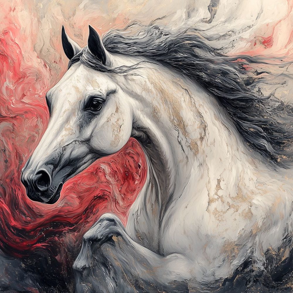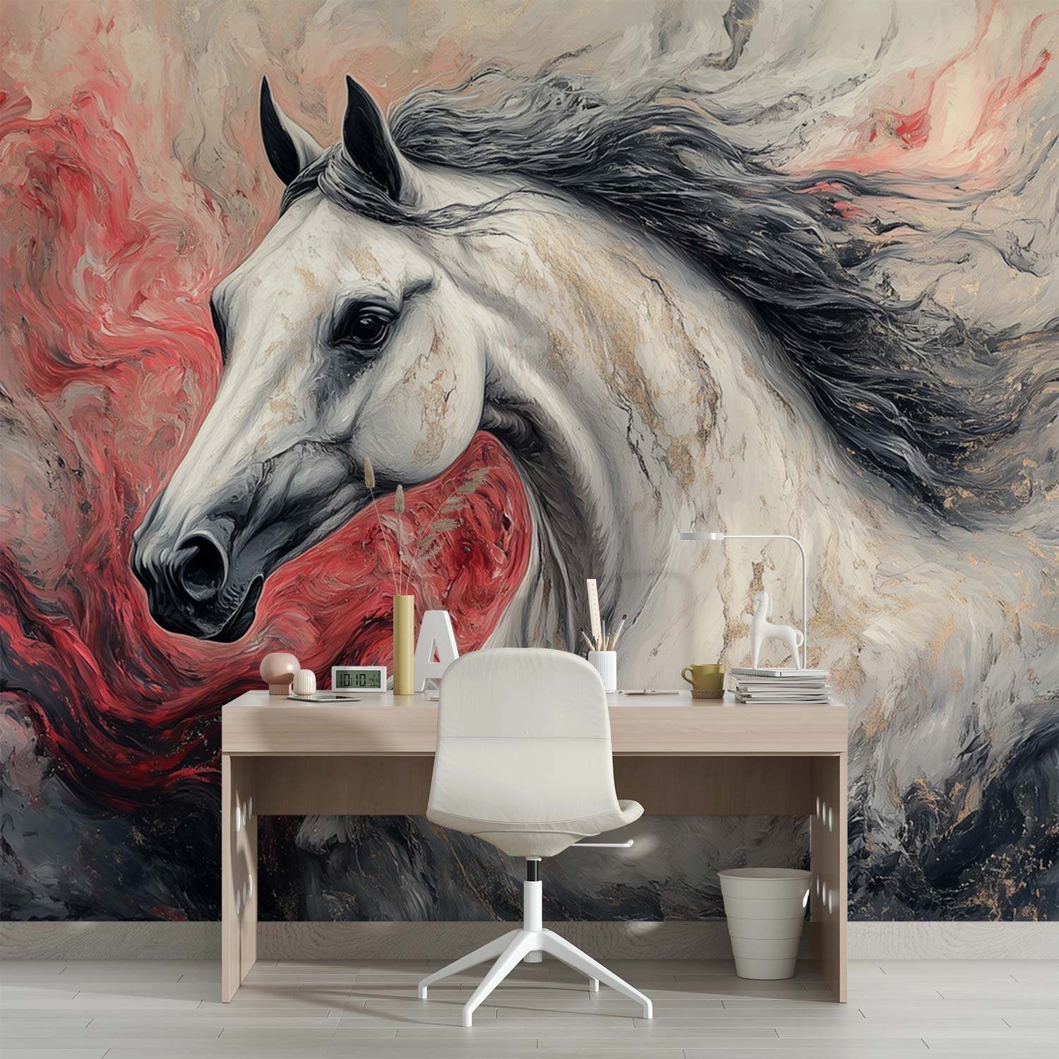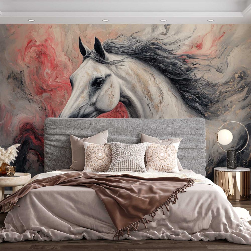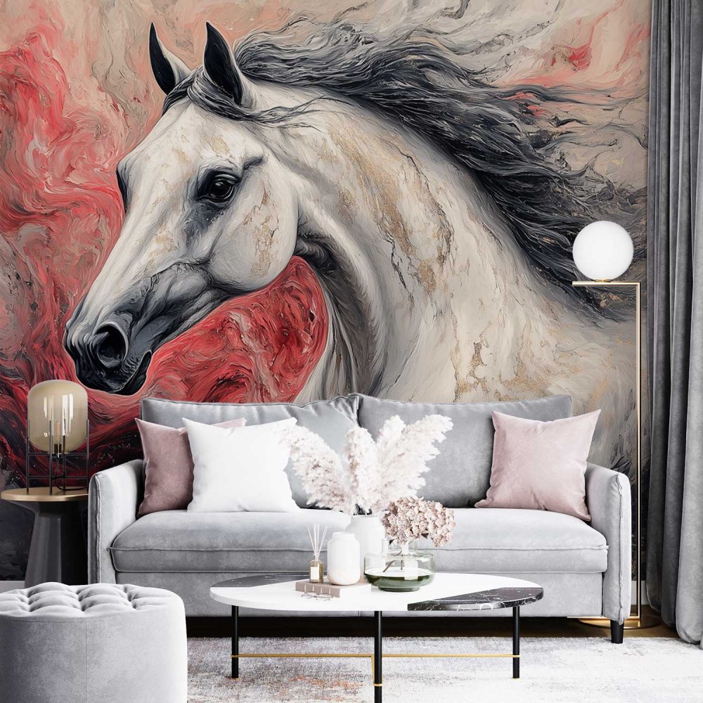 Dynamische witte renpaard behang